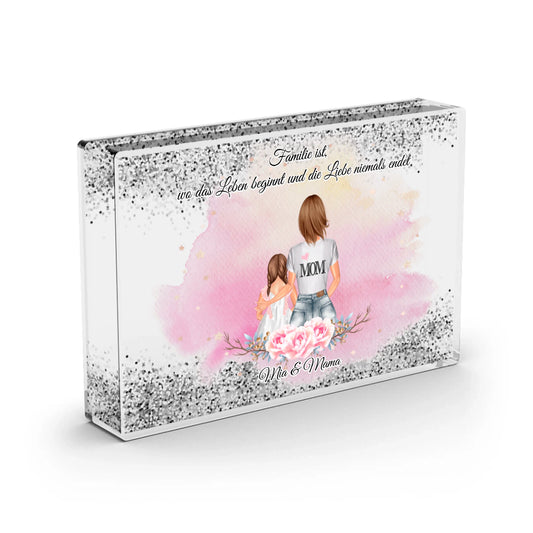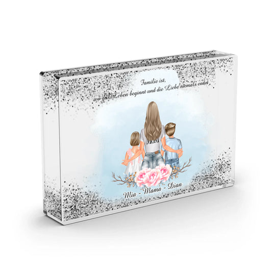 Mama & 2 Kinder - Schneekugel Silber Glitzer