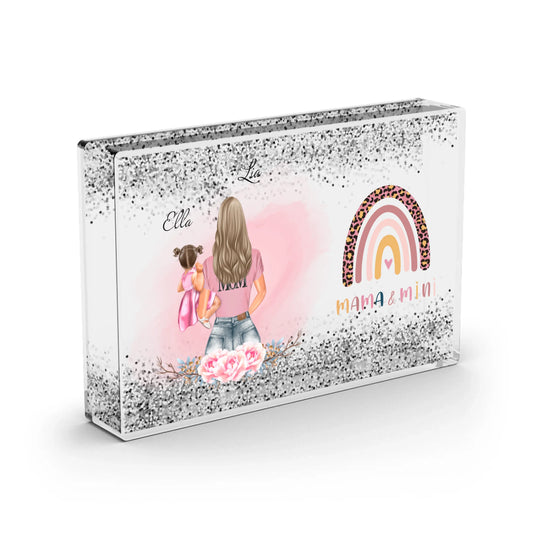 Mama & Kleinkind - Schneekugel Silber Glitzer