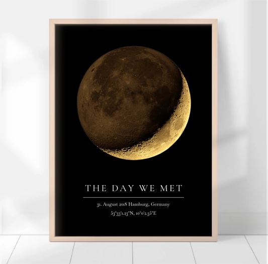 Sternenkarte Acrylschild mit Holzstandfuß - Der Tag an dem unsere Reise begann