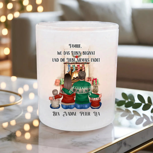 Winter Familie 3-5 Personen + Haustier Teelichthalter