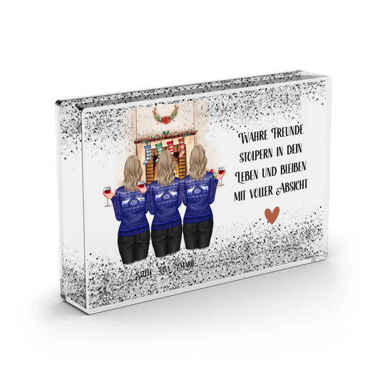 2-3 Freundinnen Winter Schneekugel Silber Glitzer