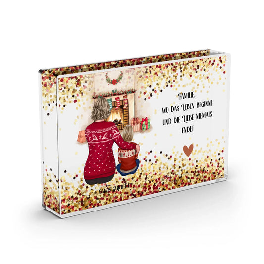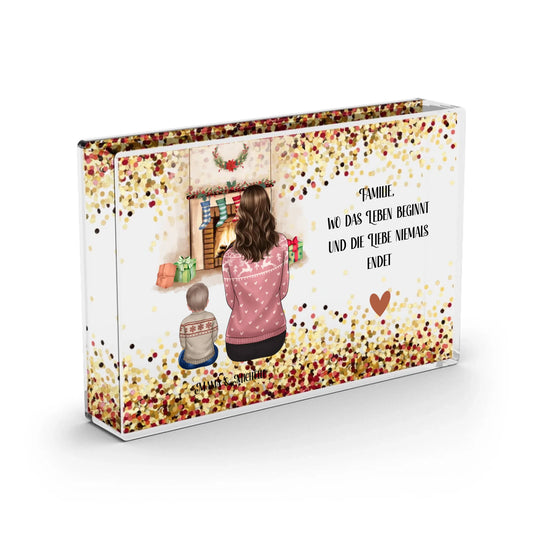 Mama & 1-3 Kinder Winter Schneekugel GoldRose
