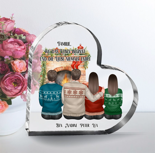 Winter Familie 2-4 Personen Herz Glasaufsteller