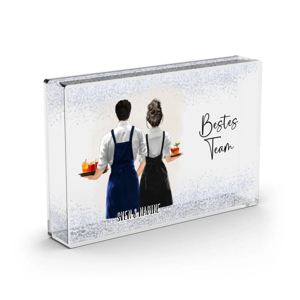 1-2 Kellner (Mann/Frau) Schneekugel Schnee