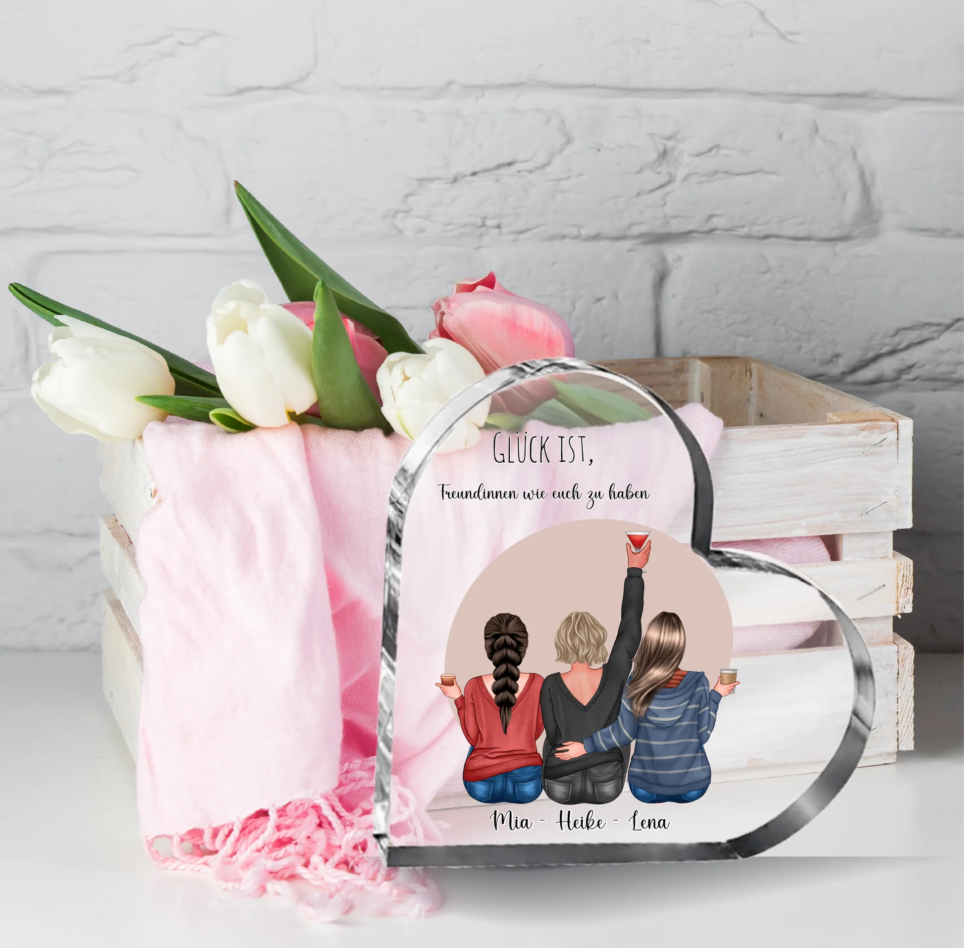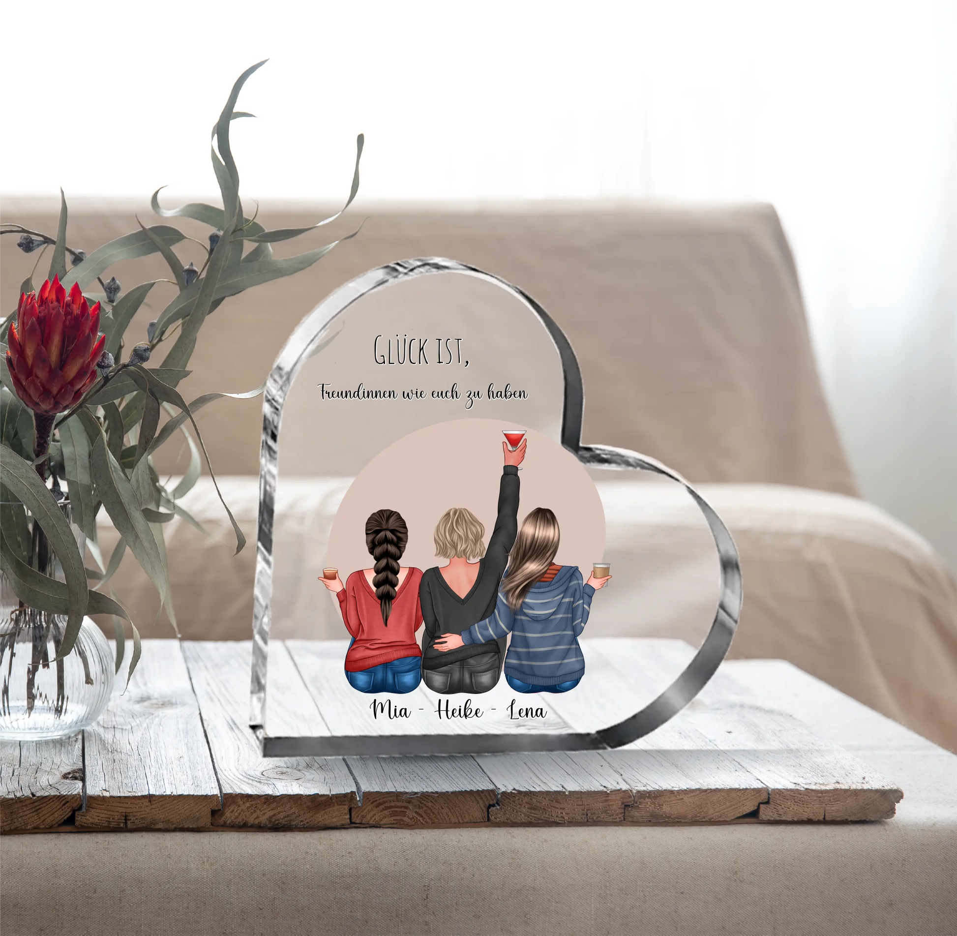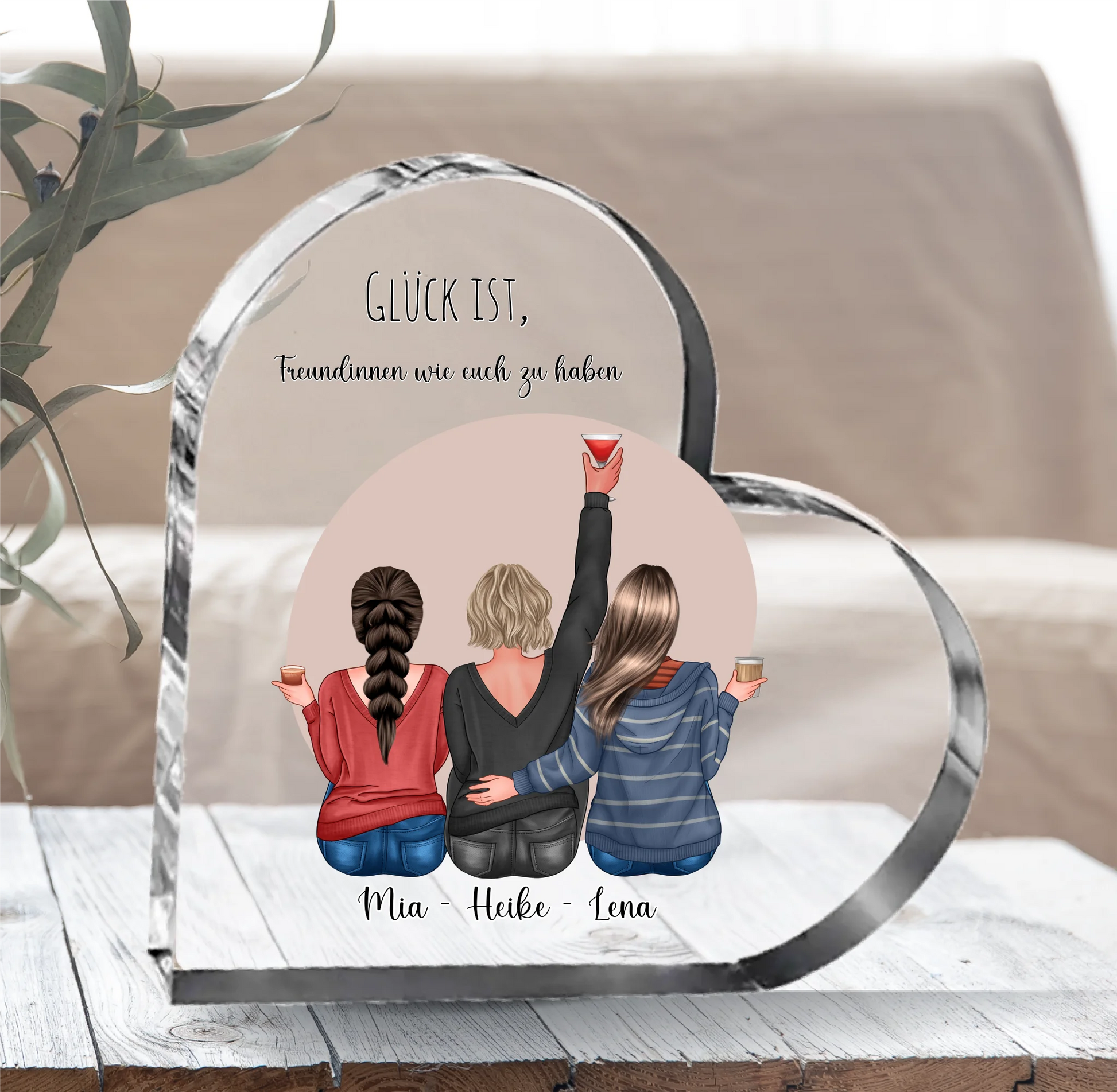 2-3 Freundinnen Herz Glasaufsteller