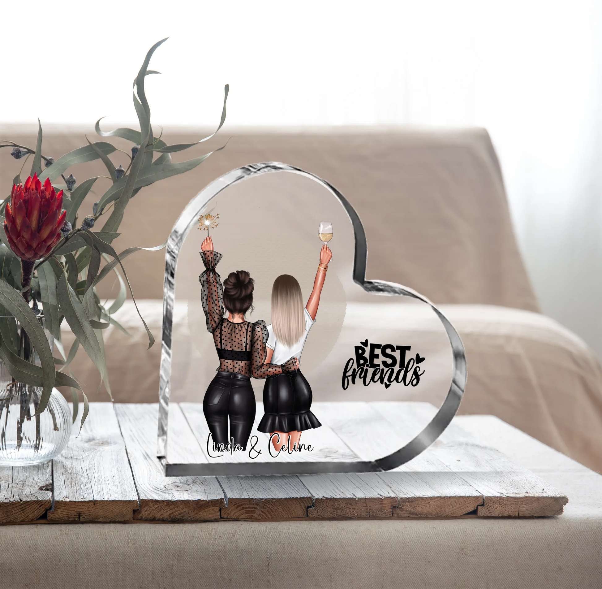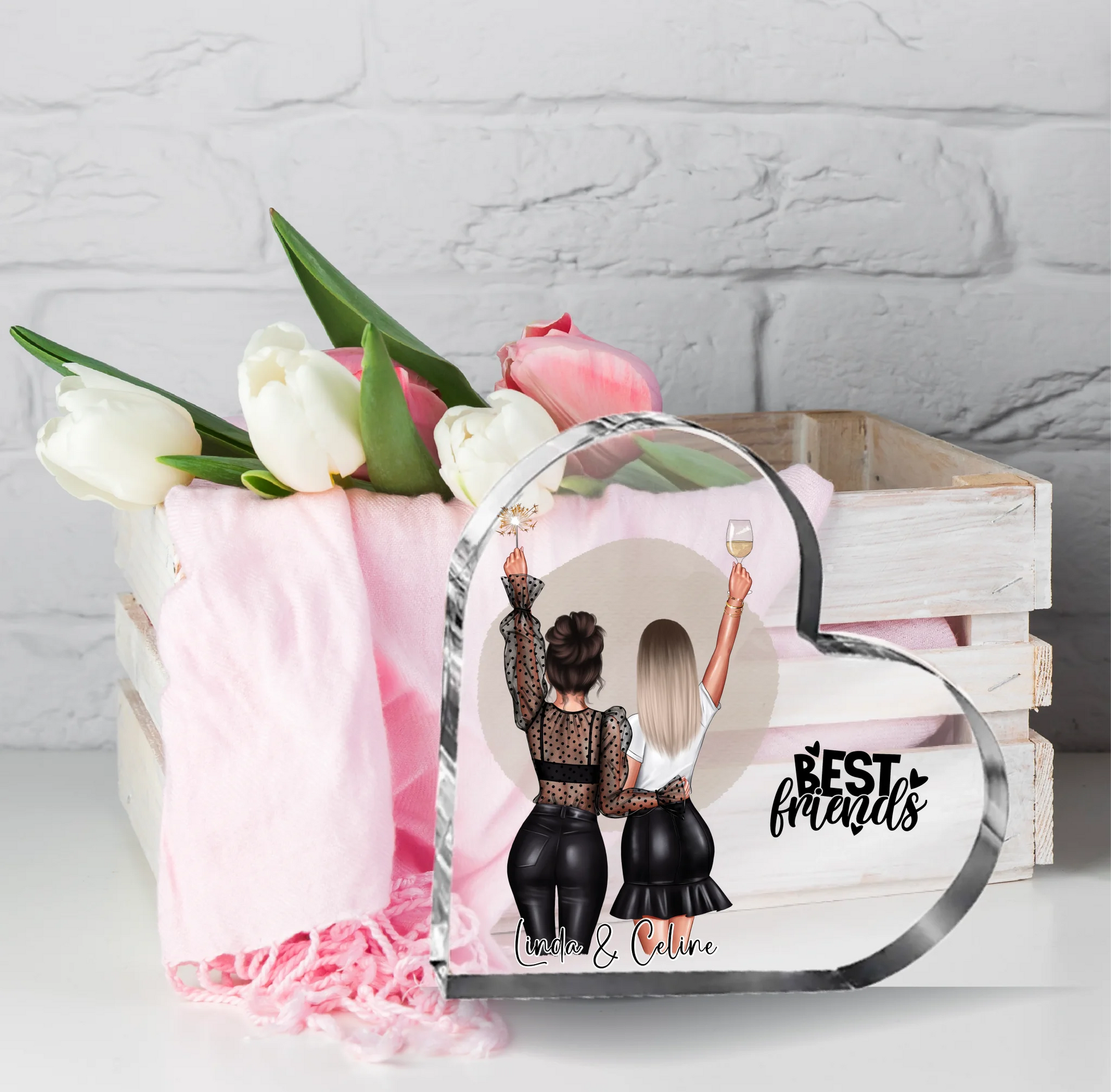 2-3 Freundinnen Herz Glasaufsteller
