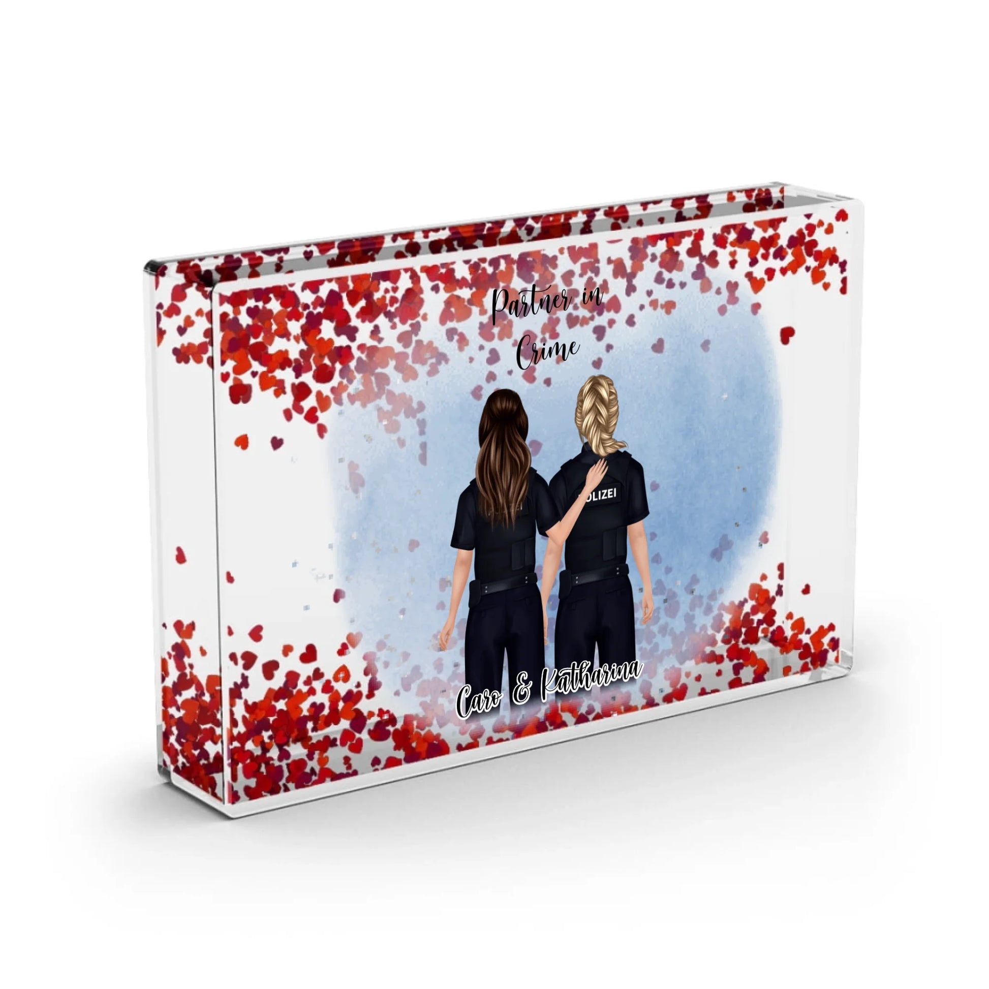 2-3 Polizistinnen - Schneekugel Herz Pailletten