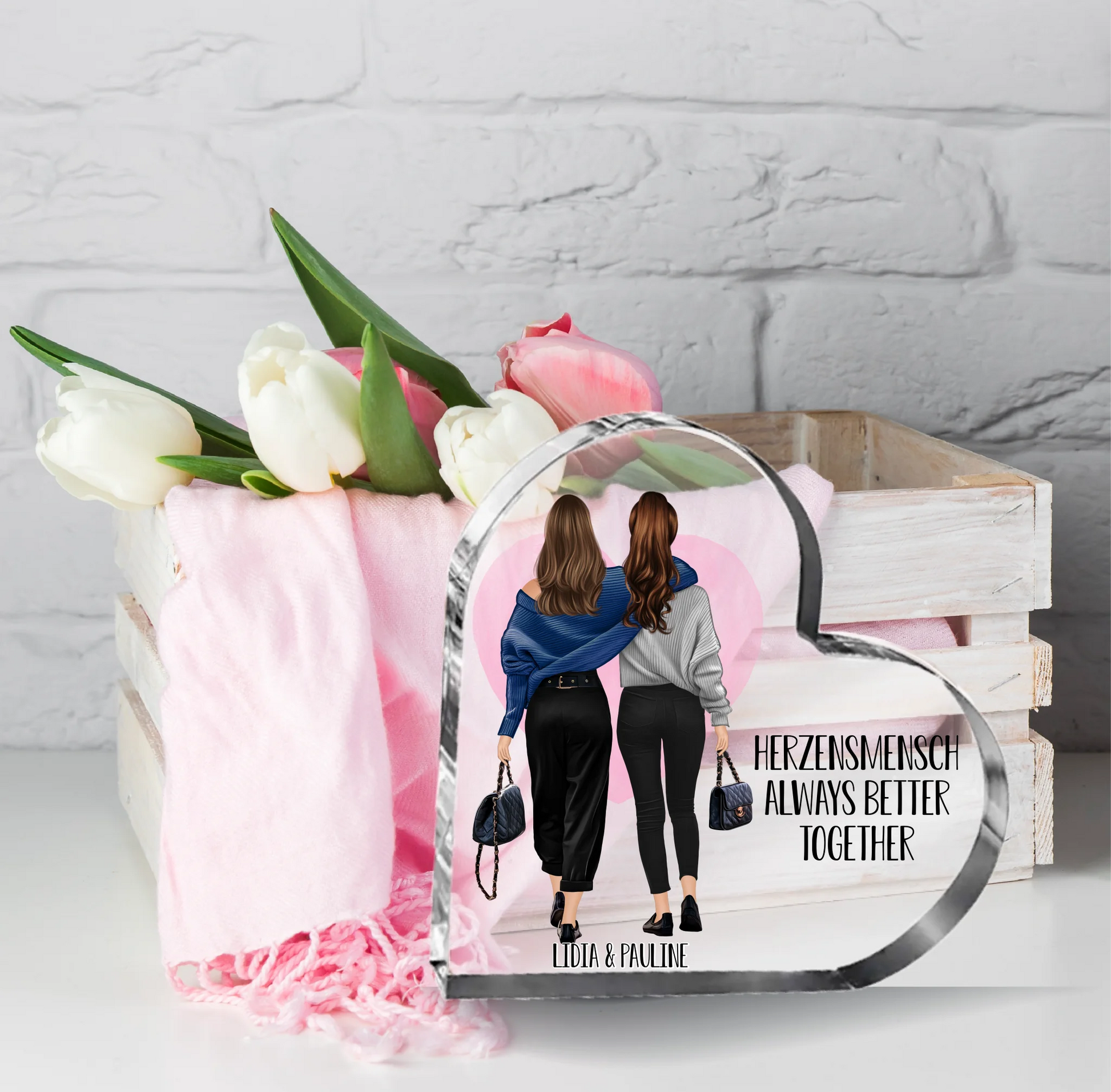 2-4 Beste Freundinnen personalisieren Herz Glasaufsteller