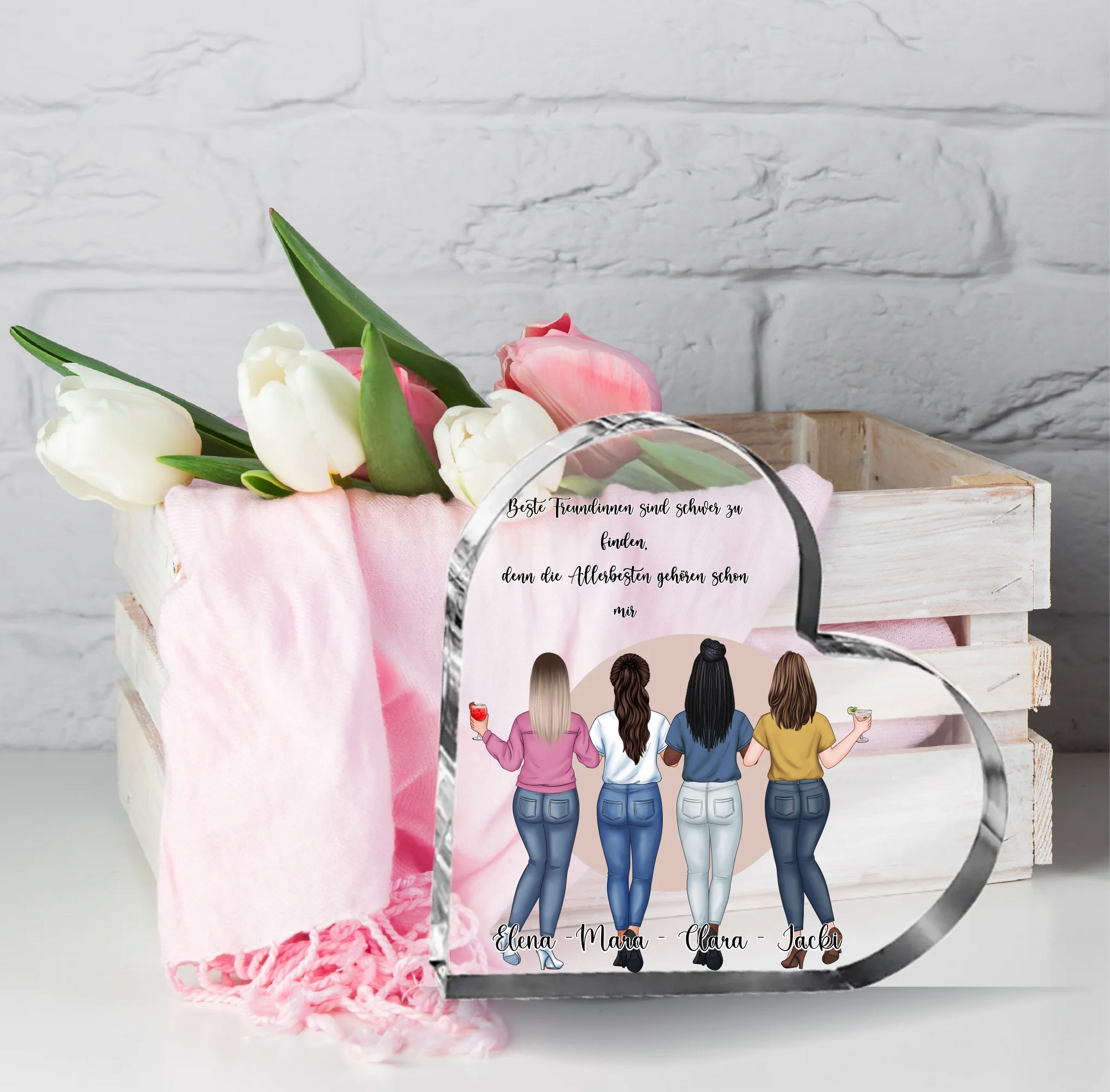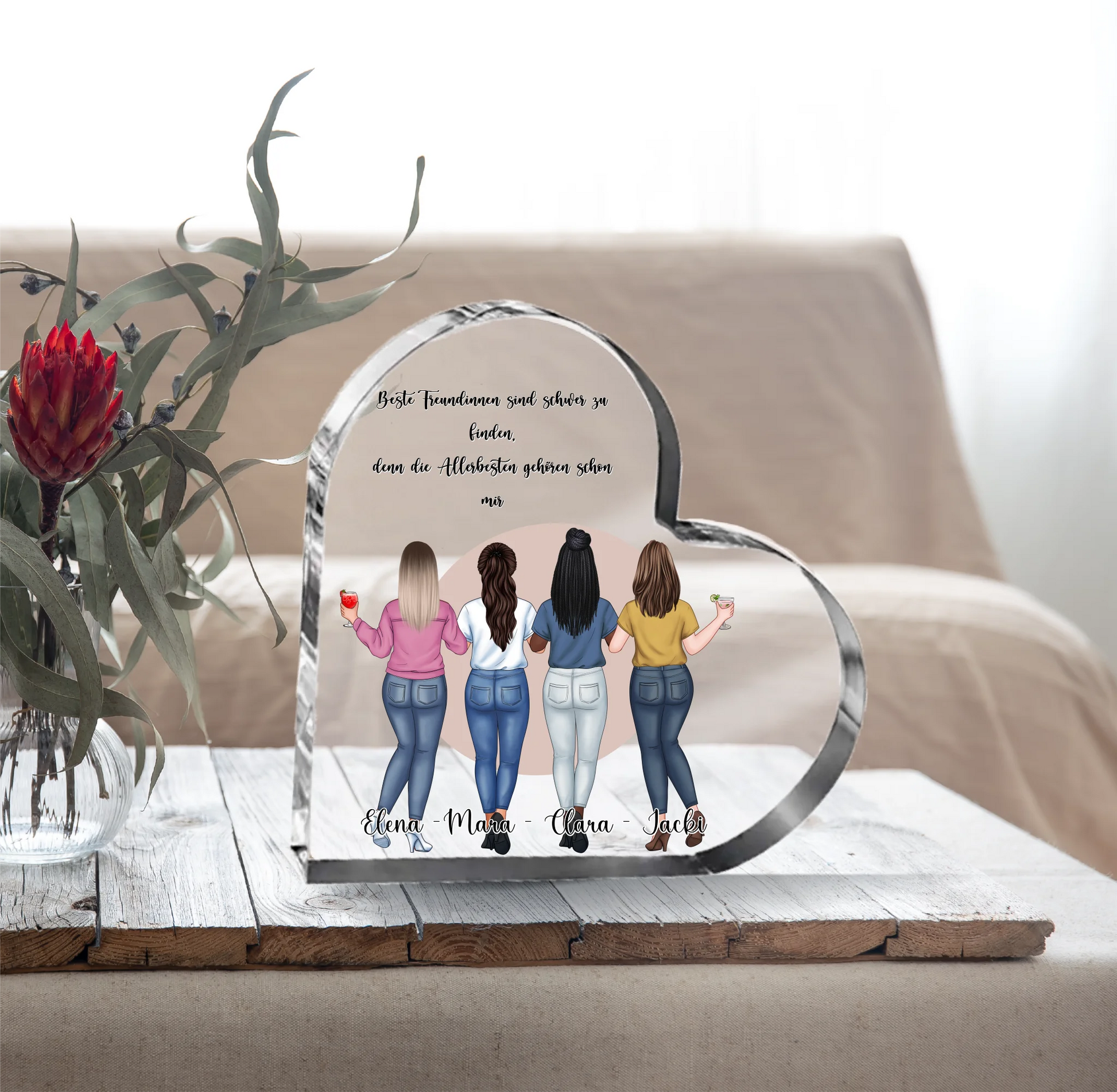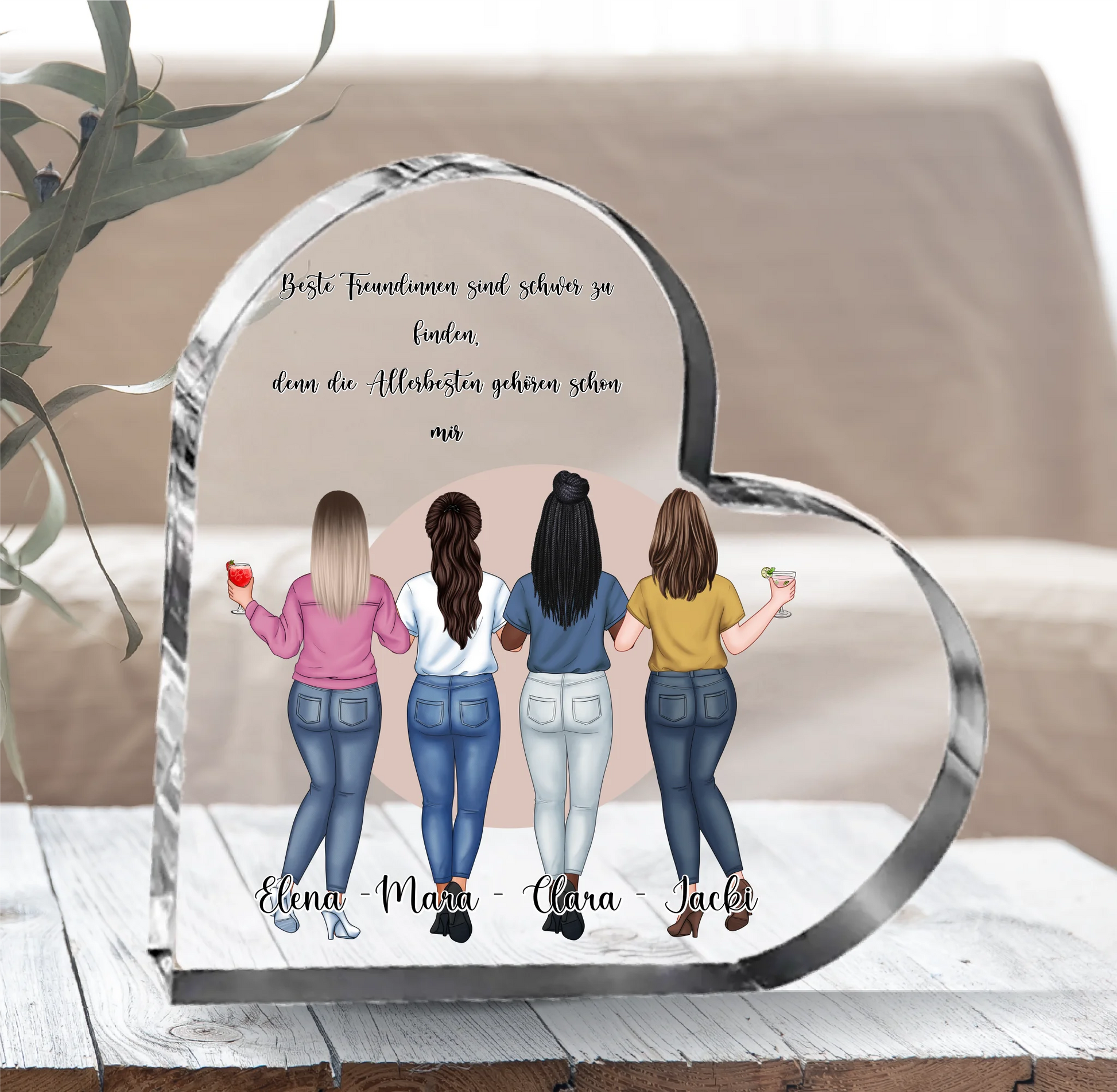 2-4 Freundinnen Herz Glasaufsteller