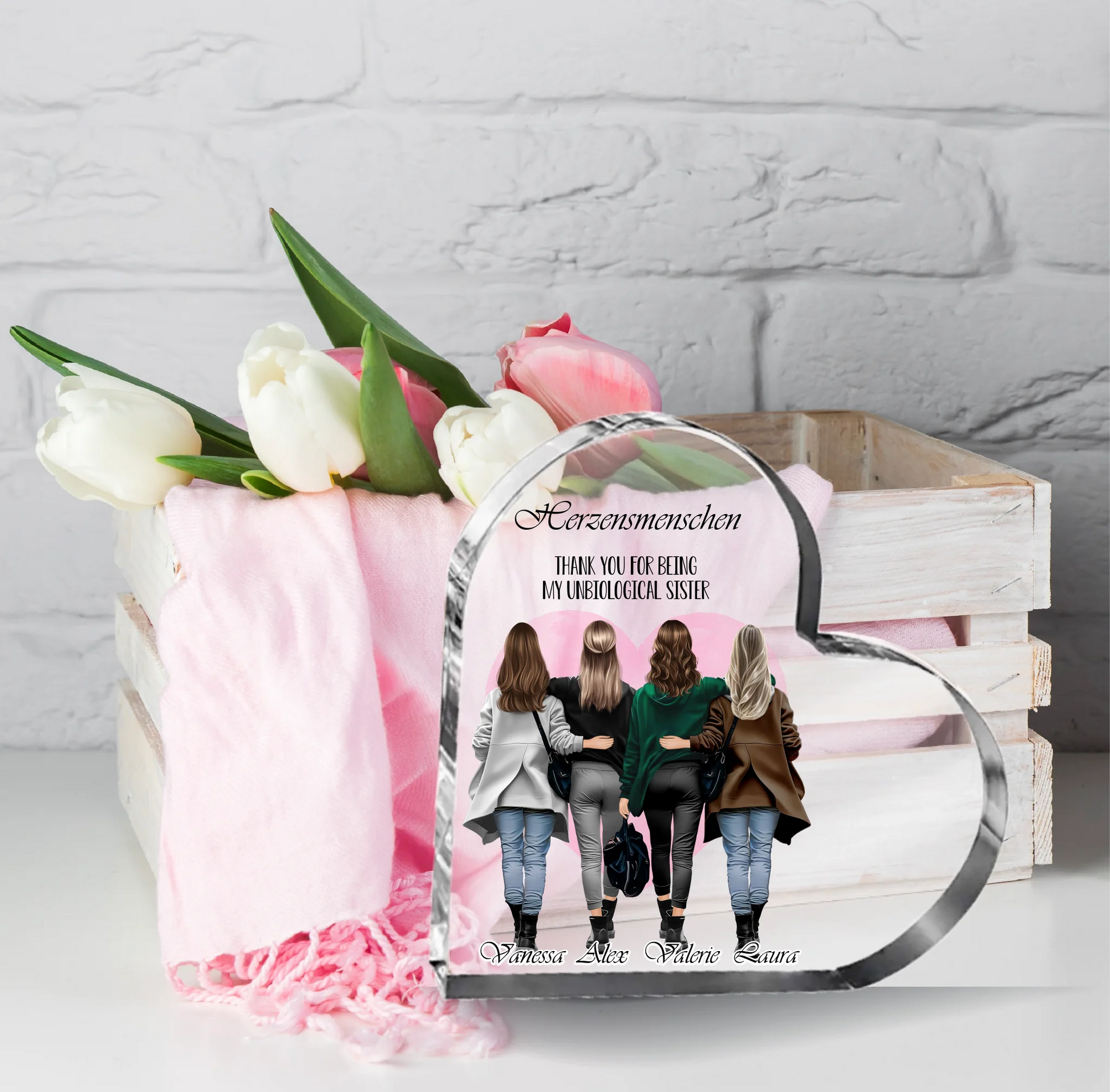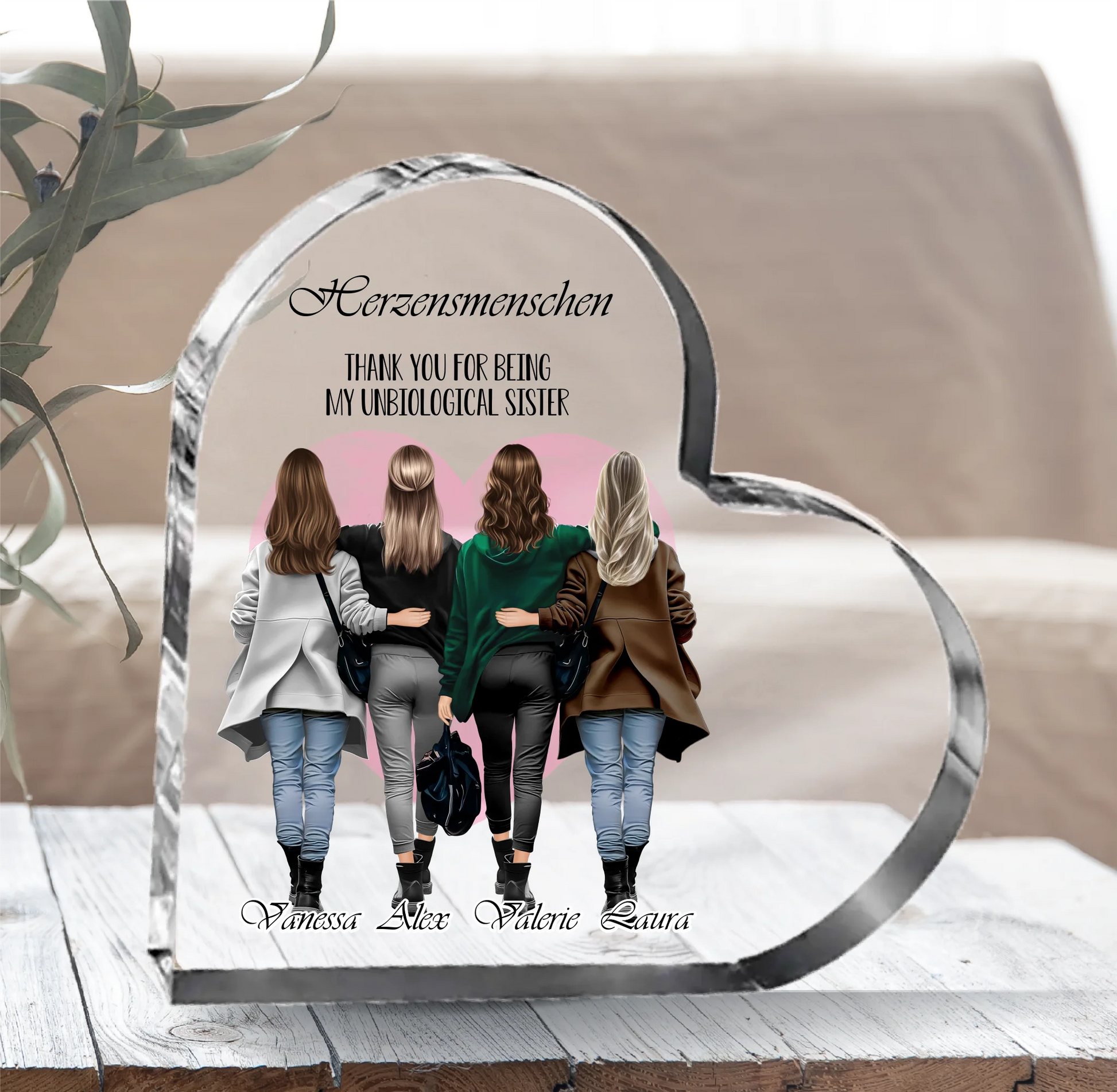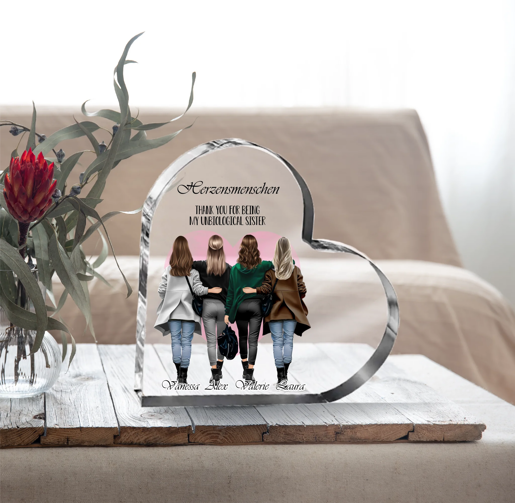 2-4 Freundinnen personalisiert Herz Glasaufsteller