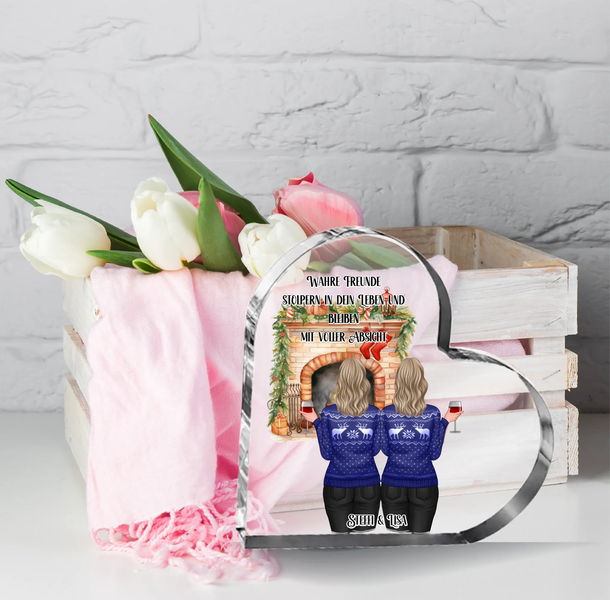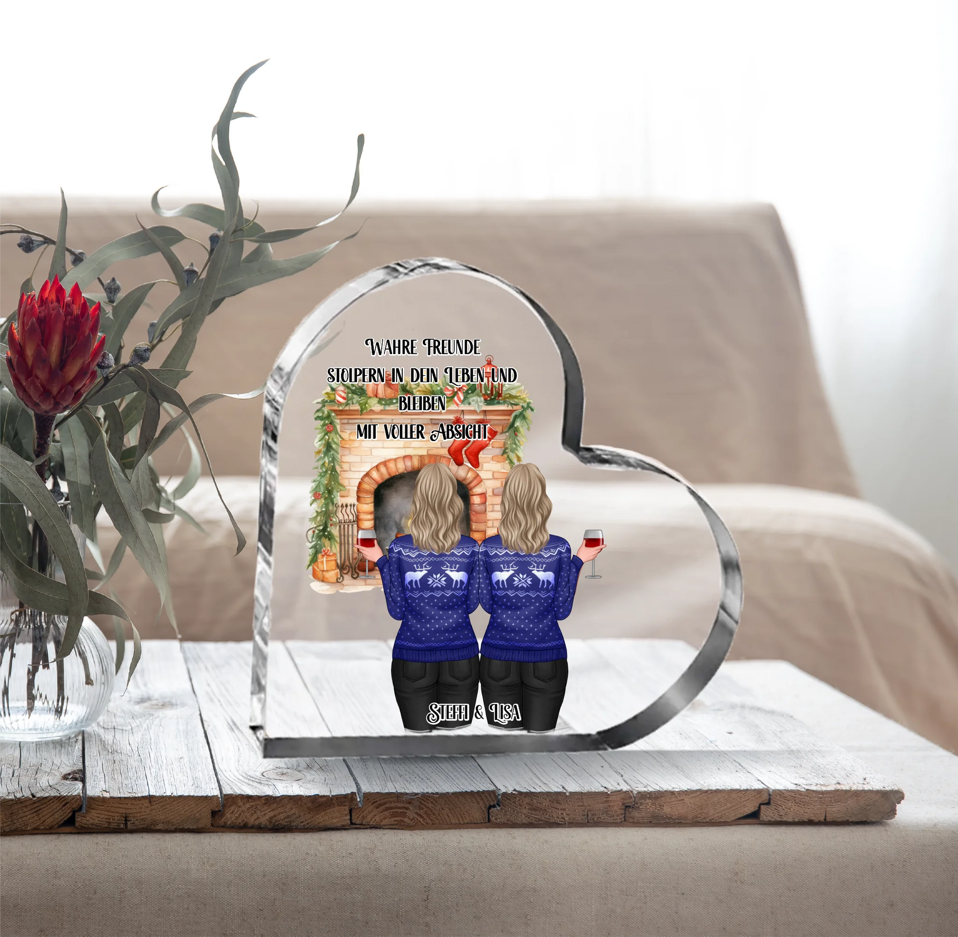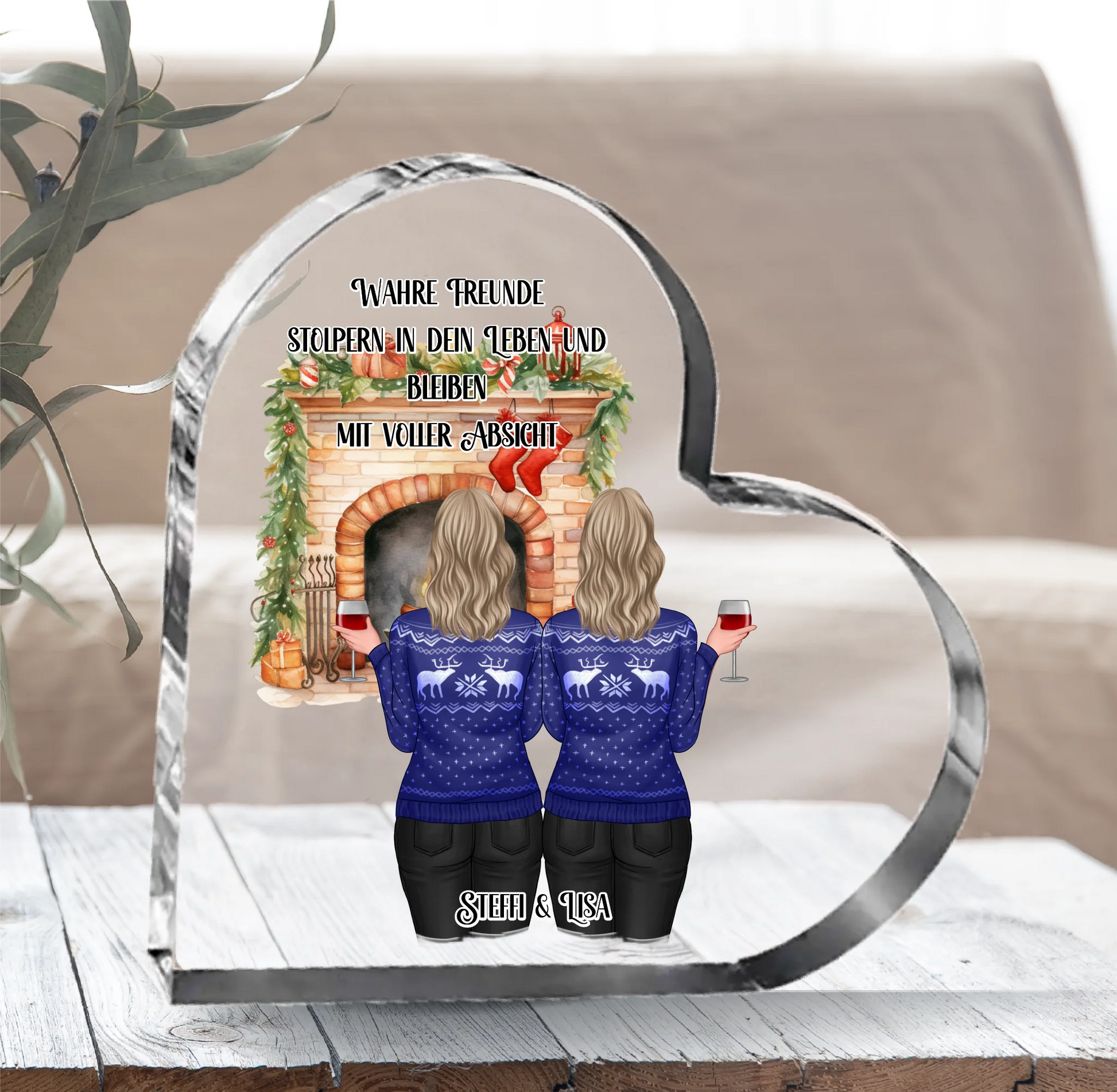2-4 Winter Freundinnen Herz Glasaufsteller