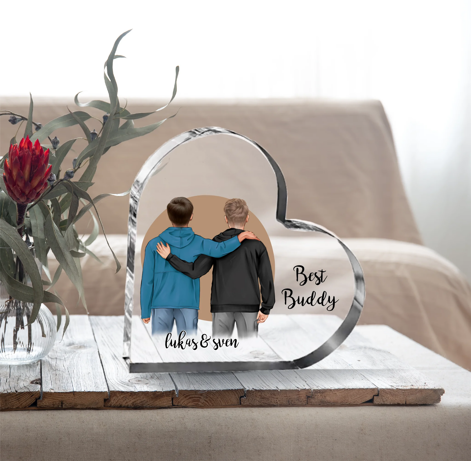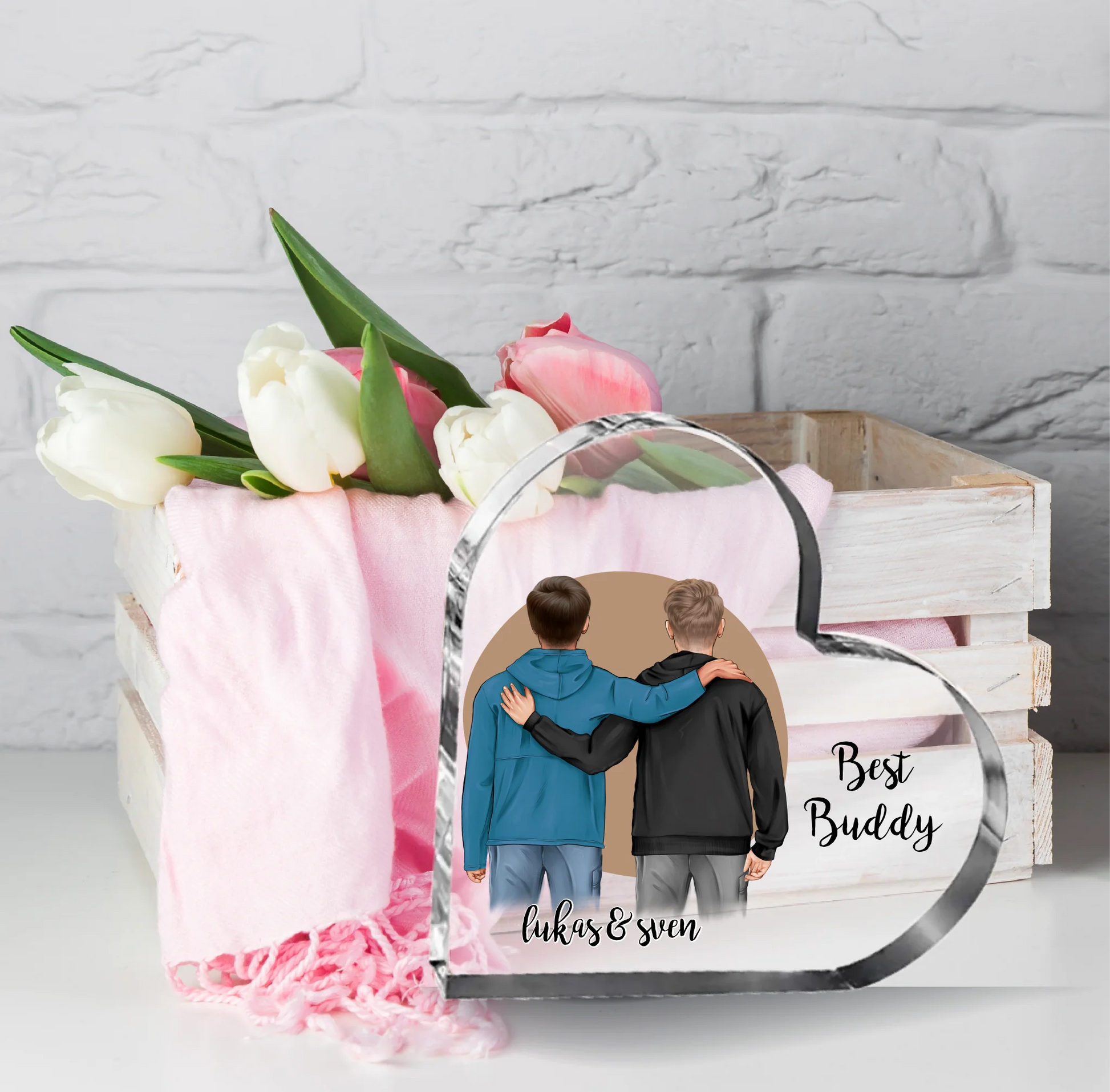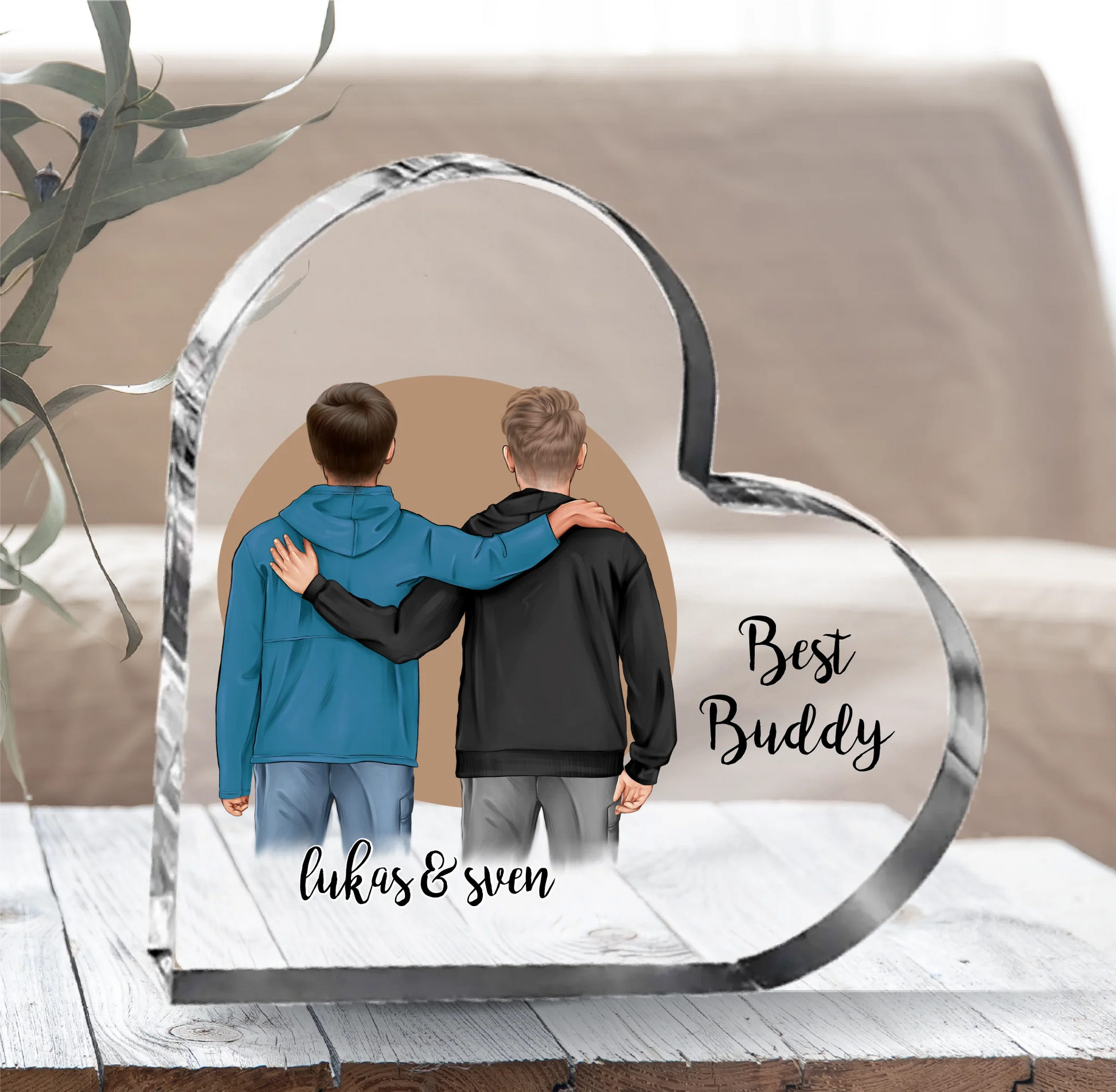 2 Freunde/Brüder Herz Glasaufsteller