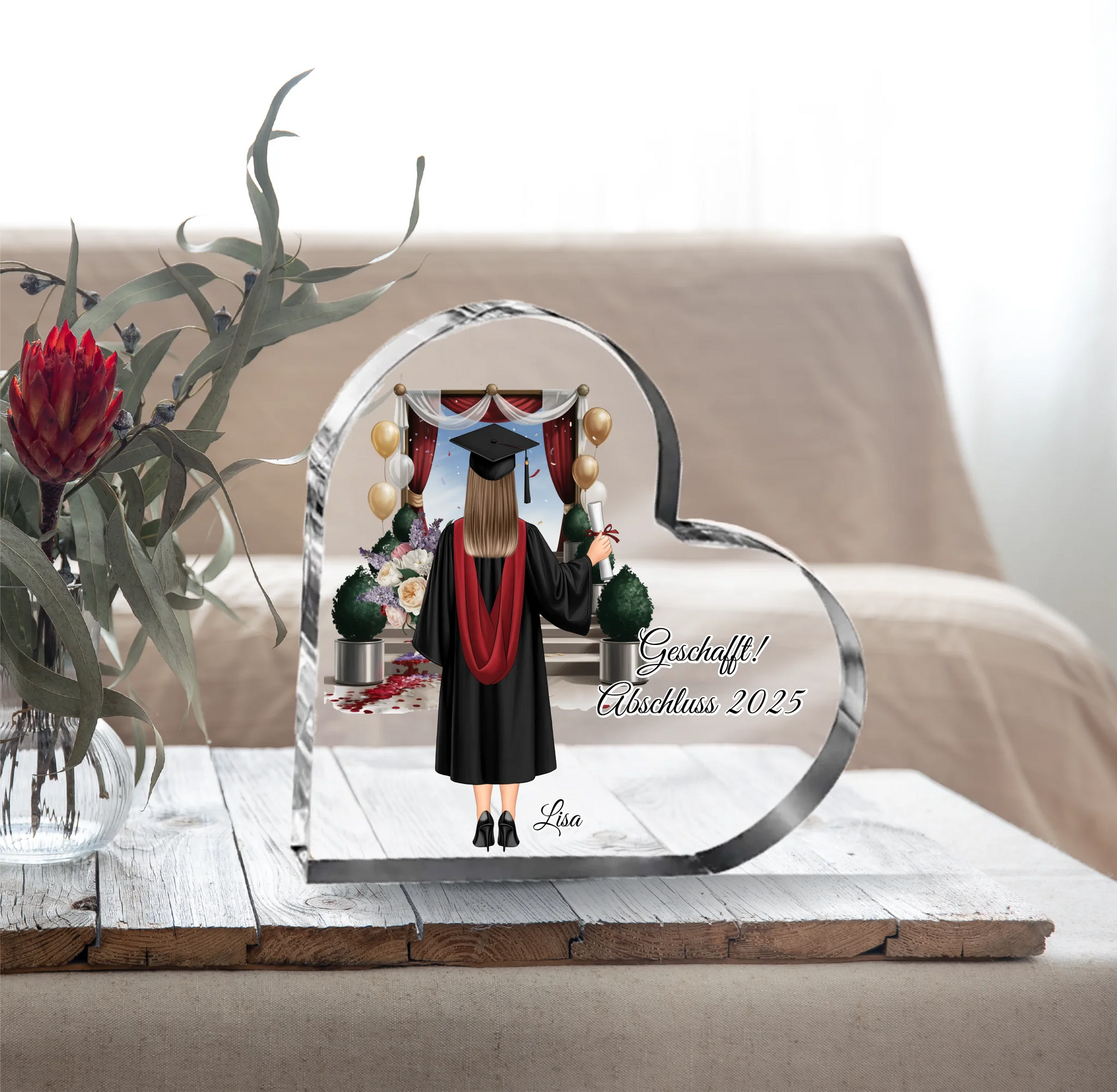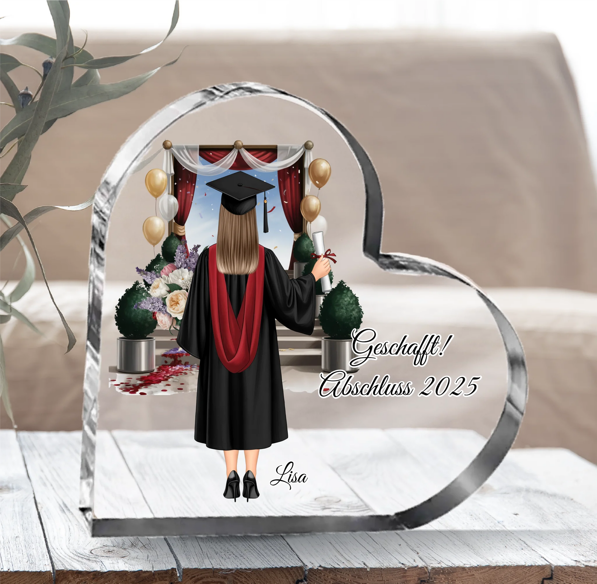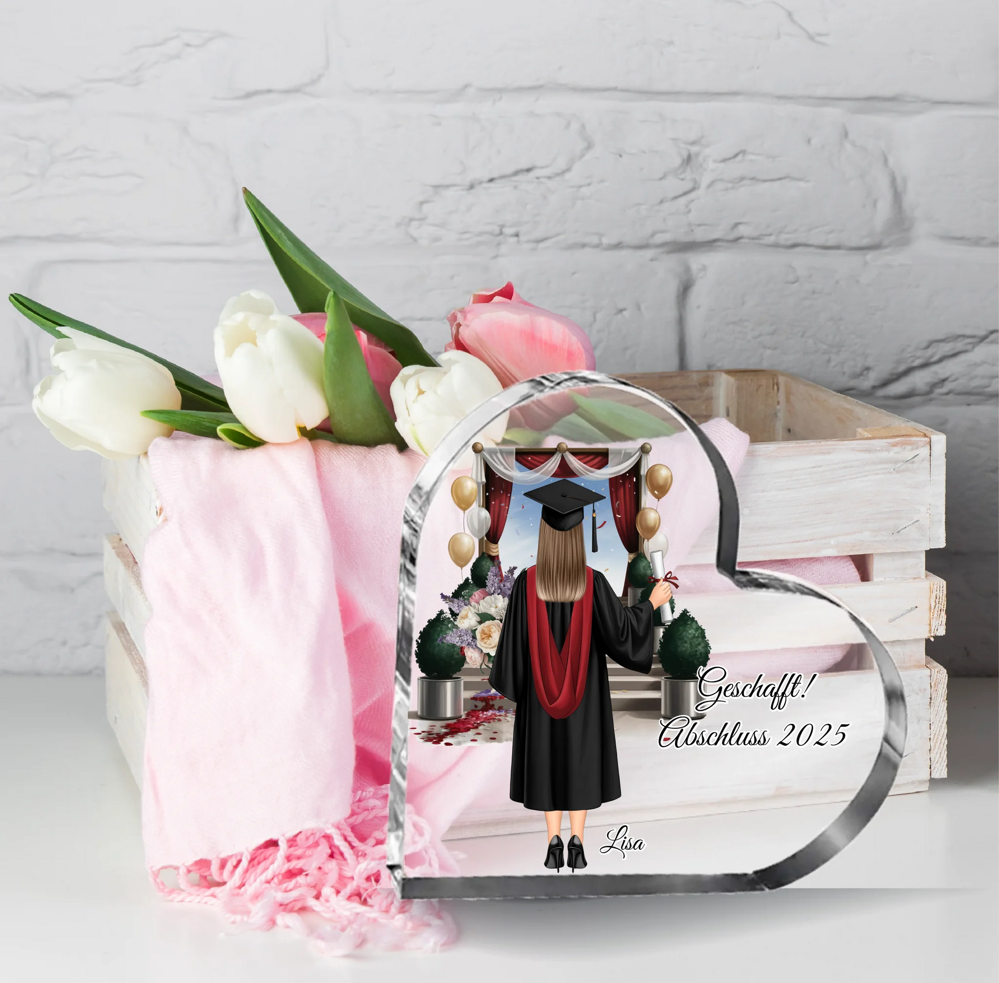 Abschluss (Frau/Mann) Herz Glasaufsteller