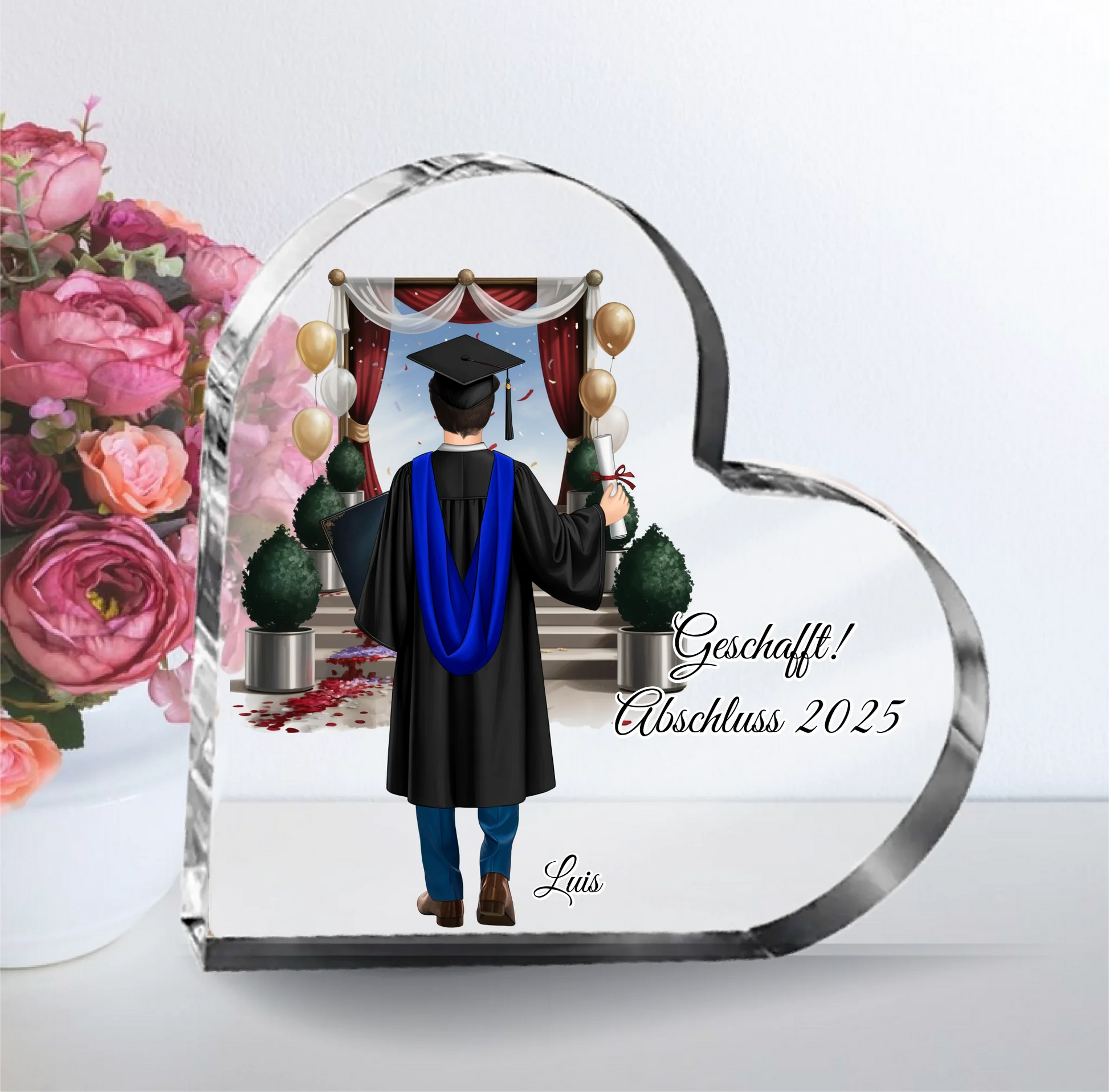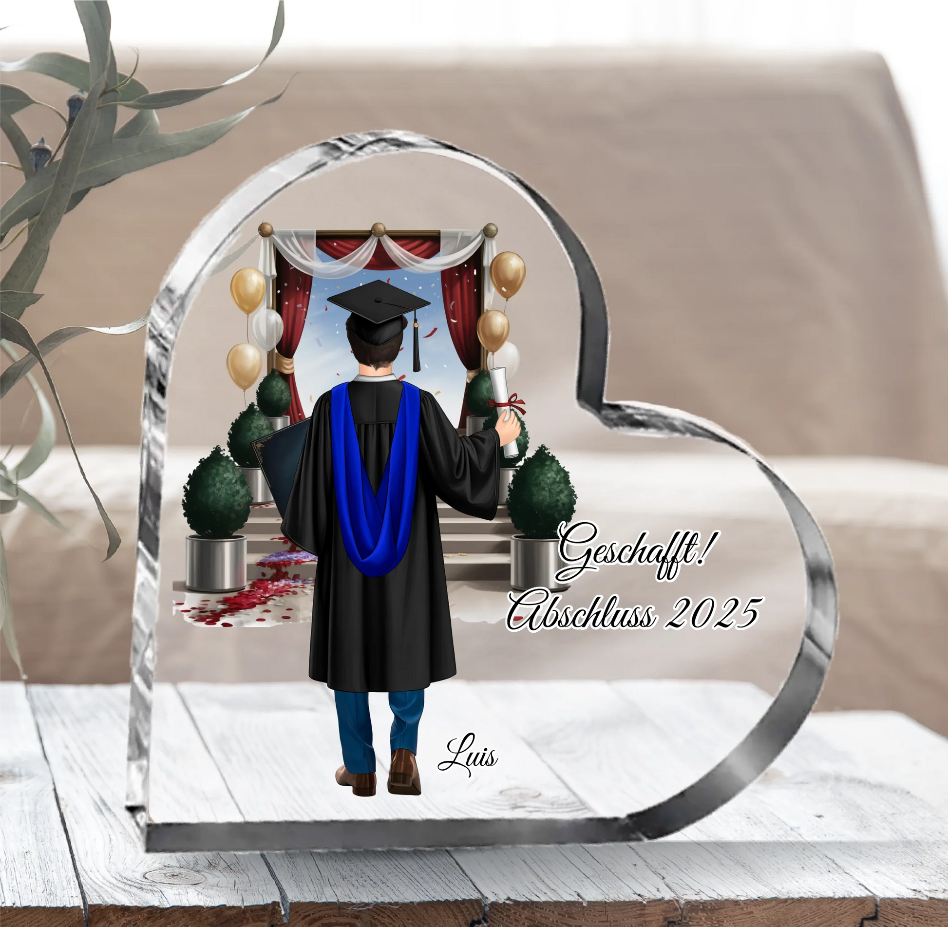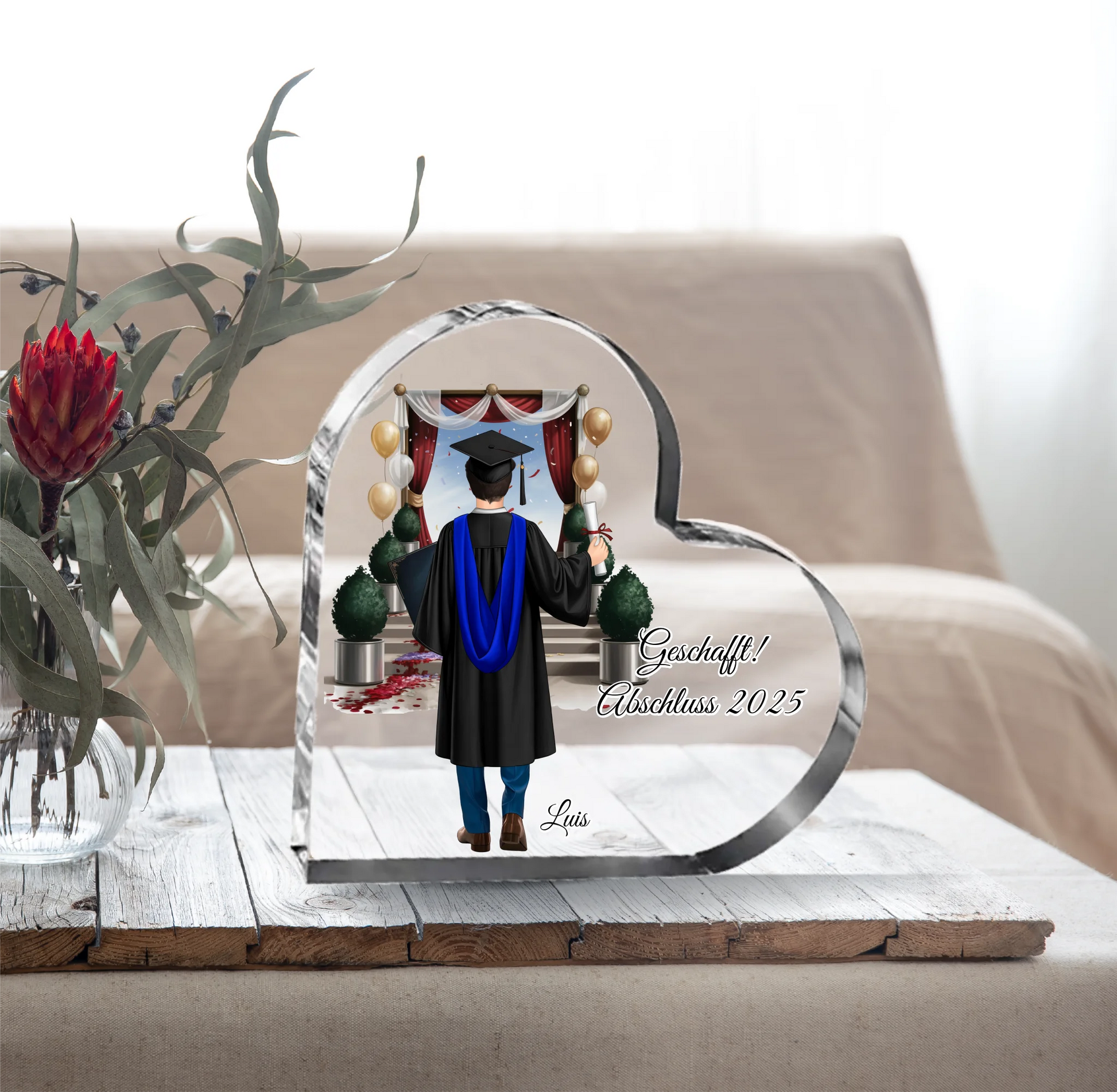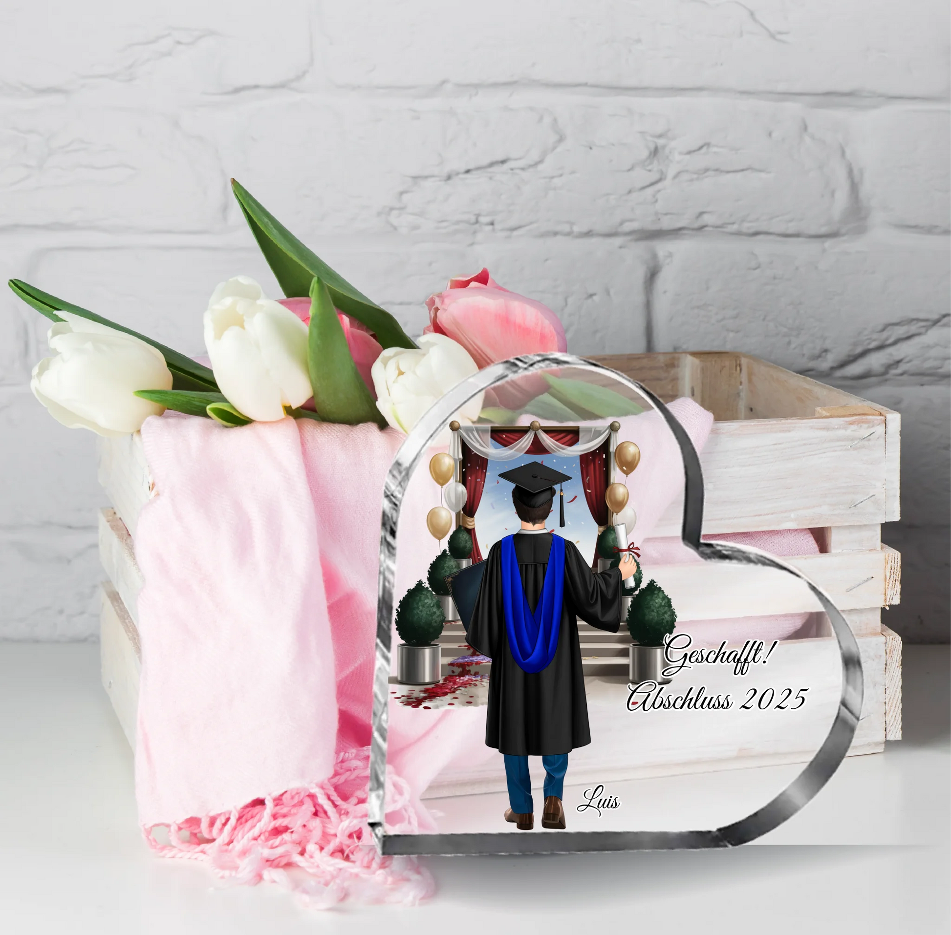 Abschluss (Mann/Frau) Herz Glasaufsteller