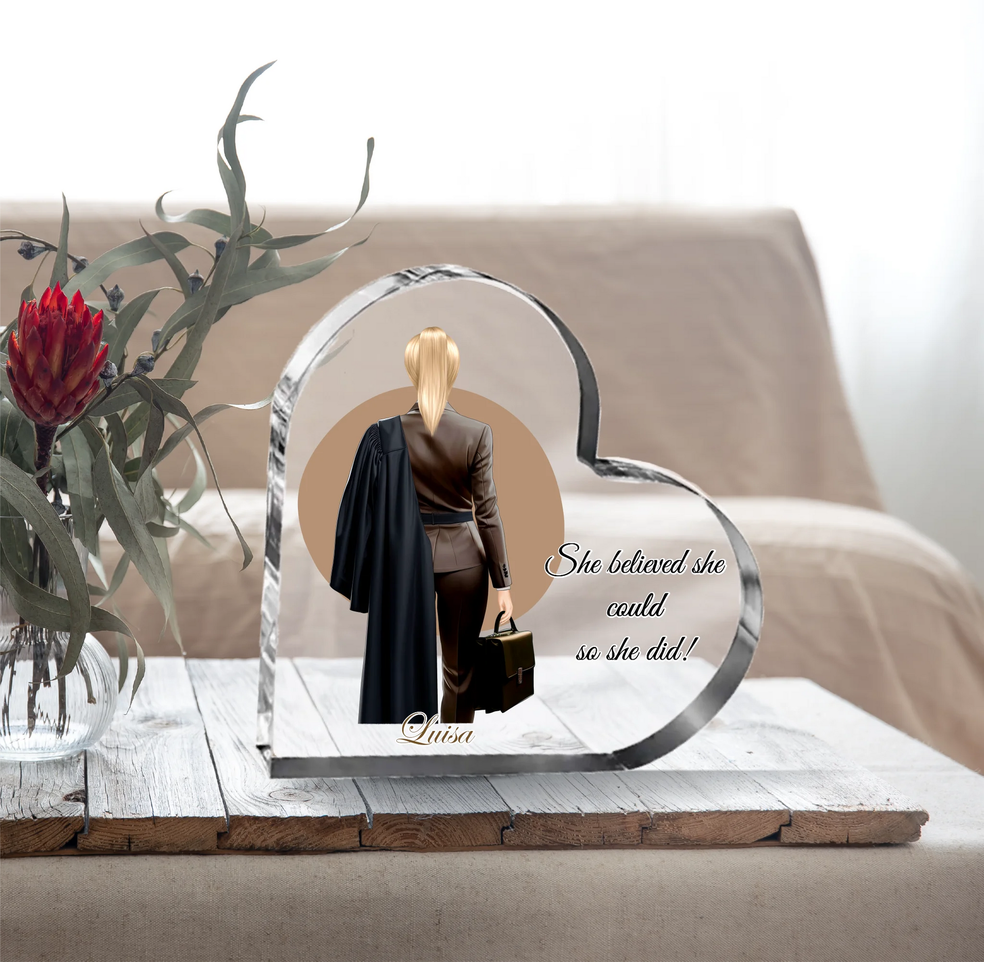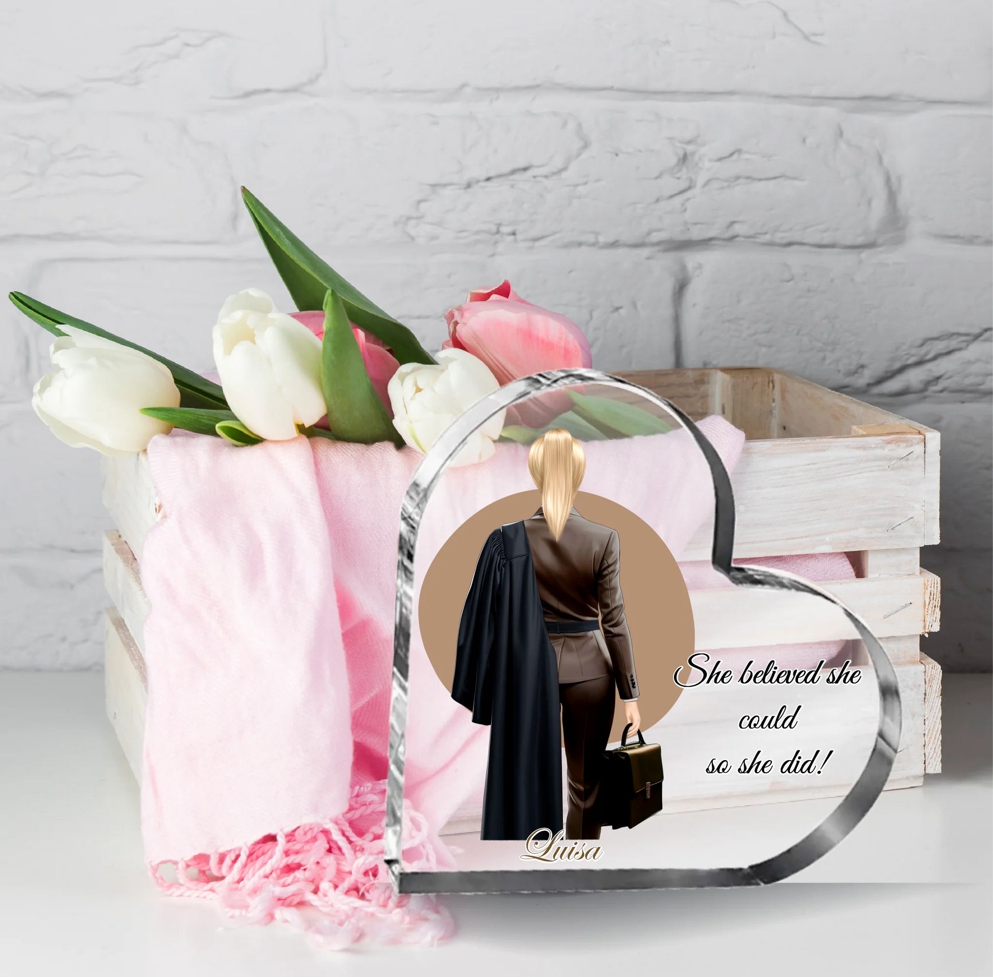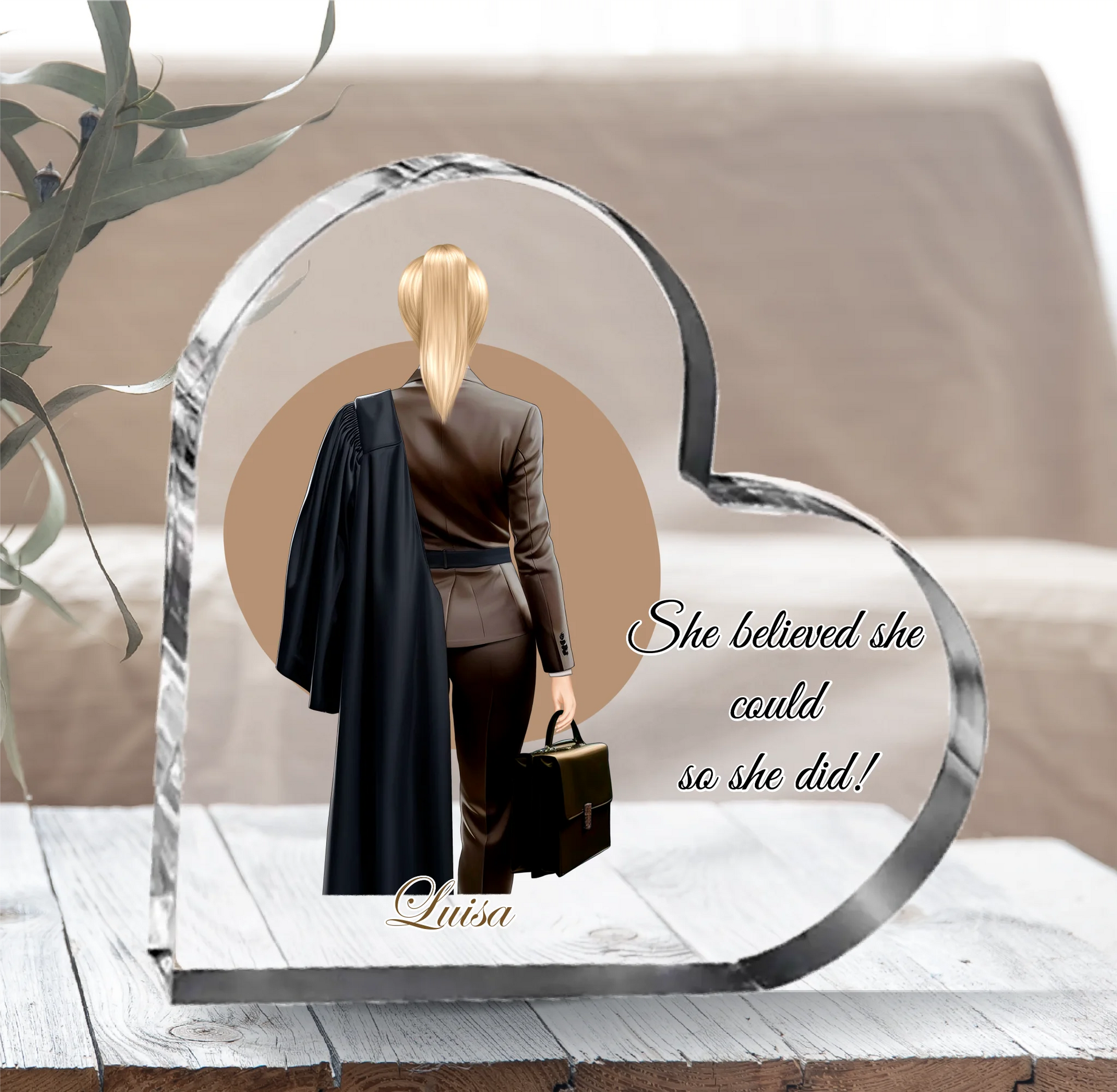 Anwältin (Frau/Mann) Herz Glasaufsteller