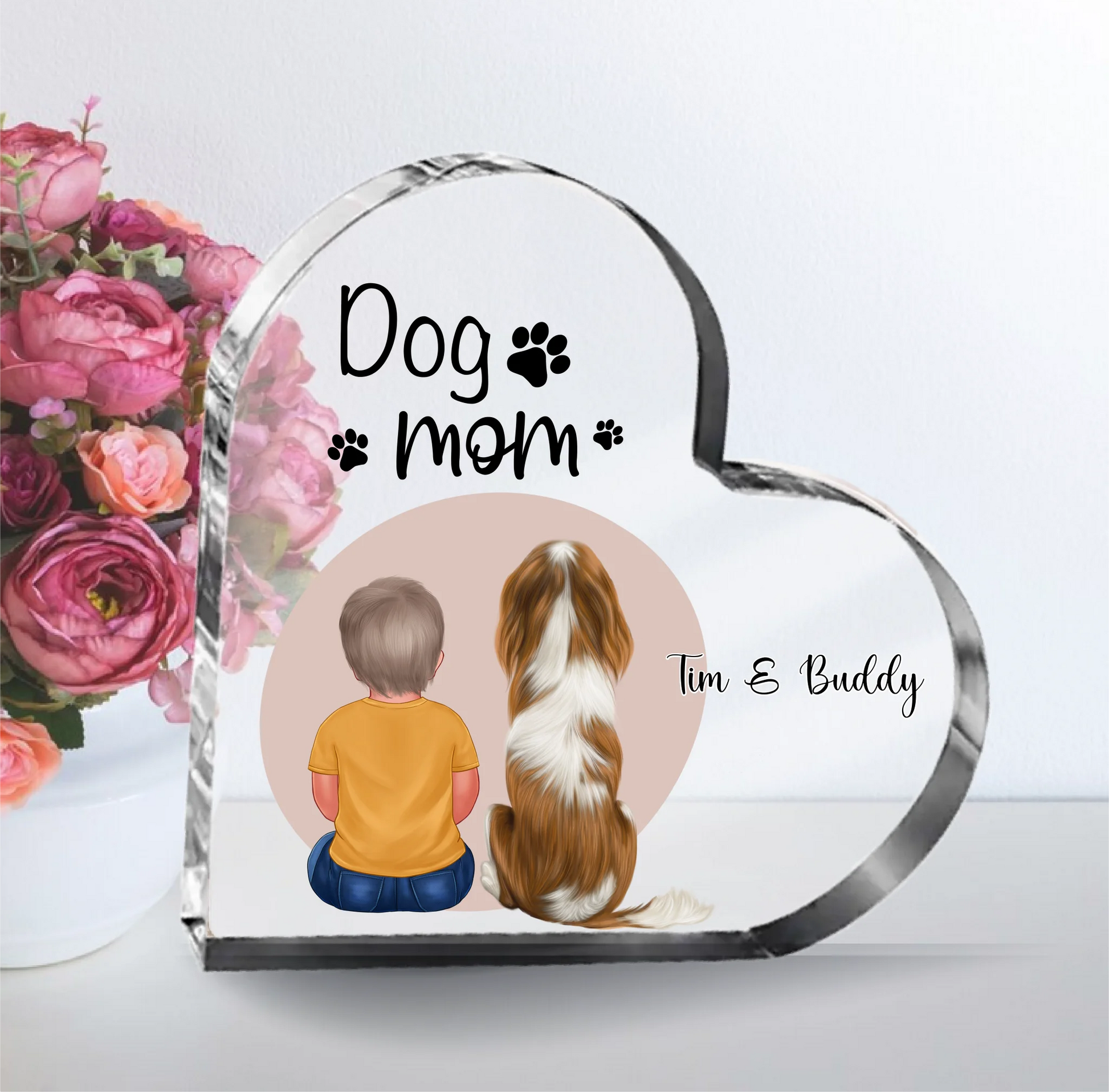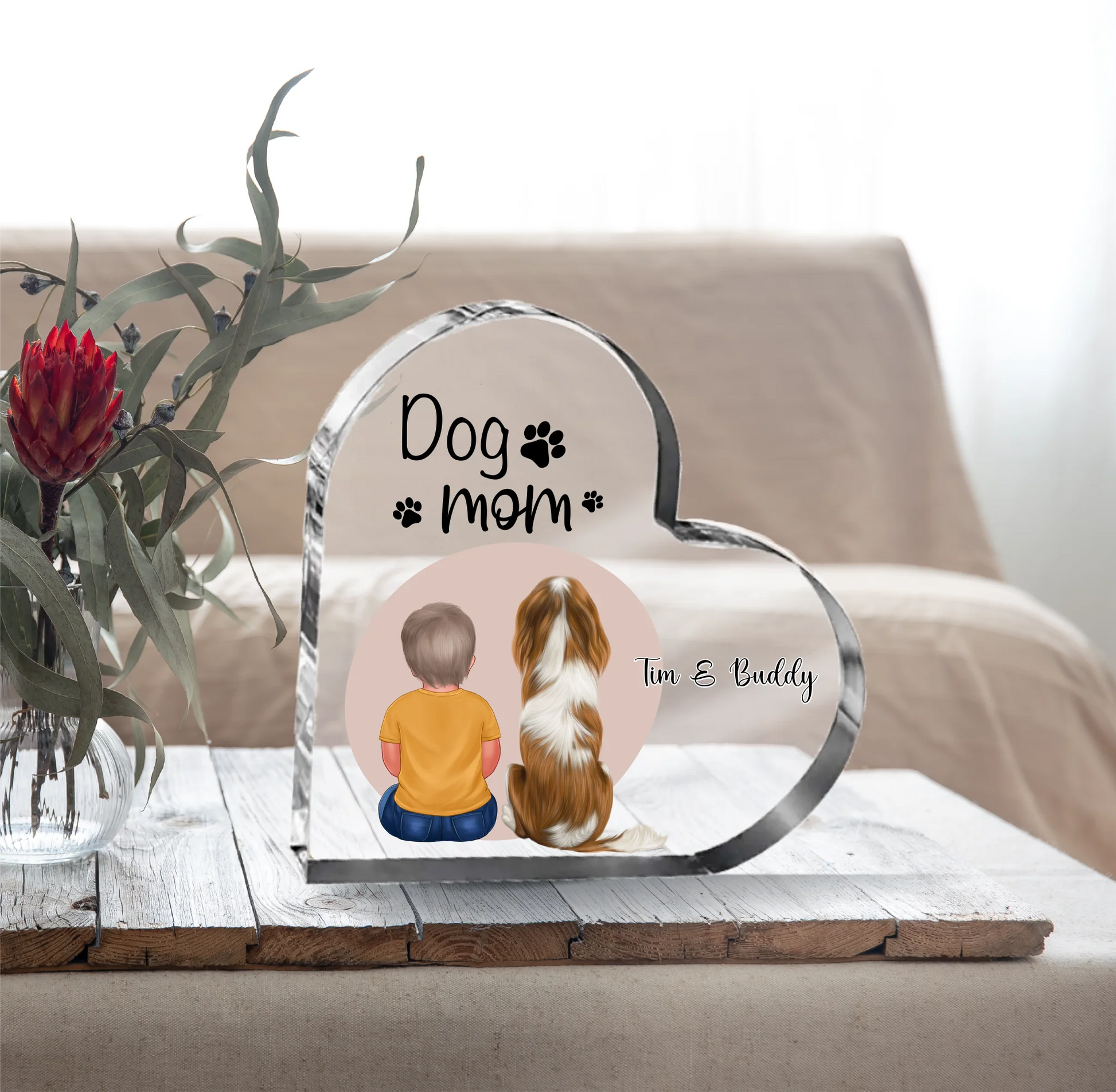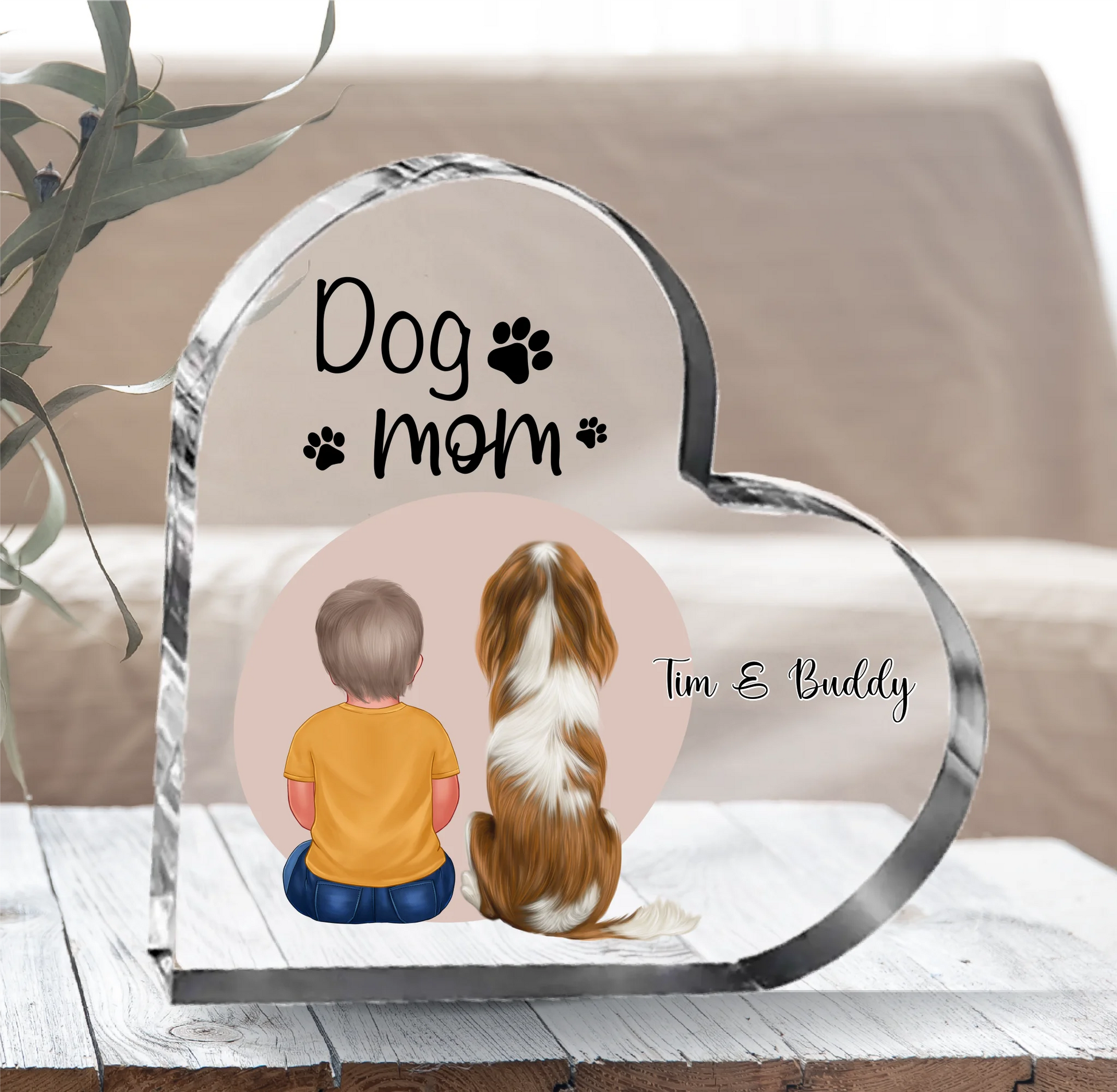 Baby/Kind mit Haustier Herz Glasaufsteller