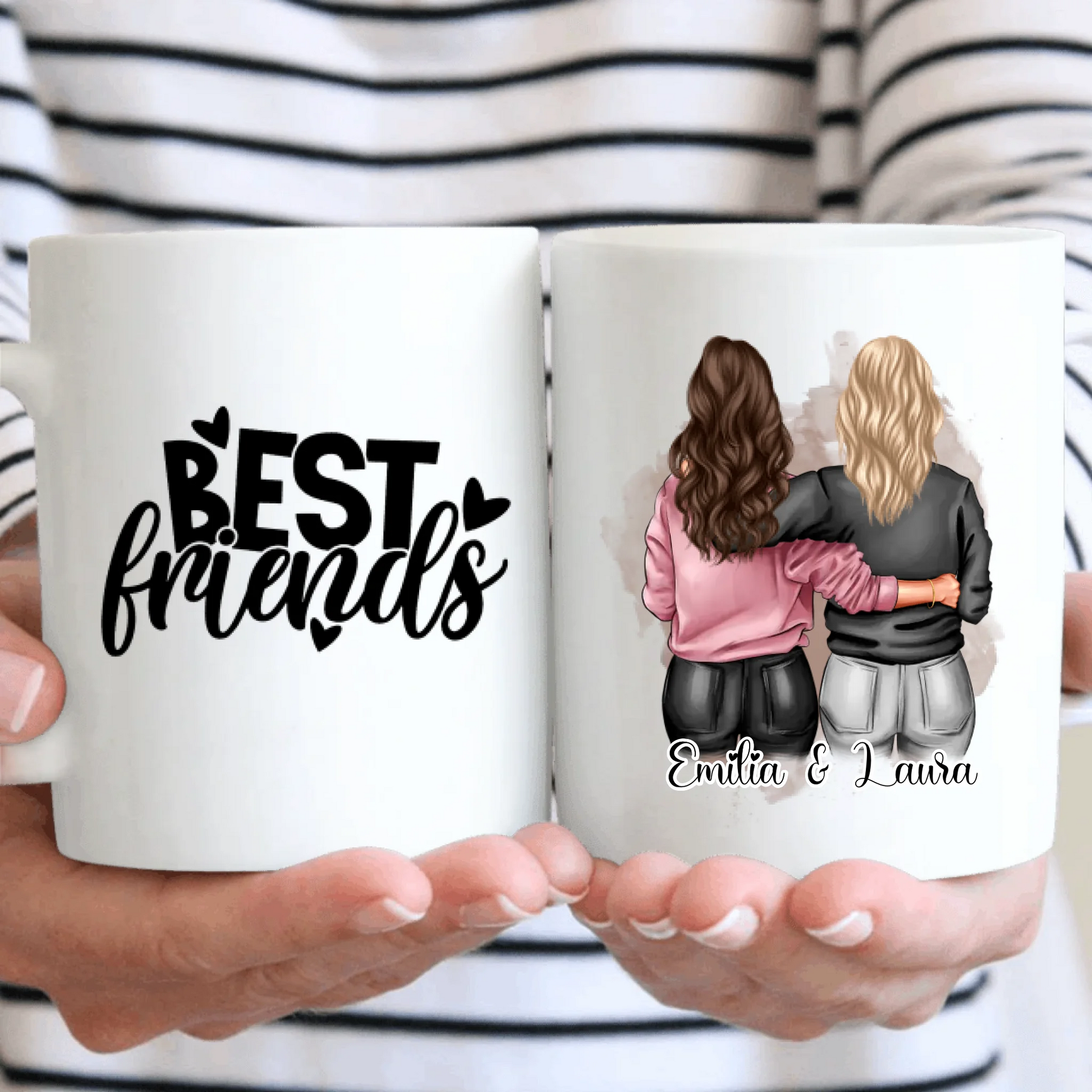 Grenzenlose Kreativität: Mit unserer Live-Vorschau kannst du deine Tassen bis ins kleinste Detail personalisieren. Wähle die Haarfarbe, den Hautton, den Kleidungsstil und füge Namen oder inspirierende Botschaften hinzu. Deiner Fantasie sind keine Grenzen gesetzt.