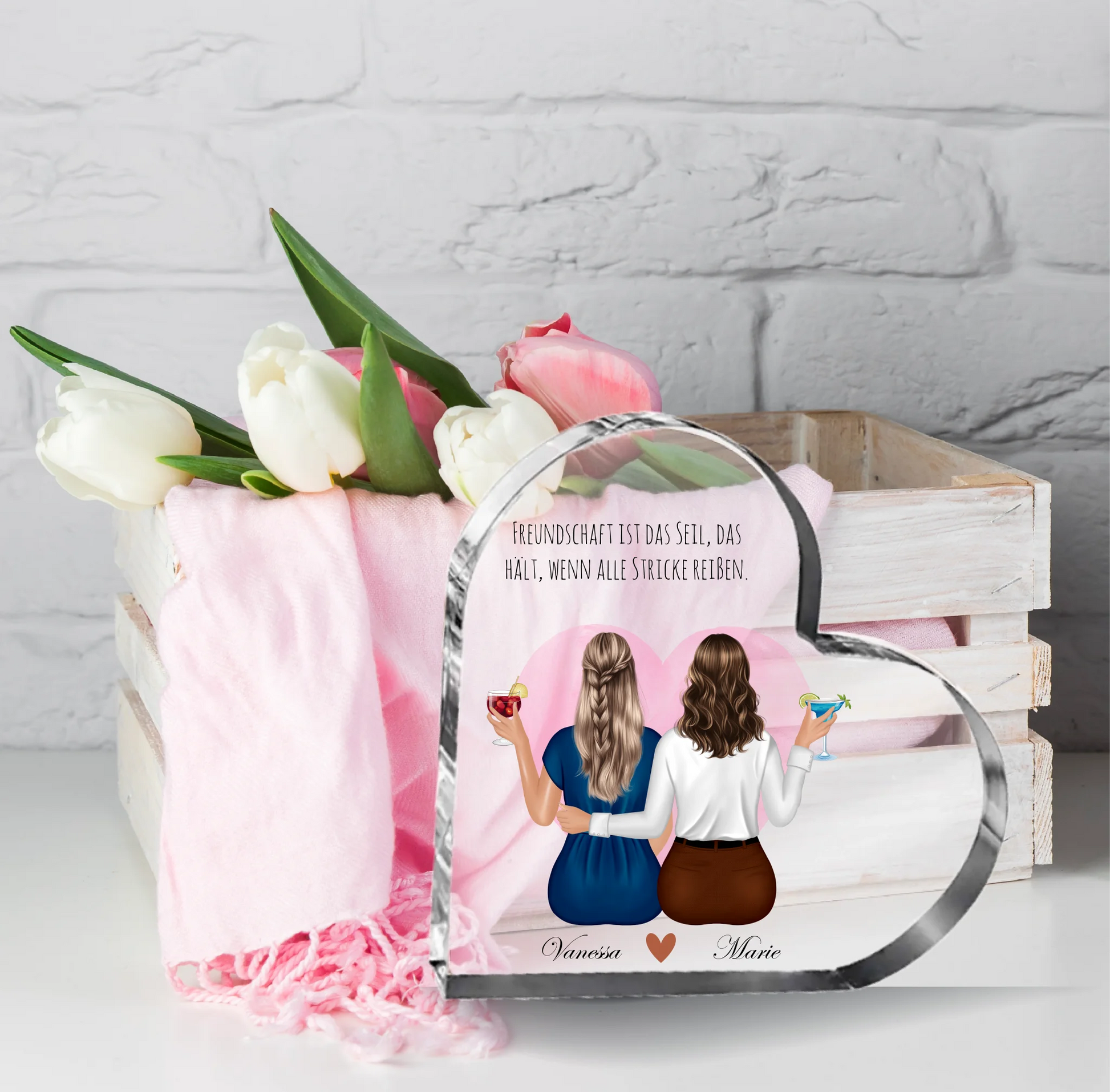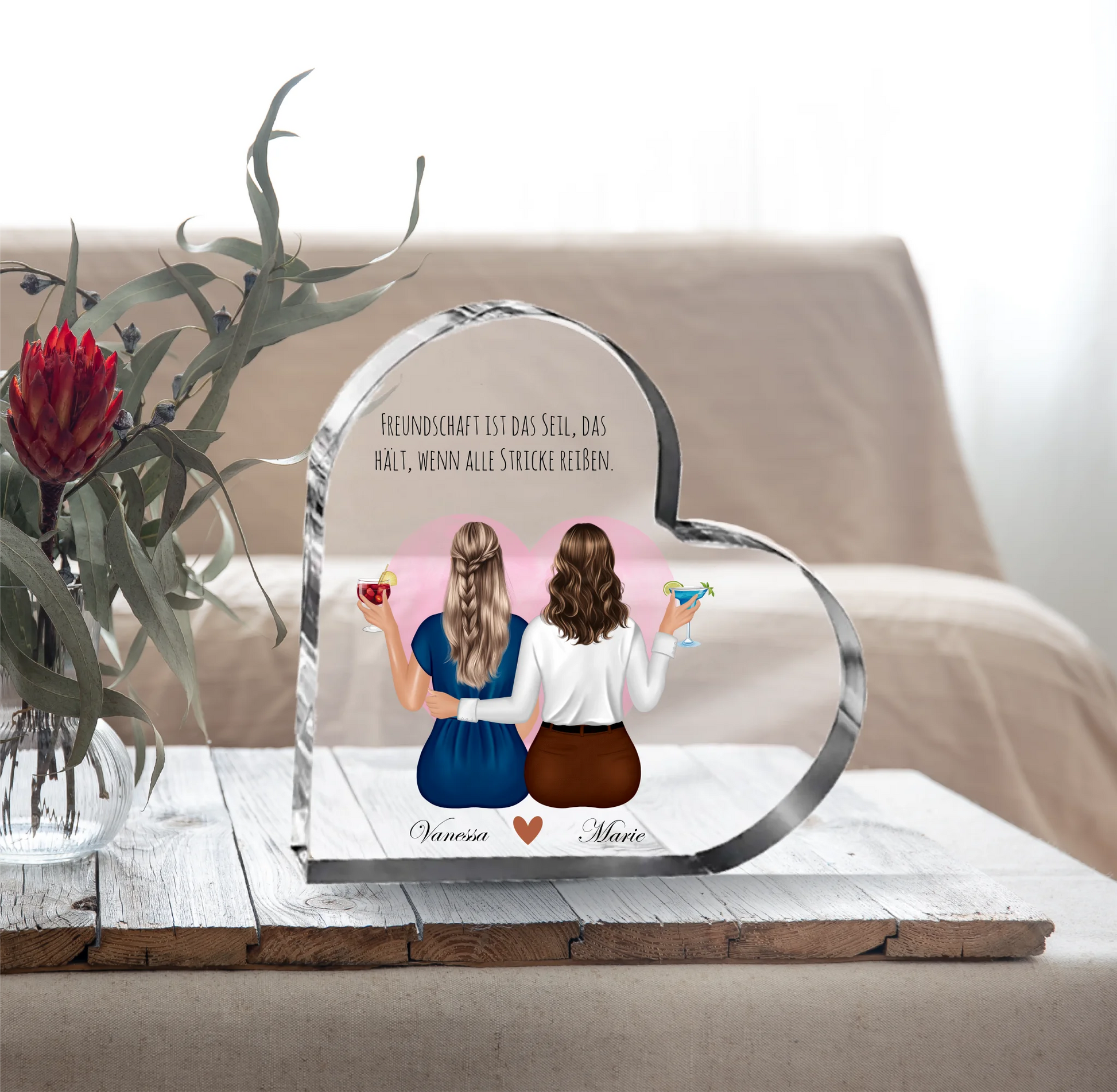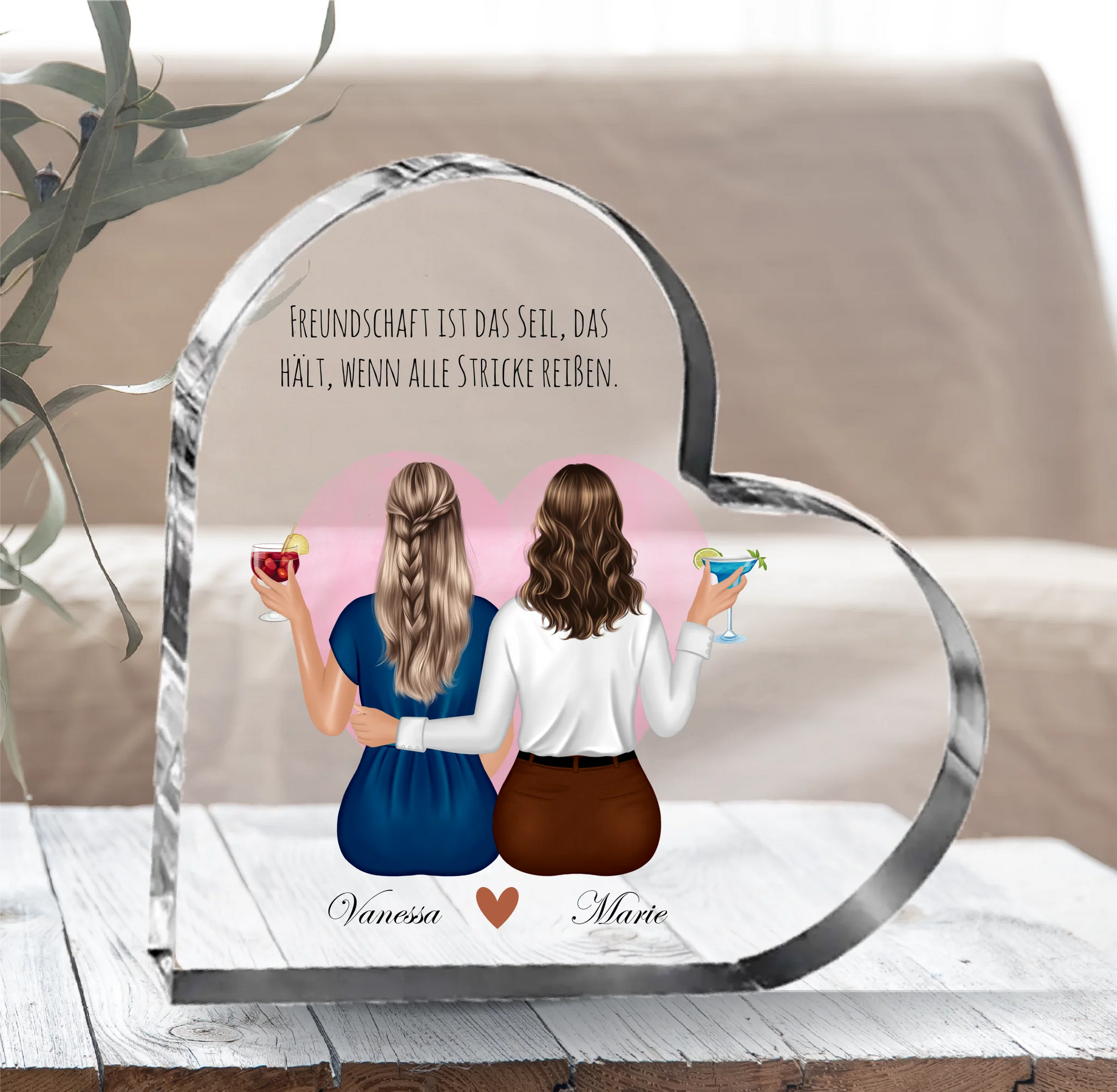 Beste Freundinnen mit Getränk Herz Glasaufsteller