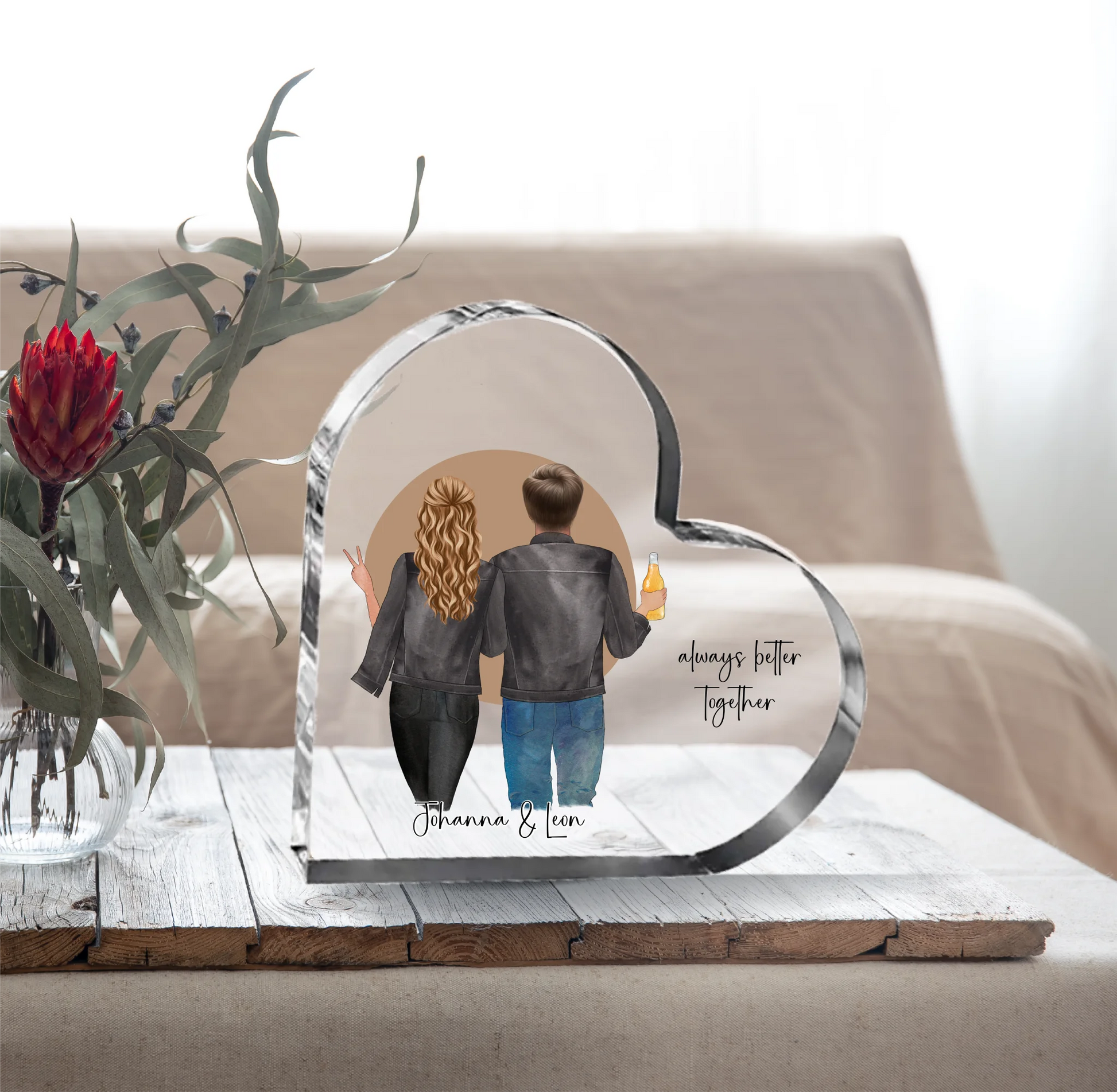 Willkommen in unserer Welt der Individualität und Liebe! Unsere personalisierten Herz Glasaufsteller sind nicht nur Dekorationen; sie sind Ausdruck von Verbundenheit und Zuneigung. Mit unserer einfach zu bedienenden Plattform kannst du Figuren mit individuellen Merkmalen gestalten, sodass jeder Aufsteller zu einem einzigartigen Zeichen deiner Liebe wird.
