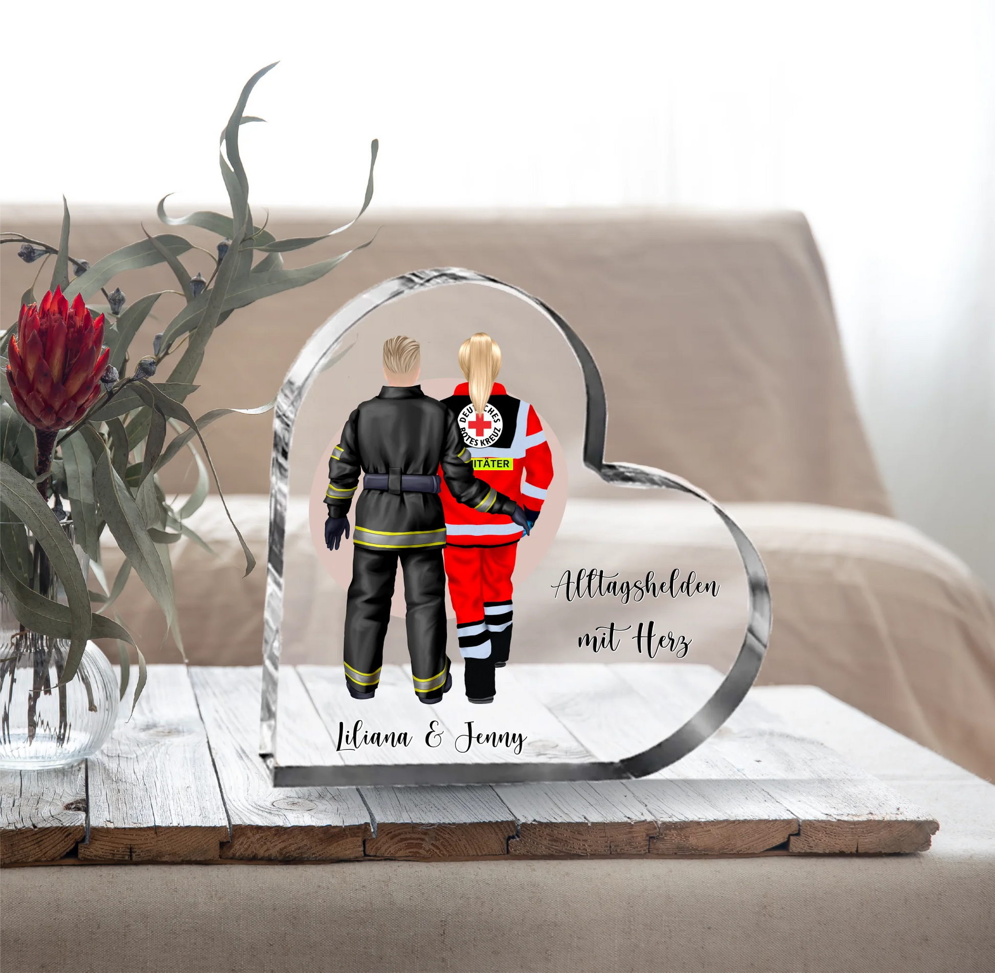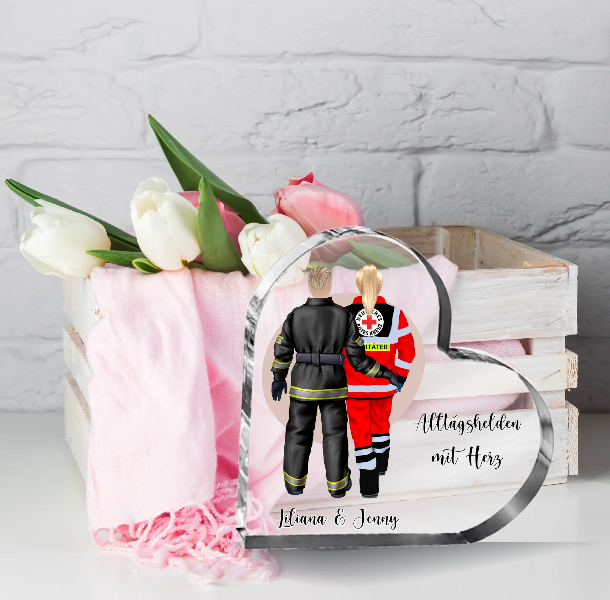 Feuerwehr & Sanitäter Herz Glasaufsteller
