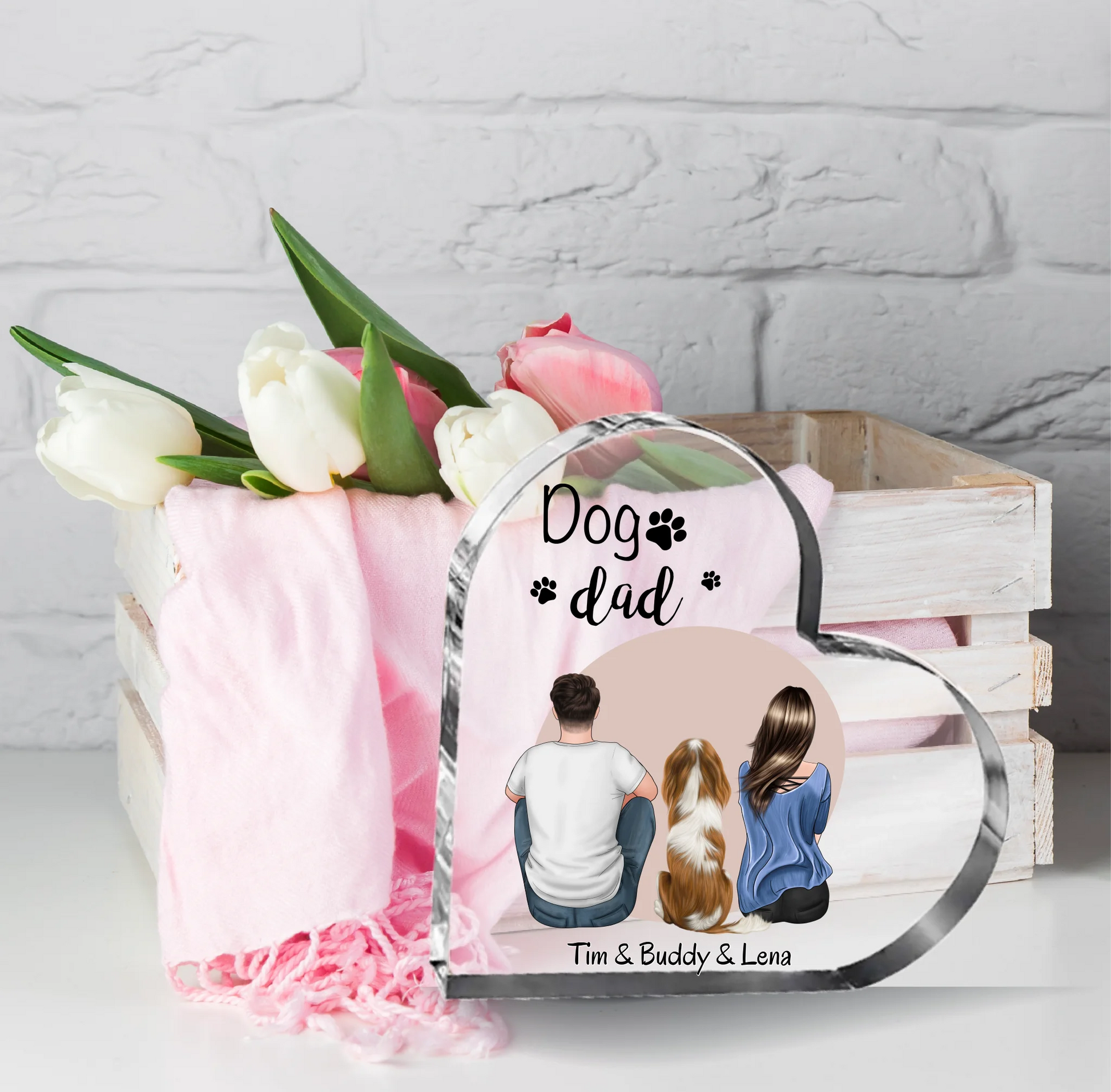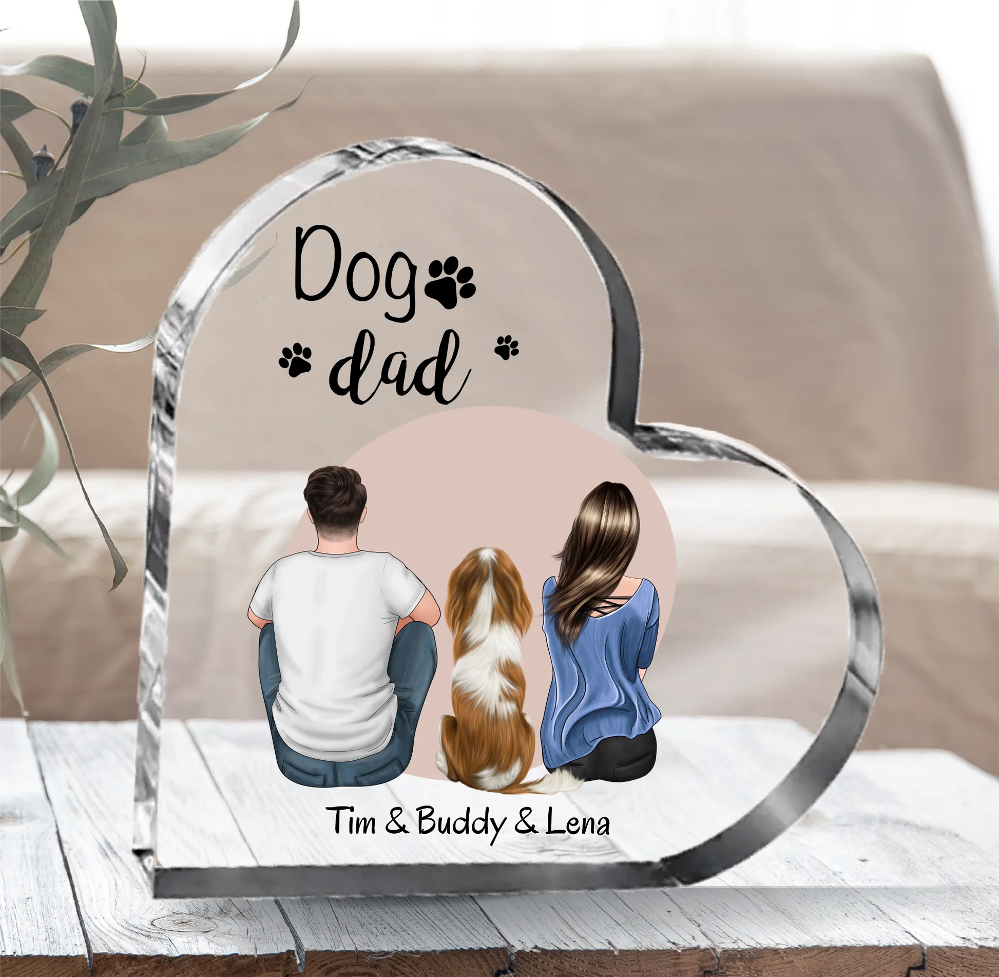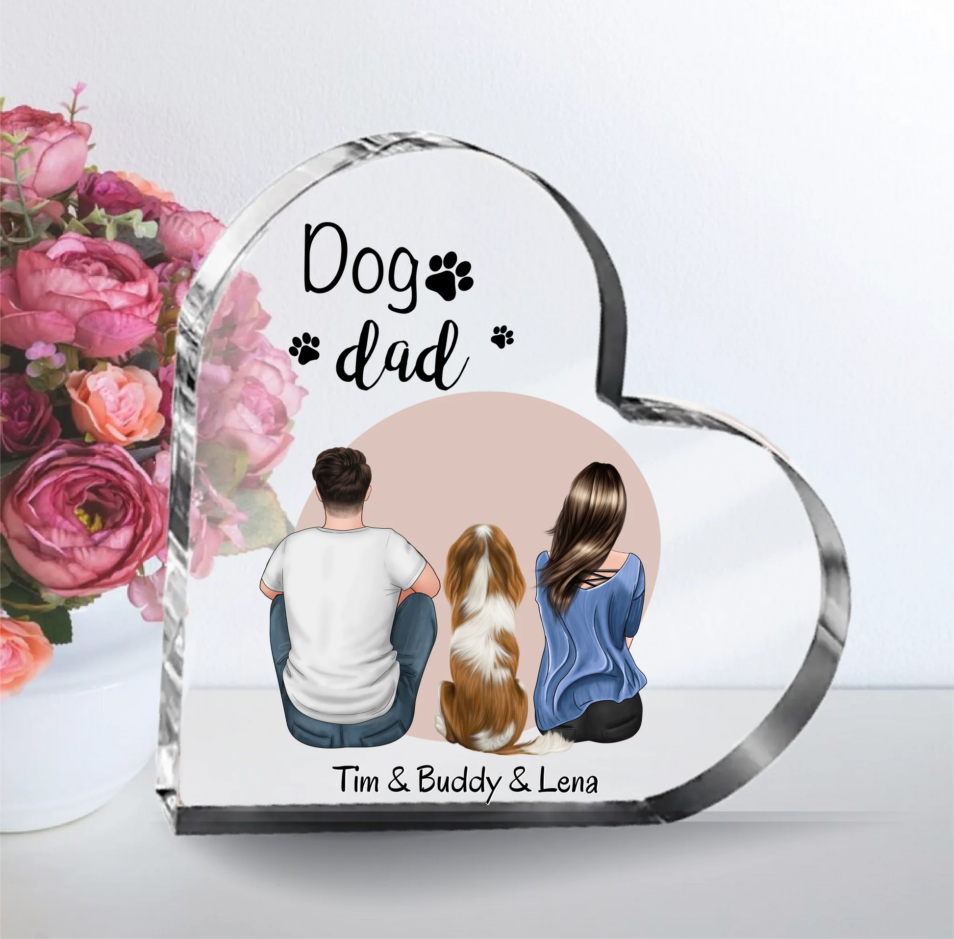 Frauchen & Herrchen mit Haustier (Hund/Katze) Herz Glasaufsteller