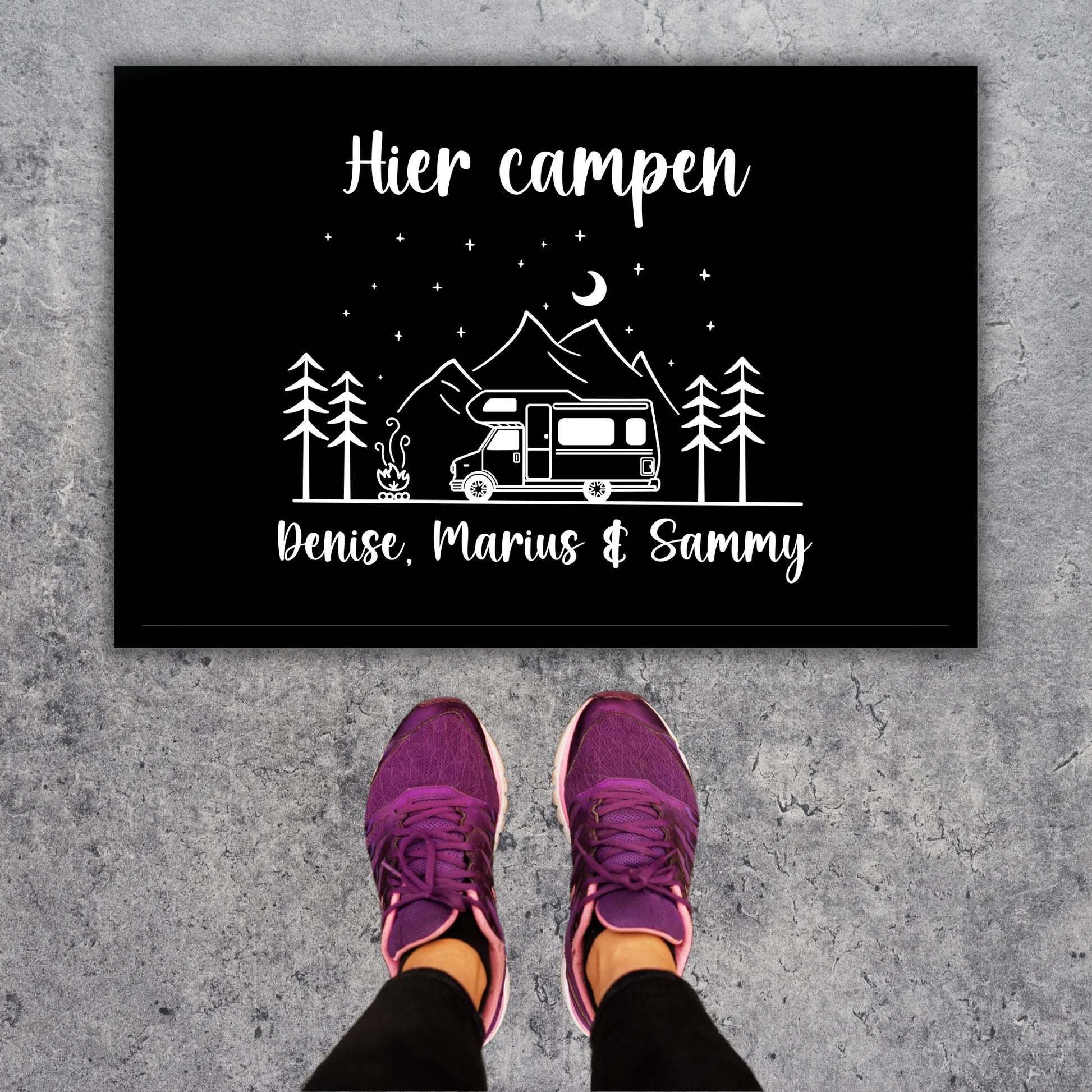 Hier campen - Personalisierte Fußmatte