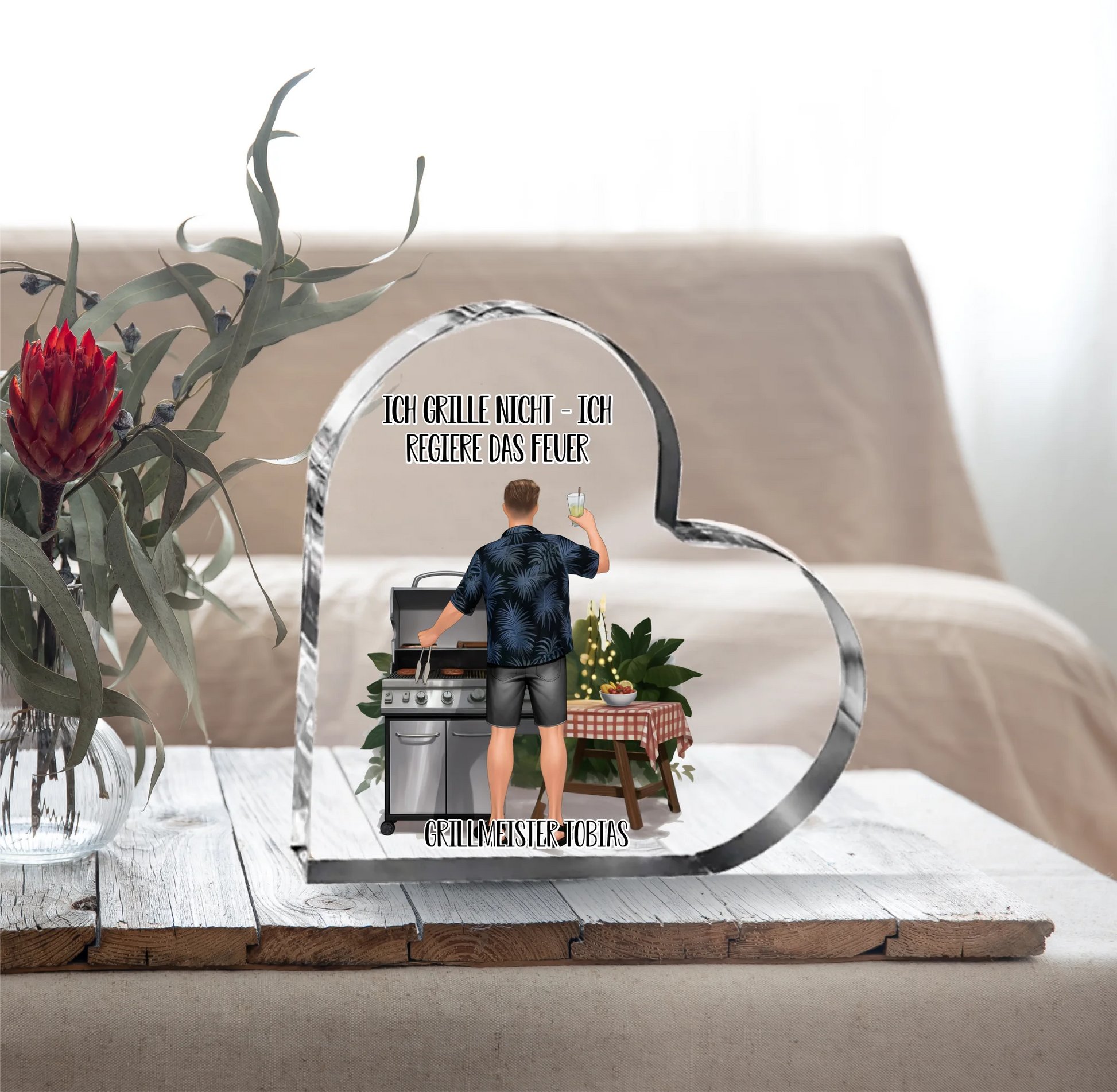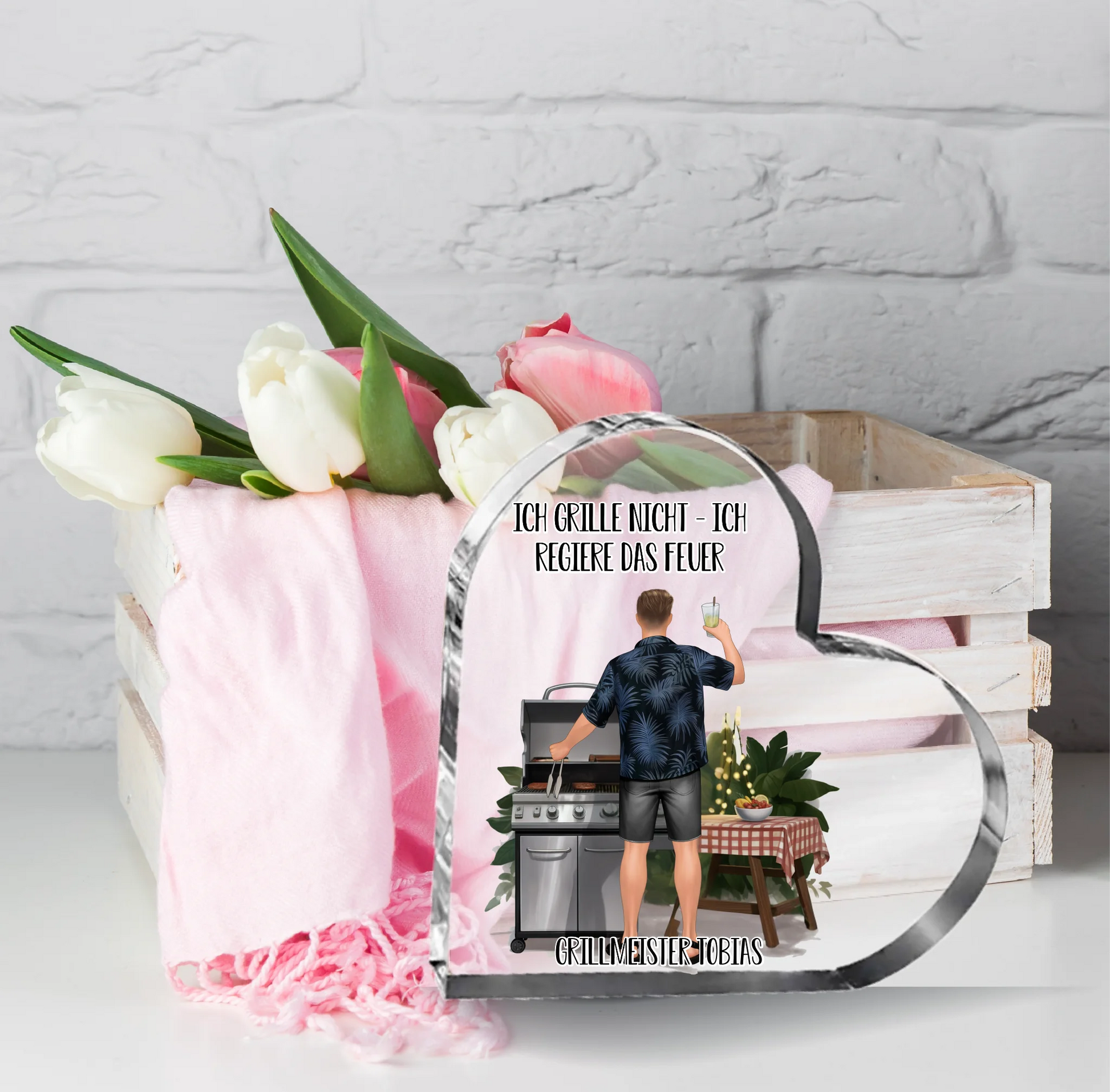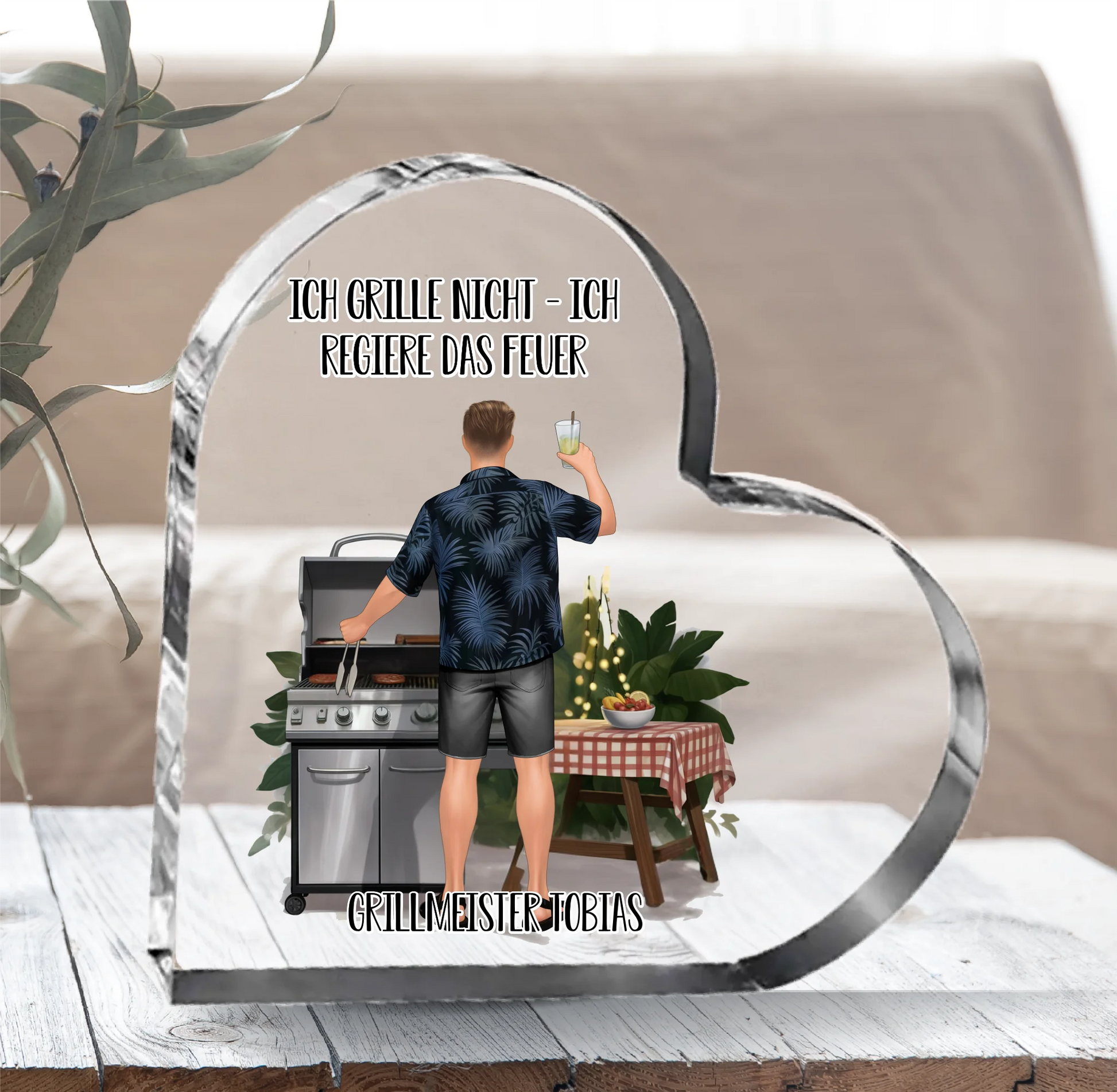 Grillmeister/in Herz Glasaufsteller
