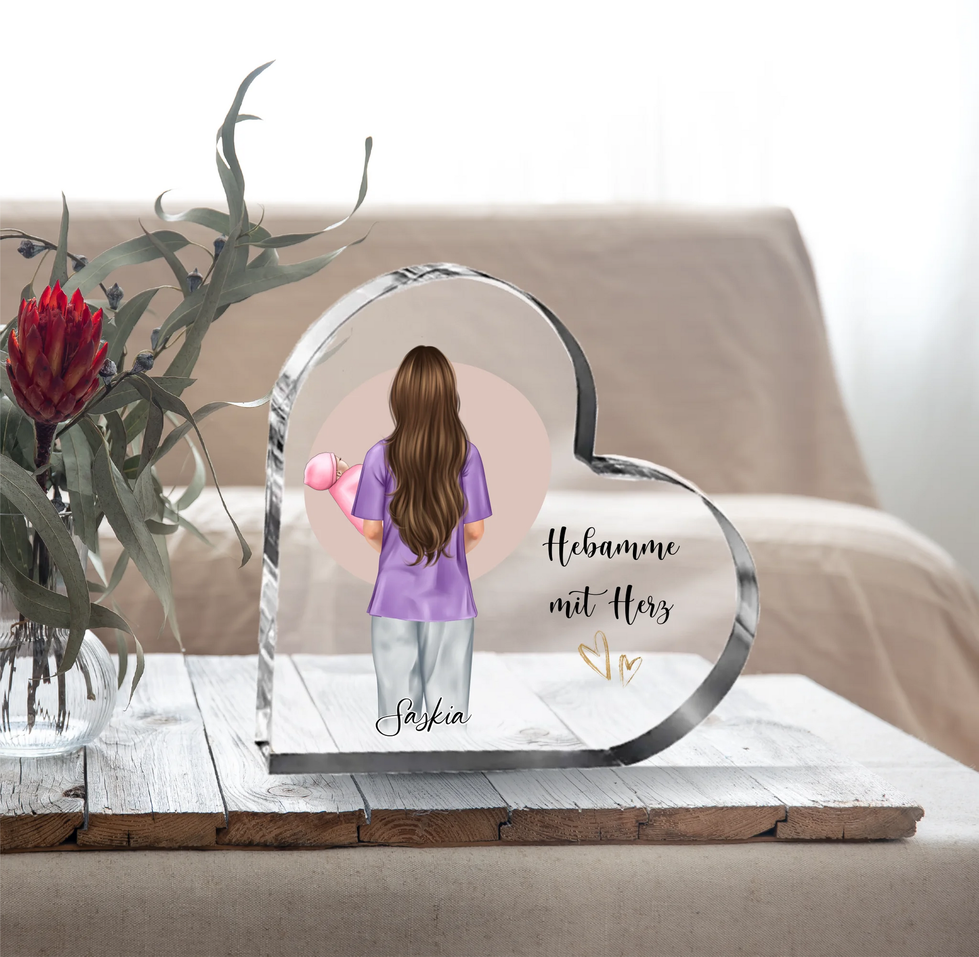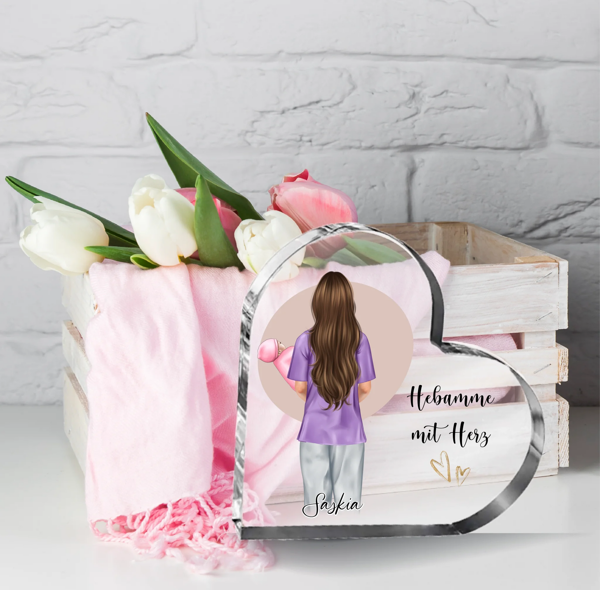 Hebamme Herz Glasaufsteller