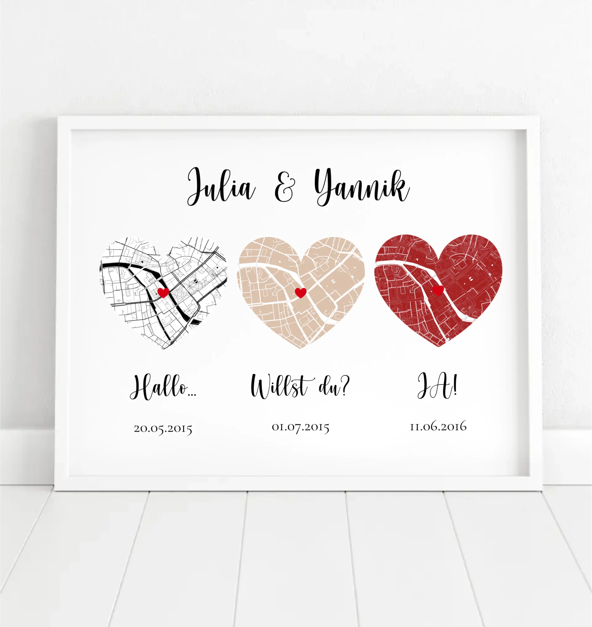 Unsere personalisierten Stadtkarten sind nicht nur Geschenke; sie sind Liebeserklärungen. Sie sagen: "Du bist einzigartig, und unsere Erinnerungen sind es auch." Ob für Hochzeiten, Jubiläen oder als Überraschung für einen geliebten Menschen – diese Karten überbringen Gefühle auf eine Weise, die Worte allein nicht können.