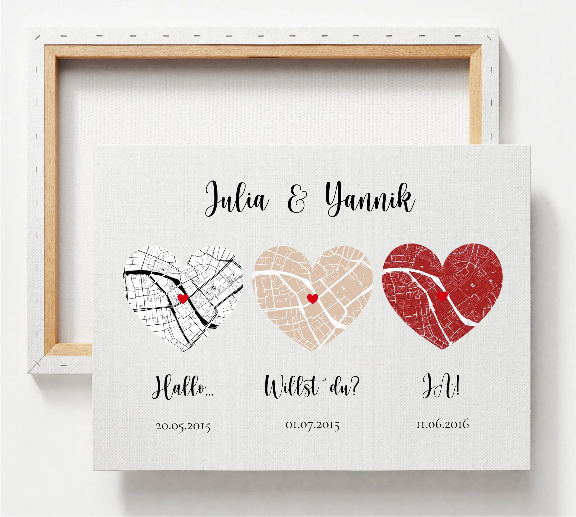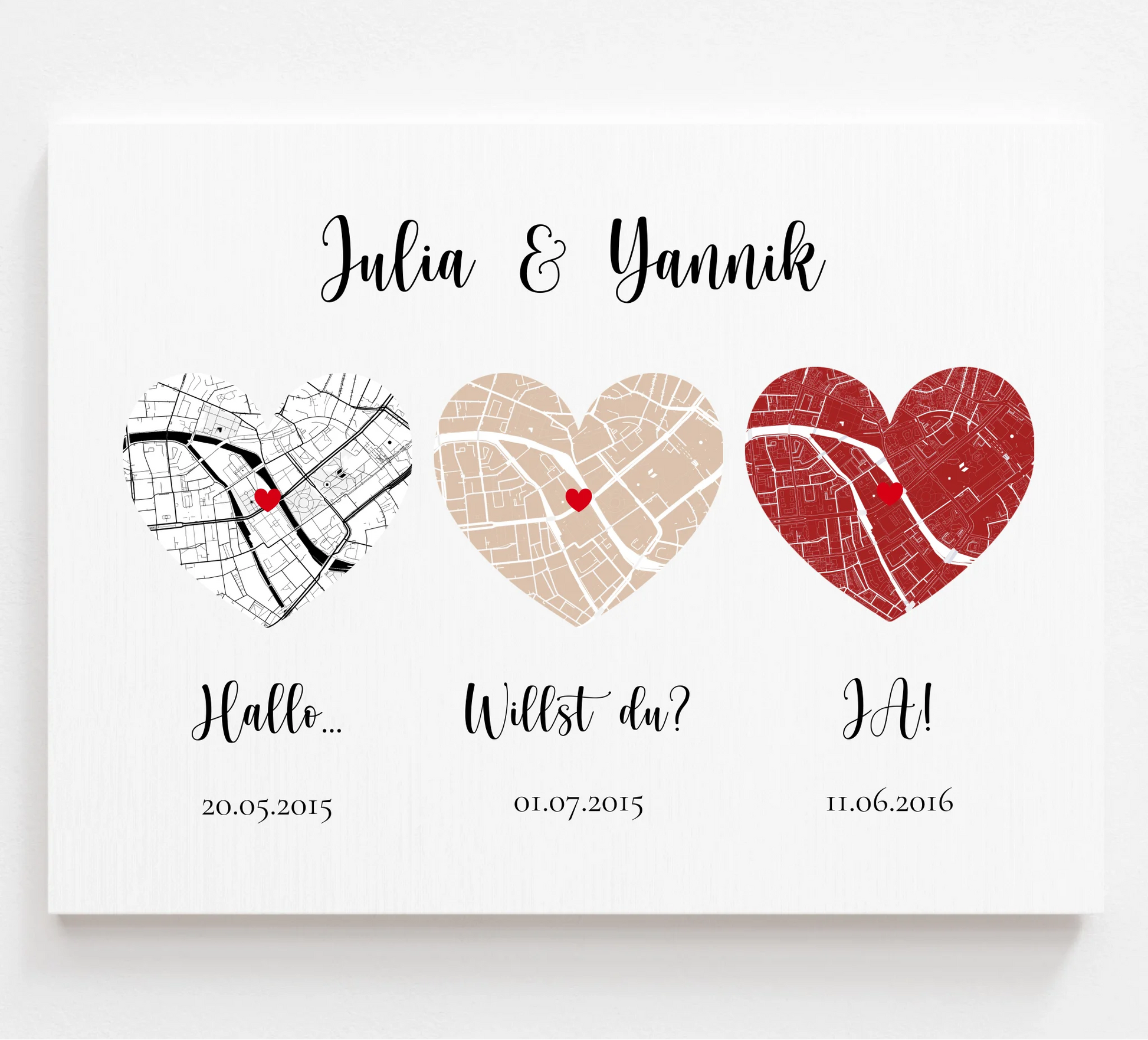 Egal, ob es sich um den Ort des ersten Kennenlernens, den Tag deiner Hochzeit oder den Geburtsort eines geliebten Menschen handelt – diese Leinwände sind Symbole der Liebe und der gemeinsam verbrachten Momente. Sie sind nicht nur dekorierte Wände, sondern bewegende Erzählungen.