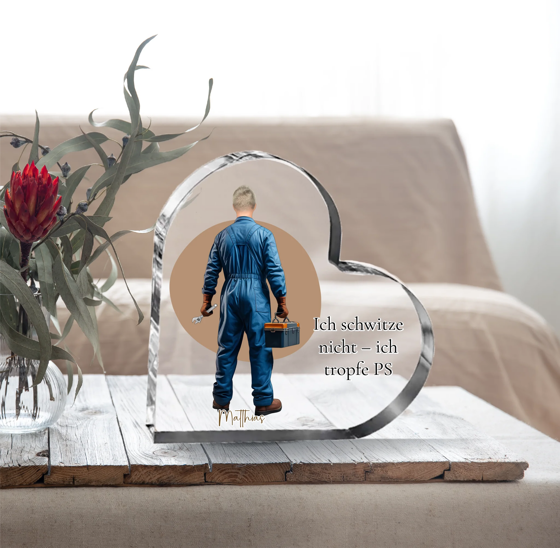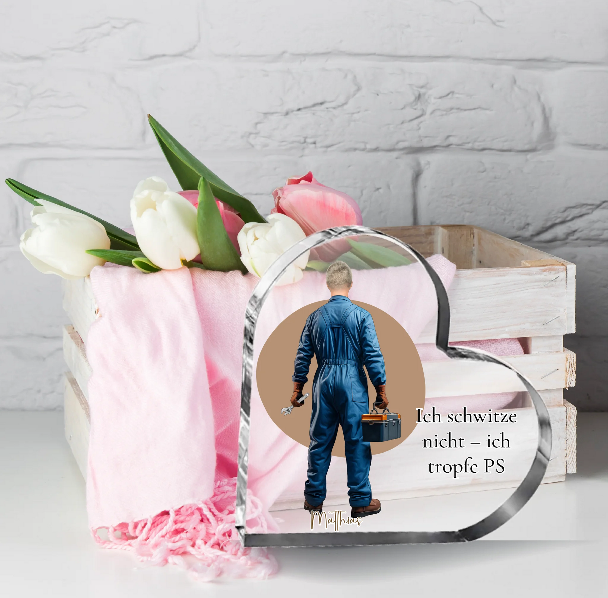 KFZ-Mechniker (Mann/Frau) Herz Glasaufsteller