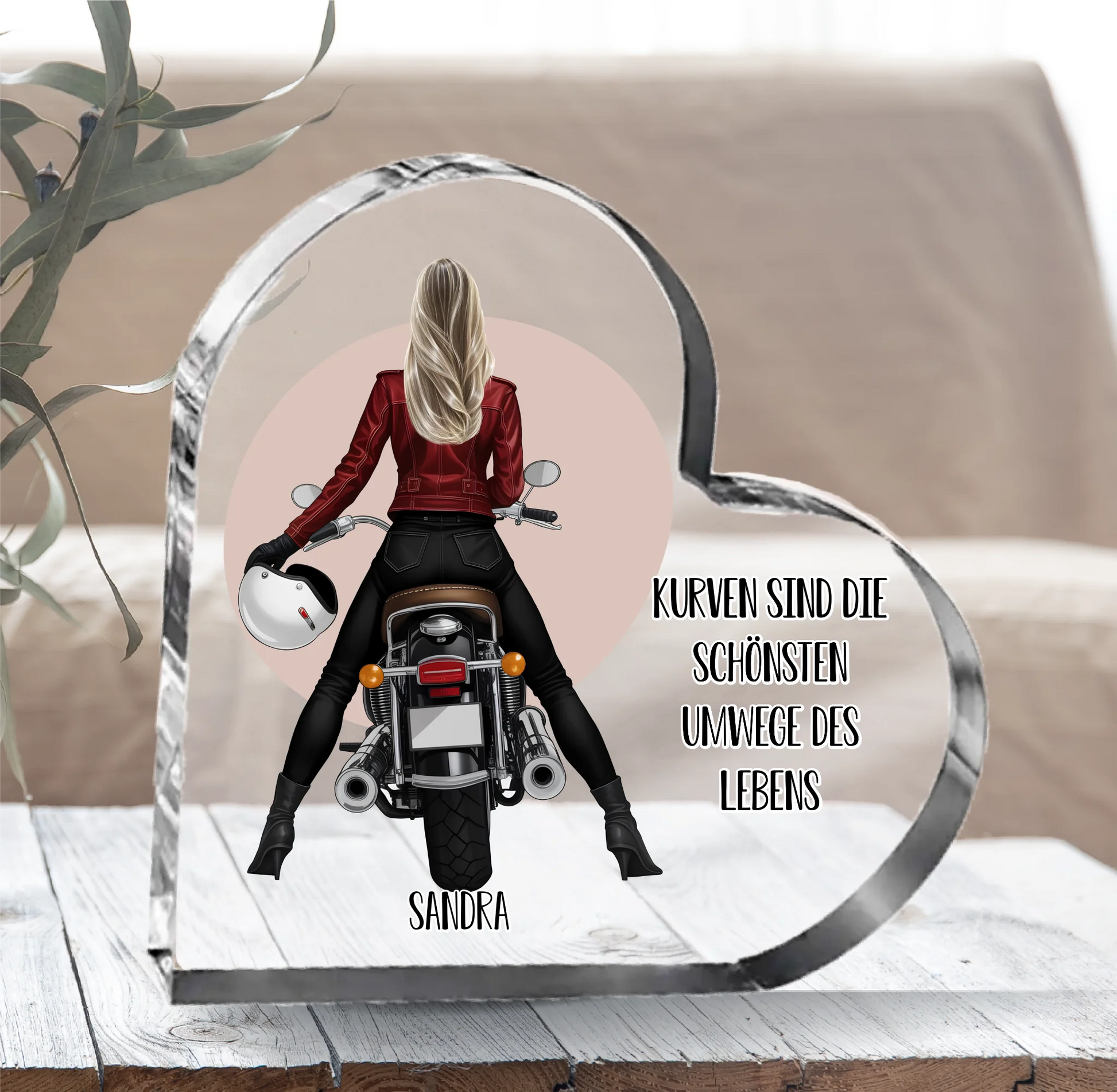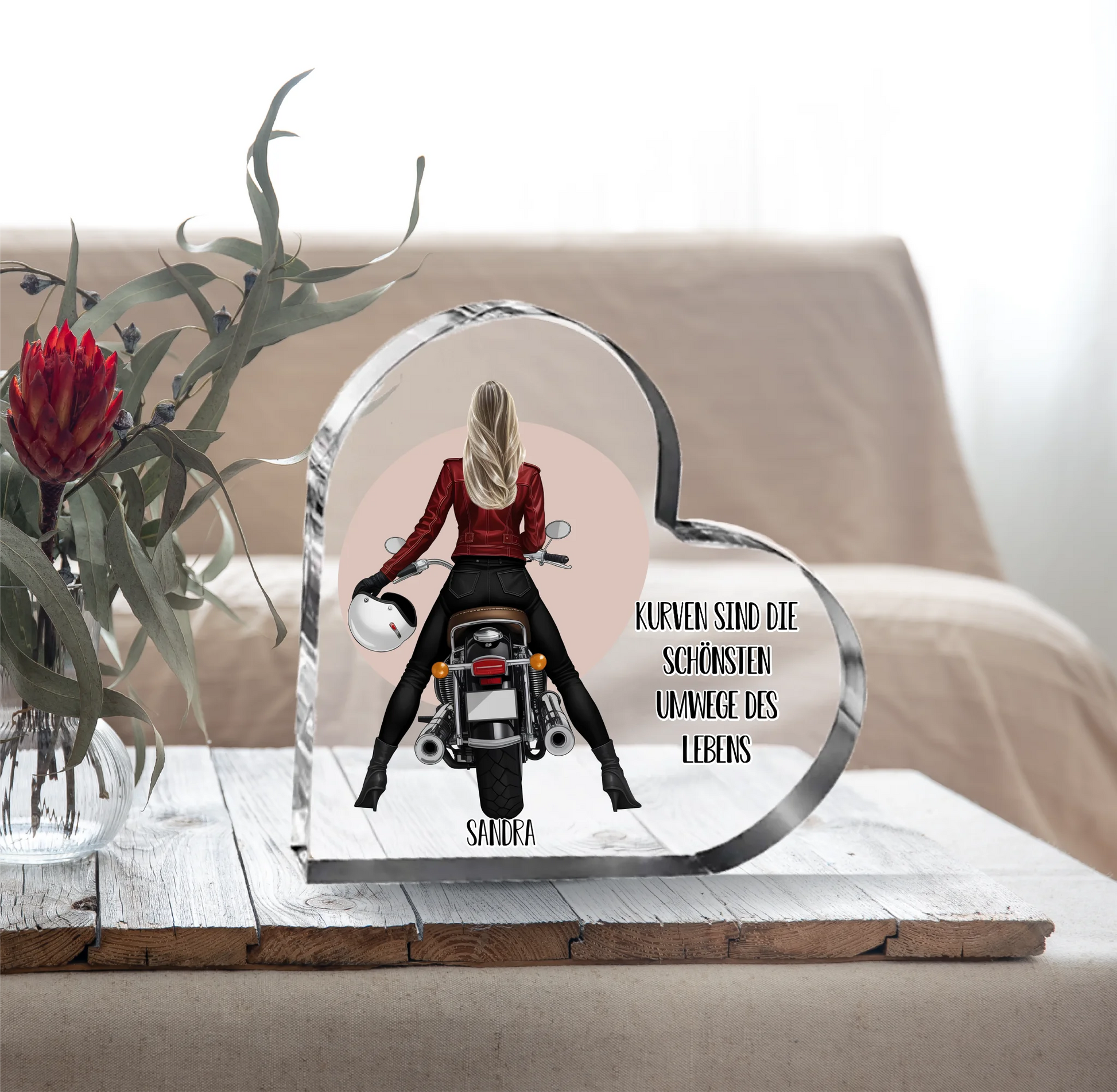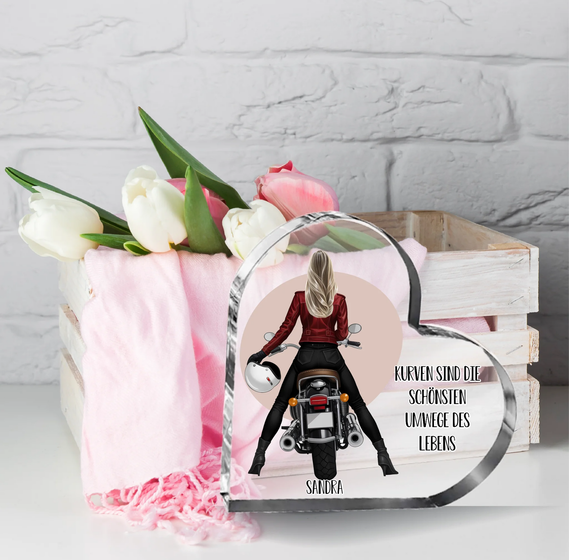Motorrad (Frau/Mann) Herz Glasaufsteller