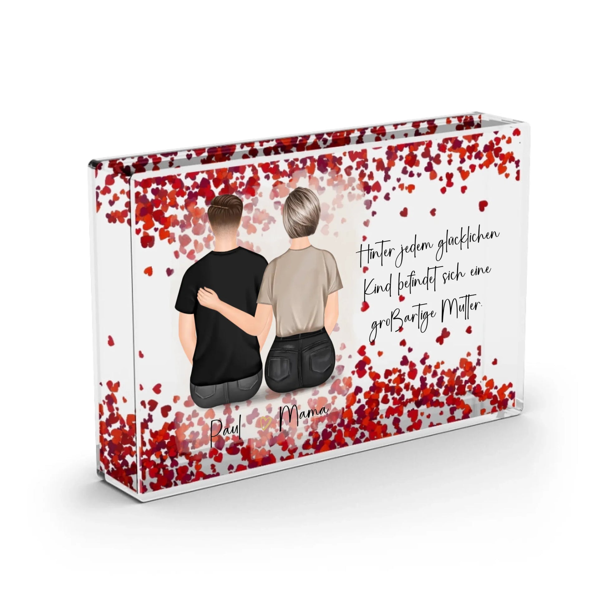 Mutter & 1-2 Söhne Schneekugel Herz Pailletten