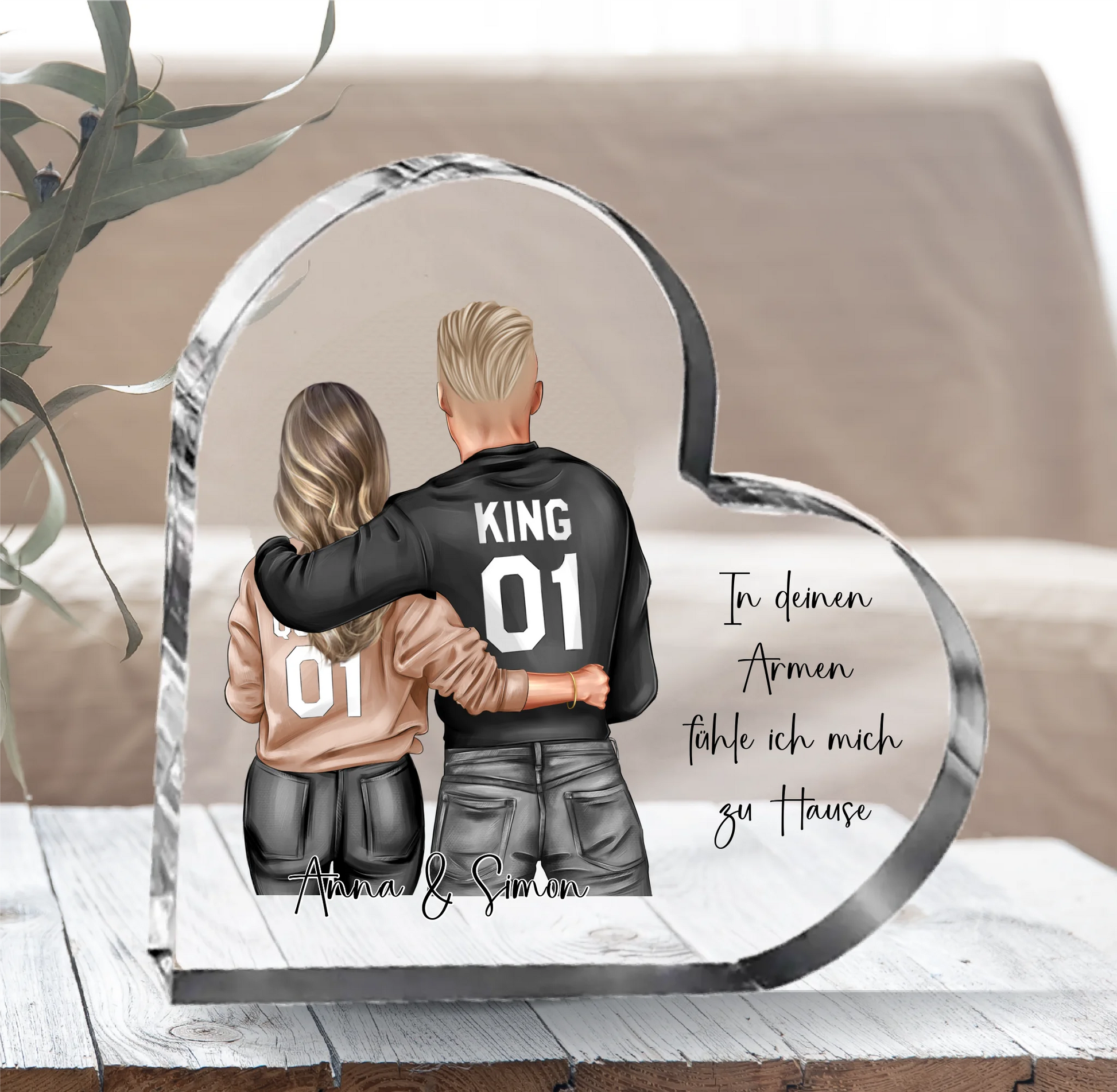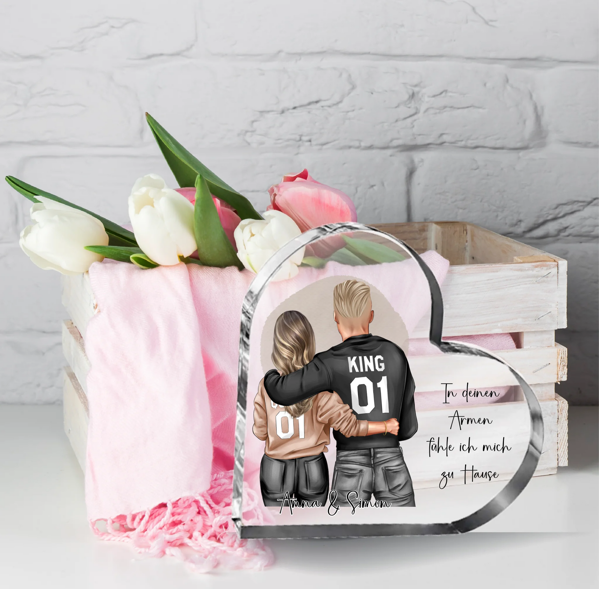 Willkommen in unserer Welt der Individualität und Liebe! Unsere personalisierten Herz Glasaufsteller sind nicht nur Dekorationen; sie sind Ausdruck von Verbundenheit und Zuneigung. Mit unserer einfach zu bedienenden Plattform kannst du Figuren mit individuellen Merkmalen gestalten, sodass jeder Aufsteller zu einem einzigartigen Zeichen deiner Liebe wird.