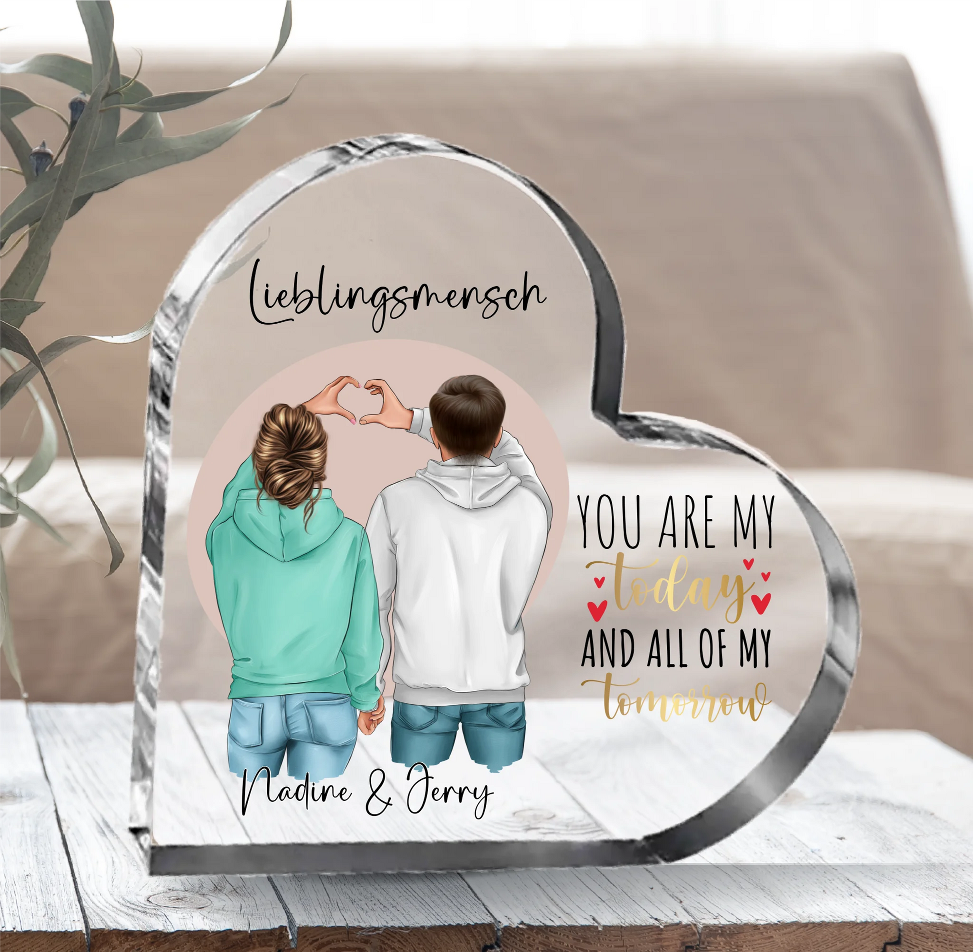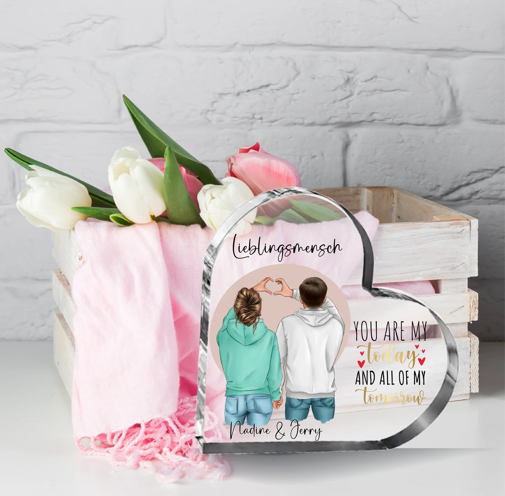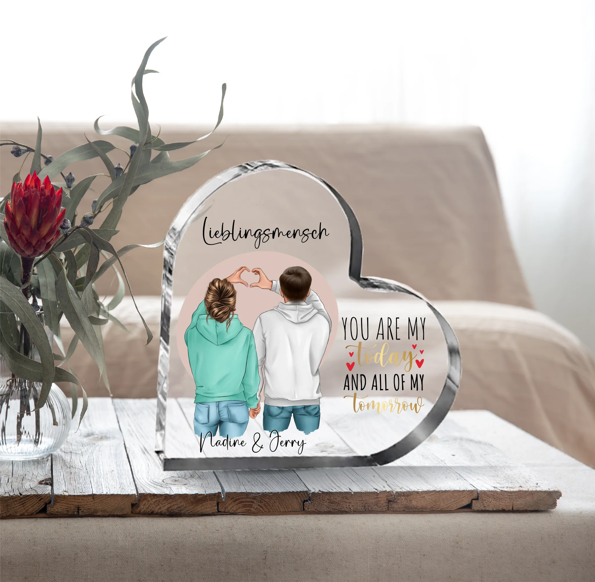 Willkommen in unserer Welt der Individualität und Liebe! Unsere personalisierten Herz Glasaufsteller sind nicht nur Dekorationen; sie sind Ausdruck von Verbundenheit und Zuneigung. Mit unserer einfach zu bedienenden Plattform kannst du Figuren mit individuellen Merkmalen gestalten, sodass jeder Aufsteller zu einem einzigartigen Zeichen deiner Liebe wird.