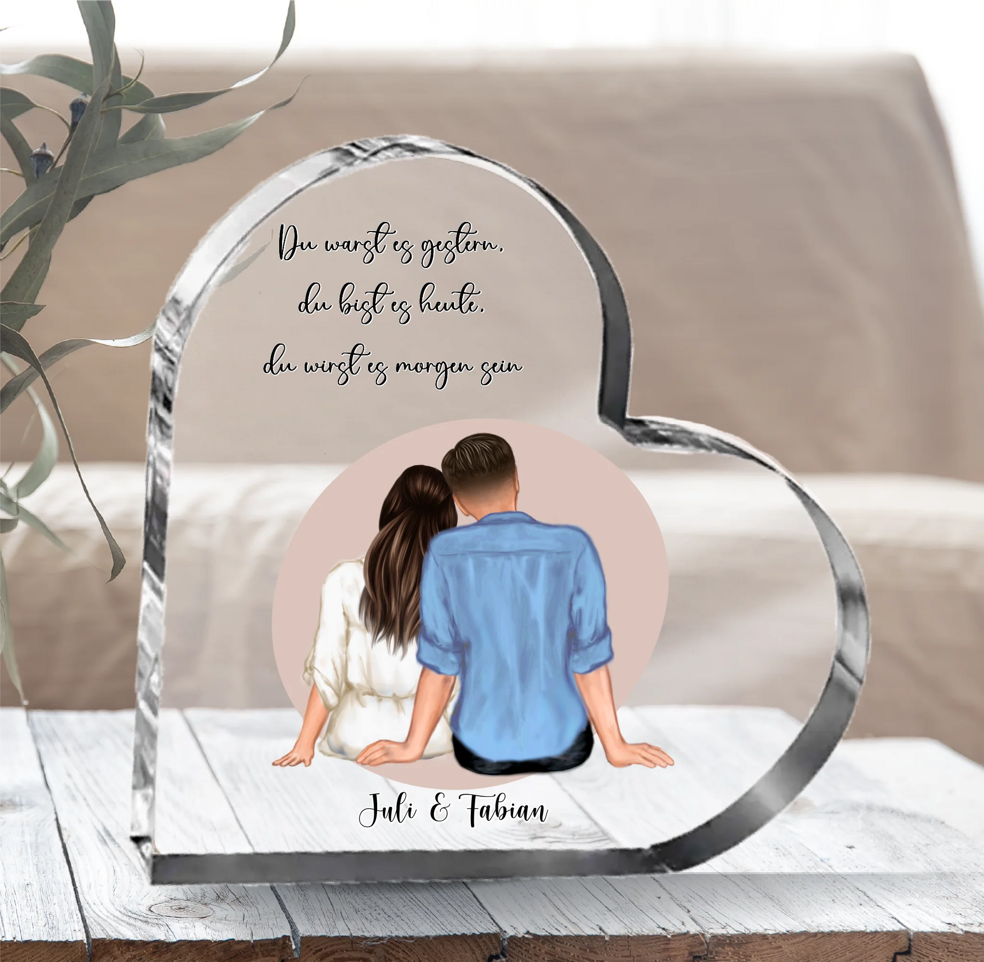 Willkommen in unserer Welt der Individualität und Liebe! Unsere personalisierten Herz Glasaufsteller sind nicht nur Dekorationen; sie sind Ausdruck von Verbundenheit und Zuneigung. Mit unserer einfach zu bedienenden Plattform kannst du Figuren mit individuellen Merkmalen gestalten, sodass jeder Aufsteller zu einem einzigartigen Zeichen deiner Liebe wird.