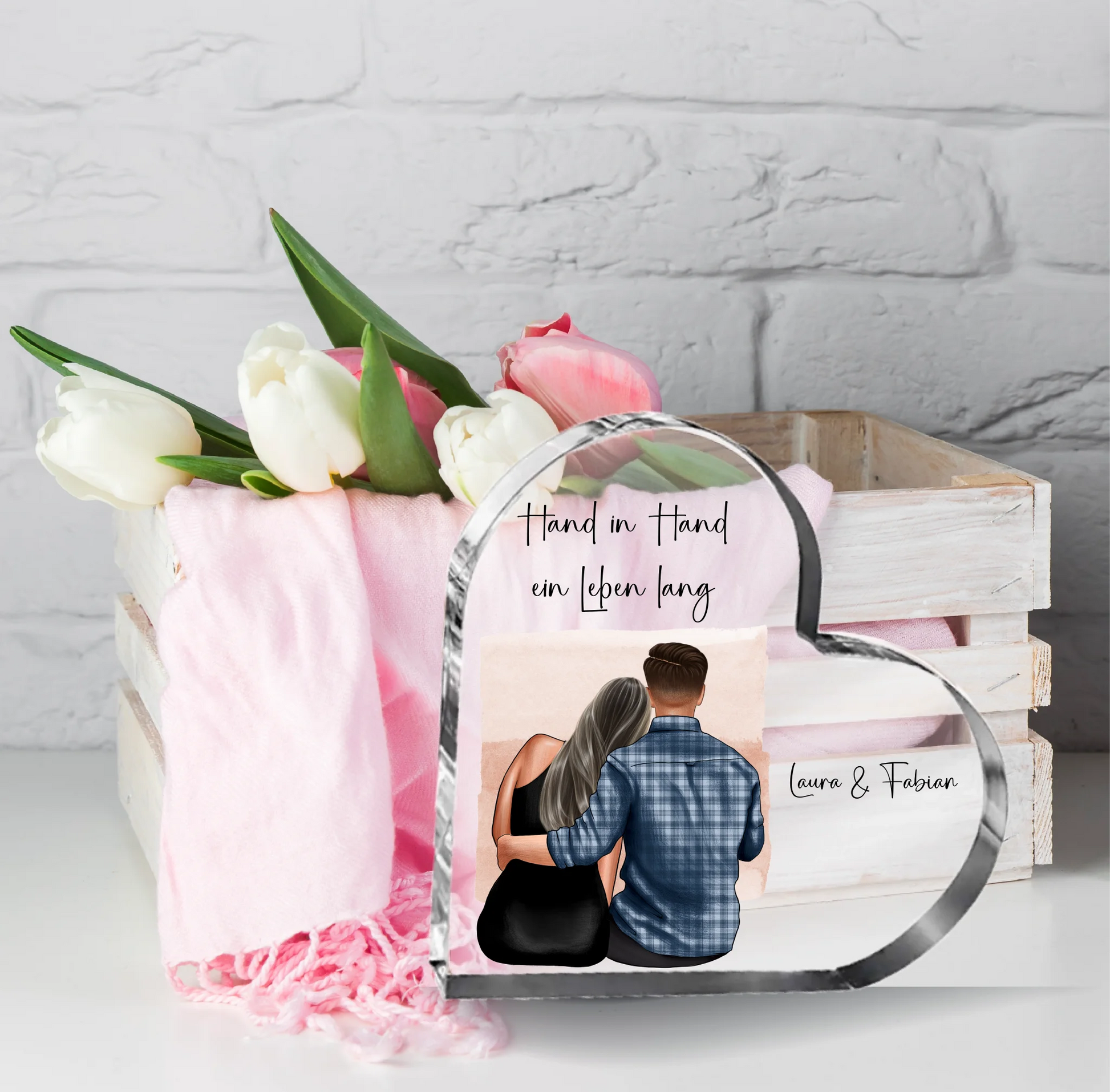 Willkommen in unserer Welt der Individualität und Liebe! Unsere personalisierten Herz Glasaufsteller sind nicht nur Dekorationen; sie sind Ausdruck von Verbundenheit und Zuneigung. Mit unserer einfach zu bedienenden Plattform kannst du Figuren mit individuellen Merkmalen gestalten, sodass jeder Aufsteller zu einem einzigartigen Zeichen deiner Liebe wird.