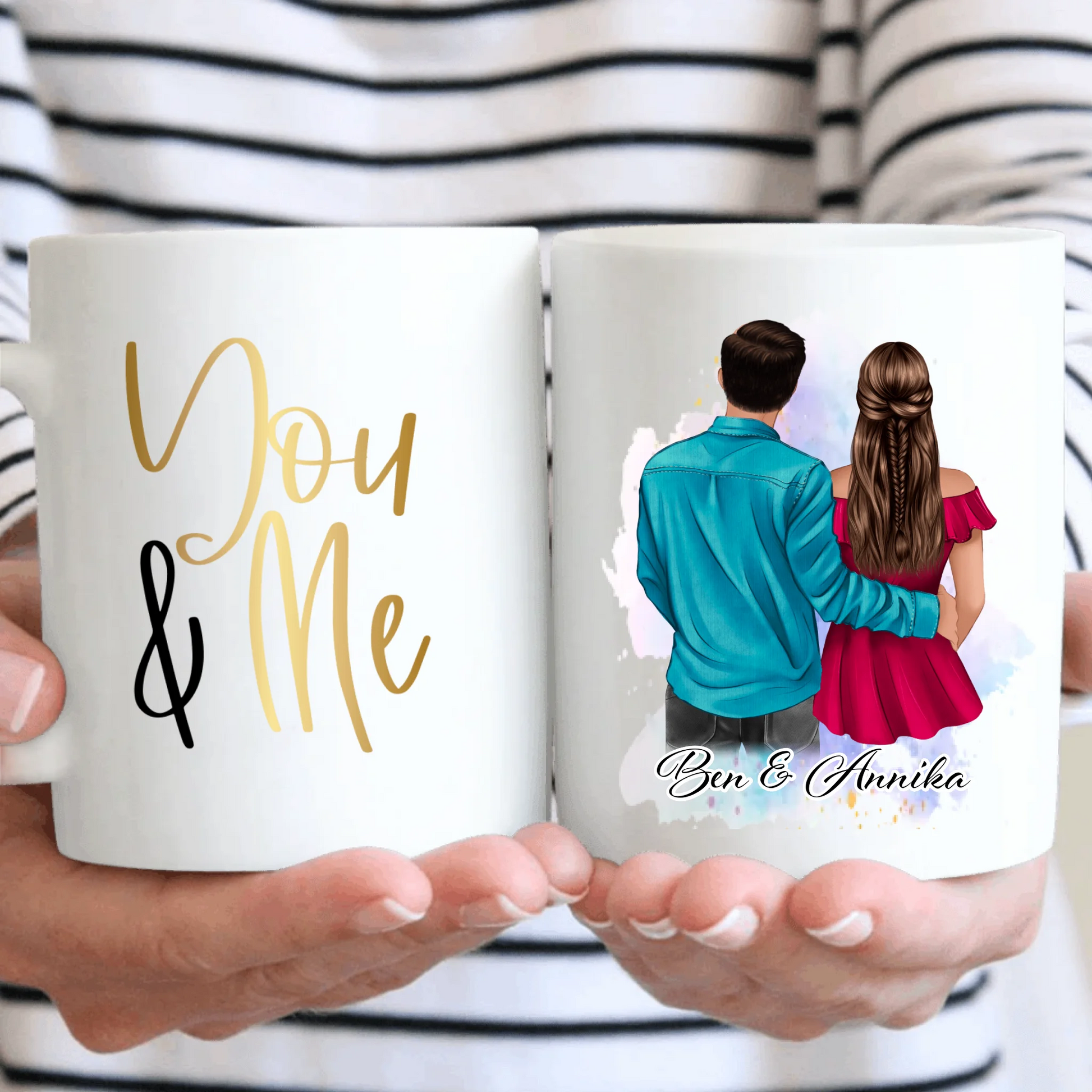 1. Grenzenlose Kreativität: Mit unserer Live-Vorschau kannst du deine Tassen bis ins kleinste Detail personalisieren. Wähle die Haarfarbe, den Hautton, den Kleidungsstil und füge Namen oder inspirierende Botschaften hinzu. Deiner Fantasie sind keine Grenzen gesetzt.