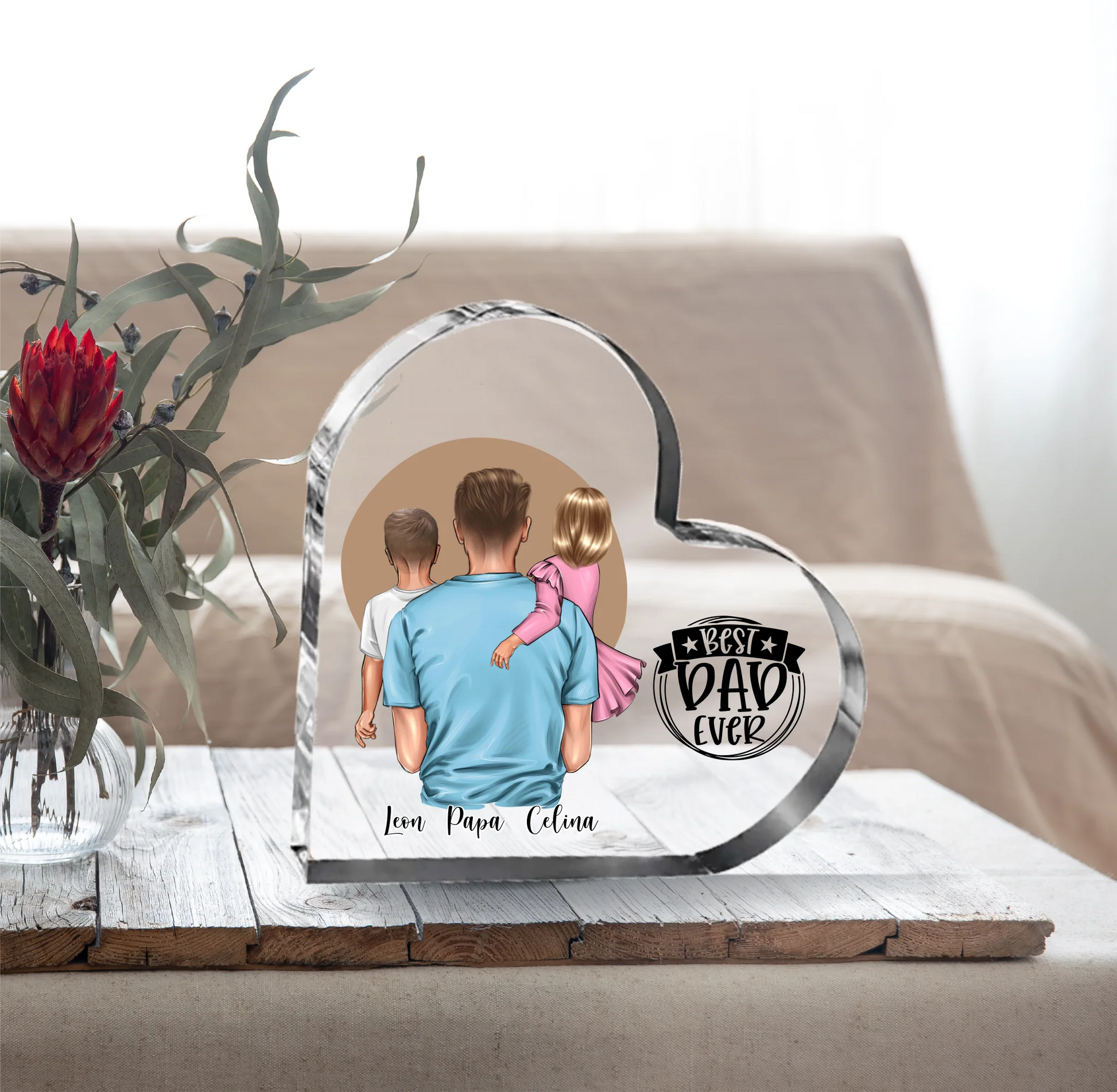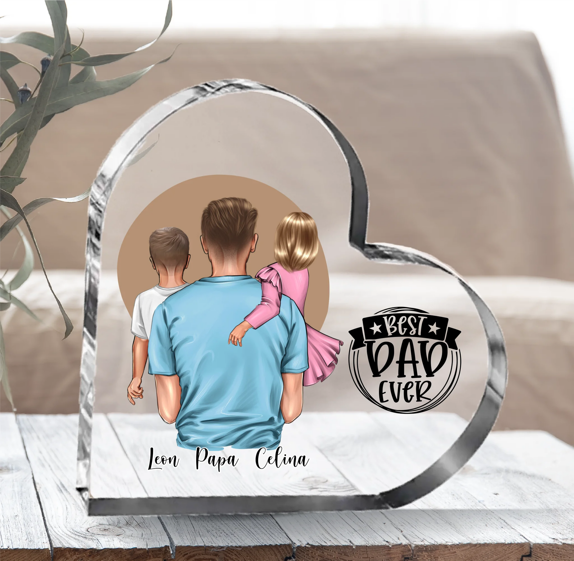Papa & 1-2 Kinder Herz Glasaufsteller