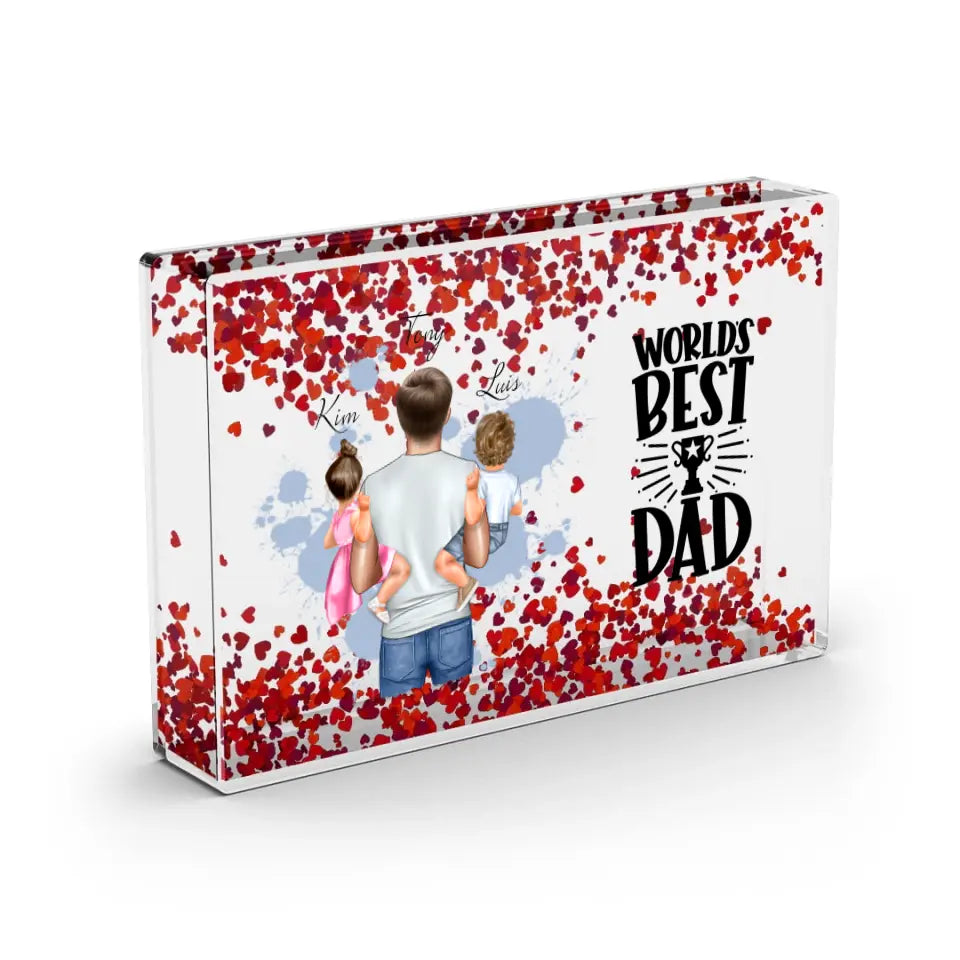 Papa & 1-2 Kinder - Schneekugel Herz Pailletten