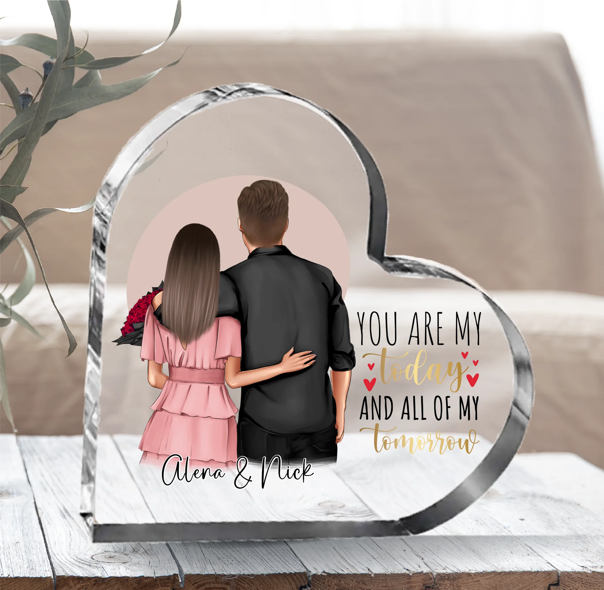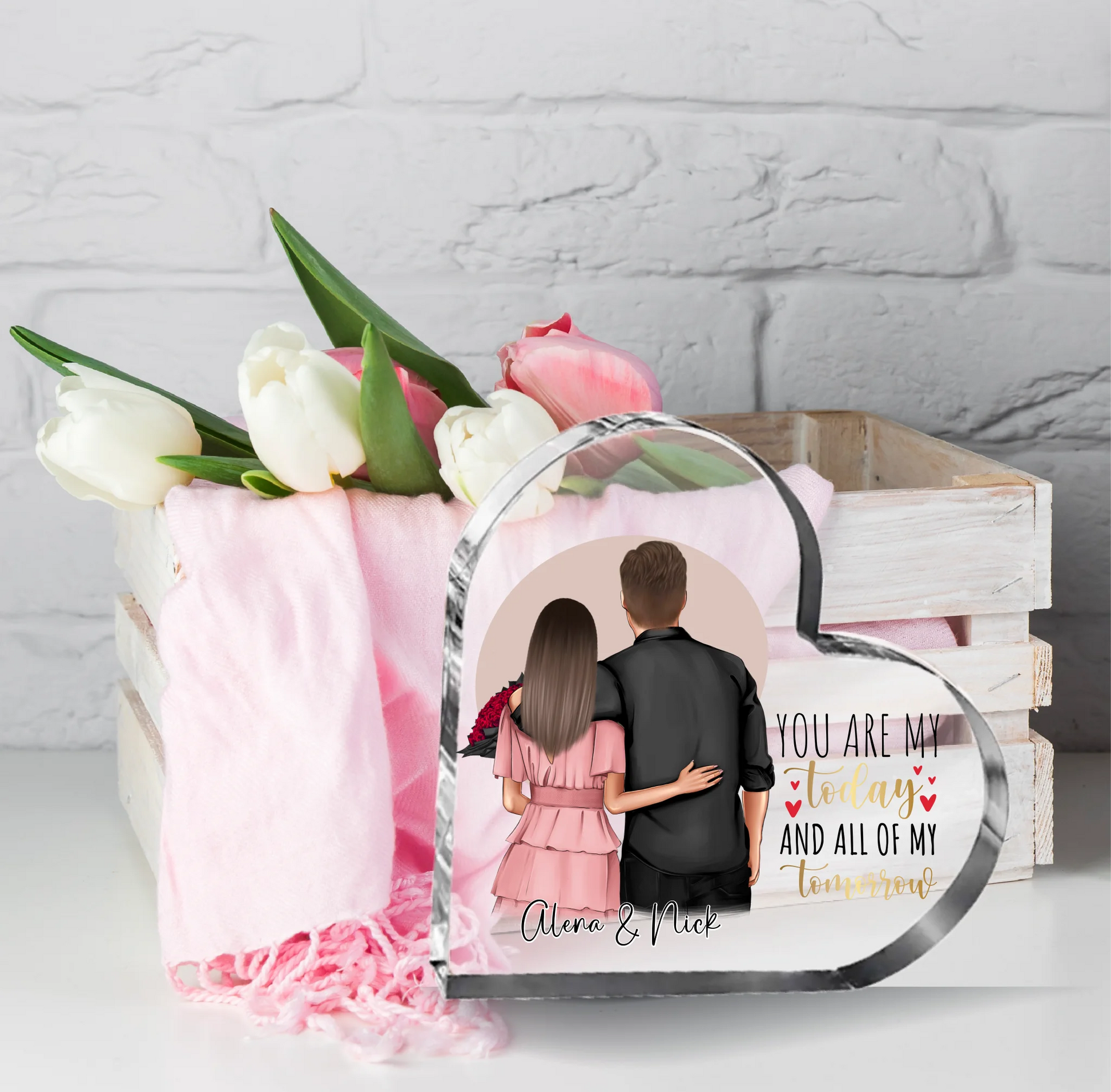 Willkommen in unserer Welt der Individualität und Liebe! Unsere personalisierten Herz Glasaufsteller sind nicht nur Dekorationen; sie sind Ausdruck von Verbundenheit und Zuneigung. Mit unserer einfach zu bedienenden Plattform kannst du Figuren mit individuellen Merkmalen gestalten, sodass jeder Aufsteller zu einem einzigartigen Zeichen deiner Liebe wird.