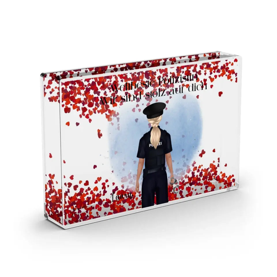 Polizistin/Polizist - Schneekugel Herz Pailletten