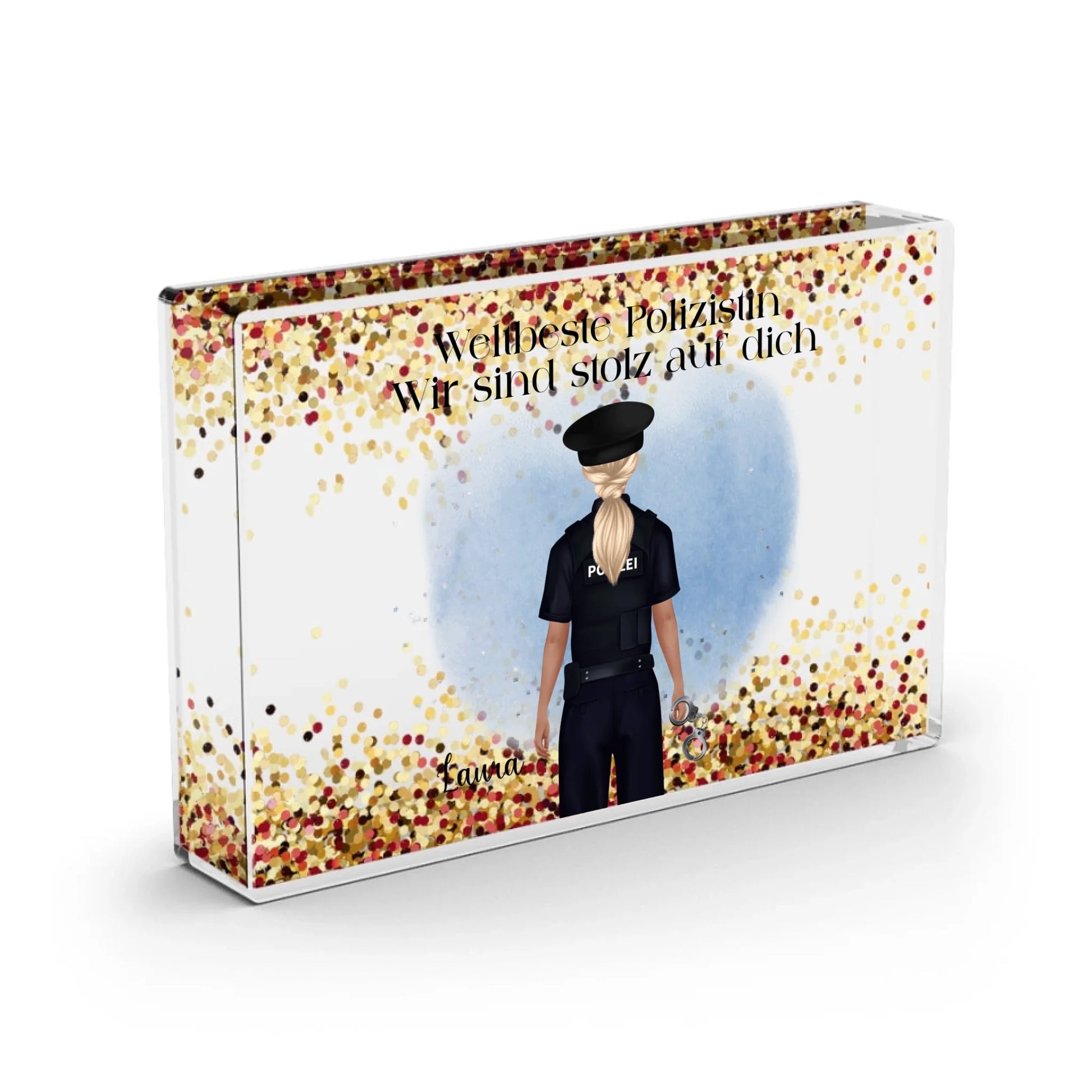 Polizistin/Polizist - Schneekugel RoseGold Pailletten