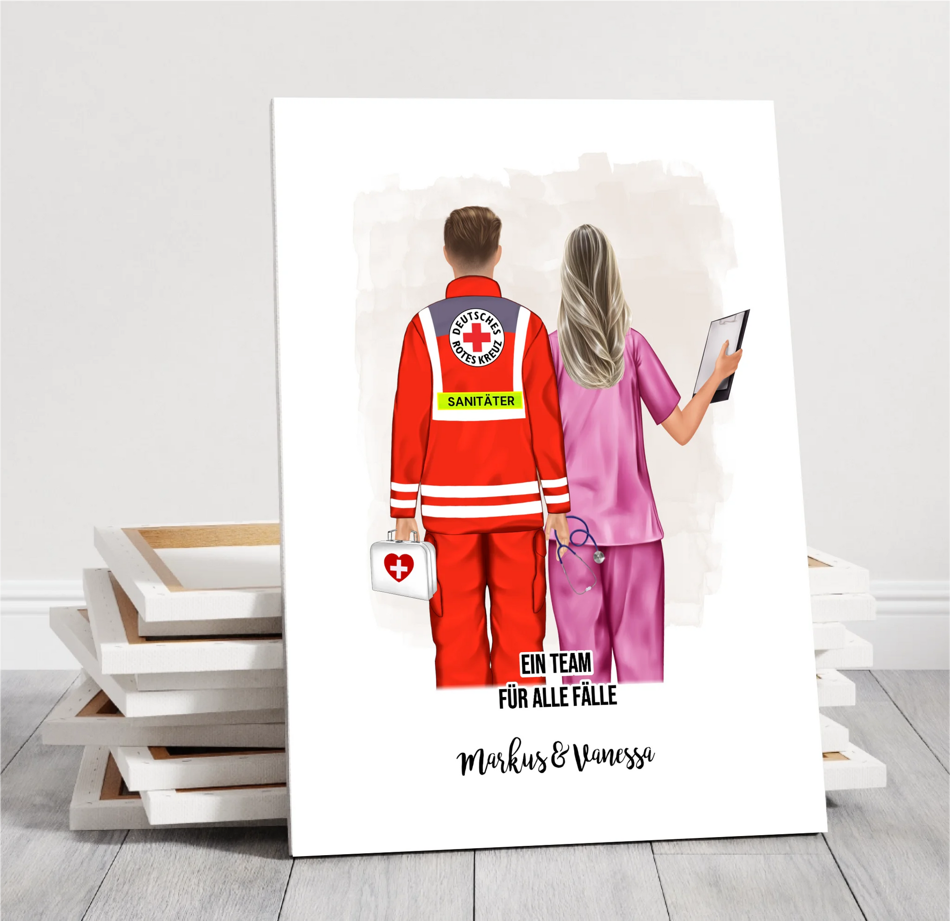 Tauche ein in die Welt der Individualität mit unseren exklusiven personalisierten Leinwänden! Hier kannst du nicht nur Kunstwerke für die Wand schaffen, sondern persönliche Meisterwerke, die Freunde, Paare, Familie, Hochzeiten, Abschlüsse und die Liebe zu Tieren zelebrieren. Mit unserer Live-Vorschau gestaltest du Figuren mit Haaren, Kleidung, Namen und mehr – die perfekte Fusion von Kunst und Emotion.