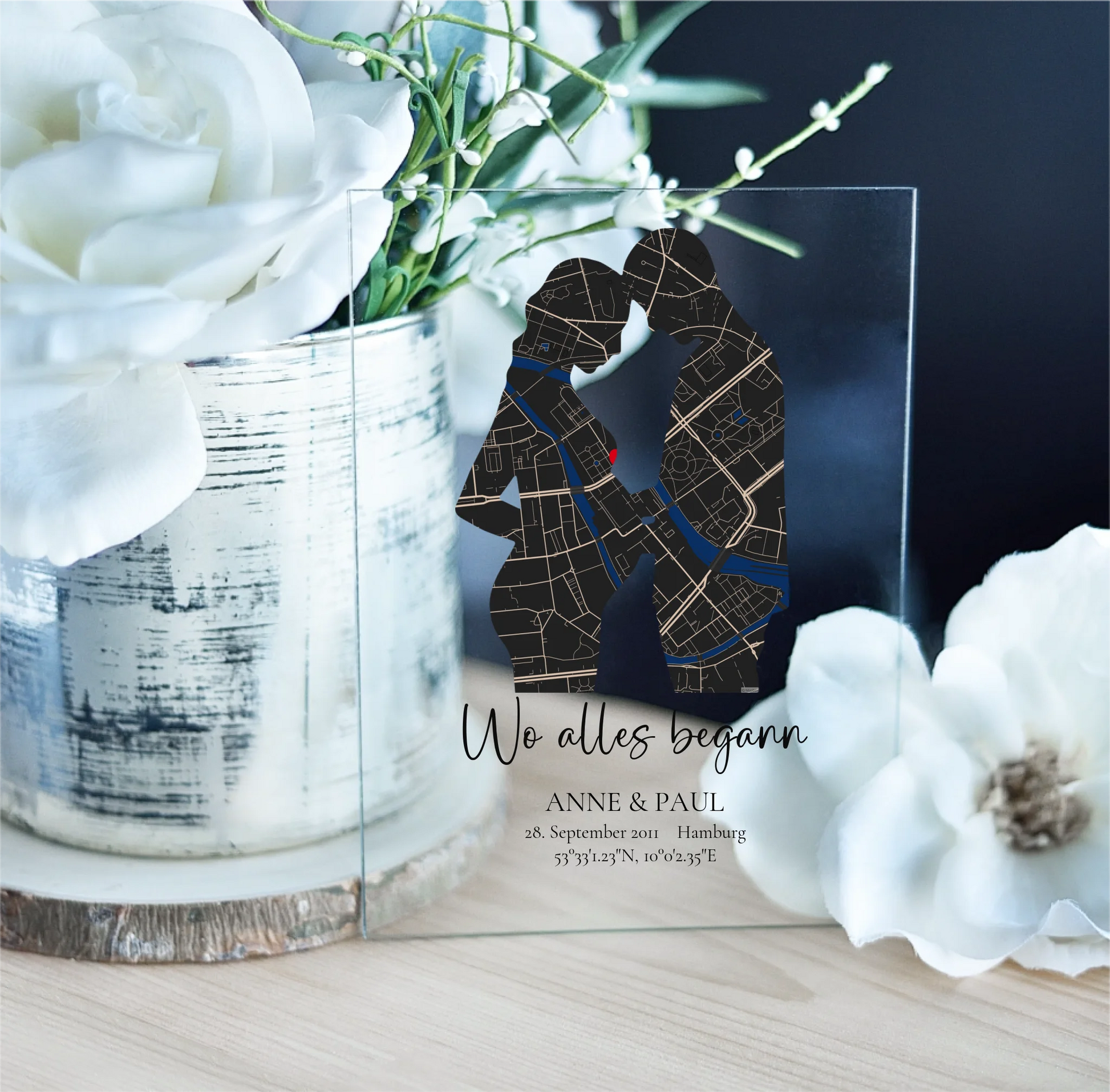 Du suchst nach einem Geschenk, das nicht nur persönlich, sondern auch unvergesslich ist? Unsere personalisierten Stadtkarten Acrylschilder mit Holzstandfuß sind ein individuelles Kunstwerk, die deine besonderen Momente im Leben festhalten.