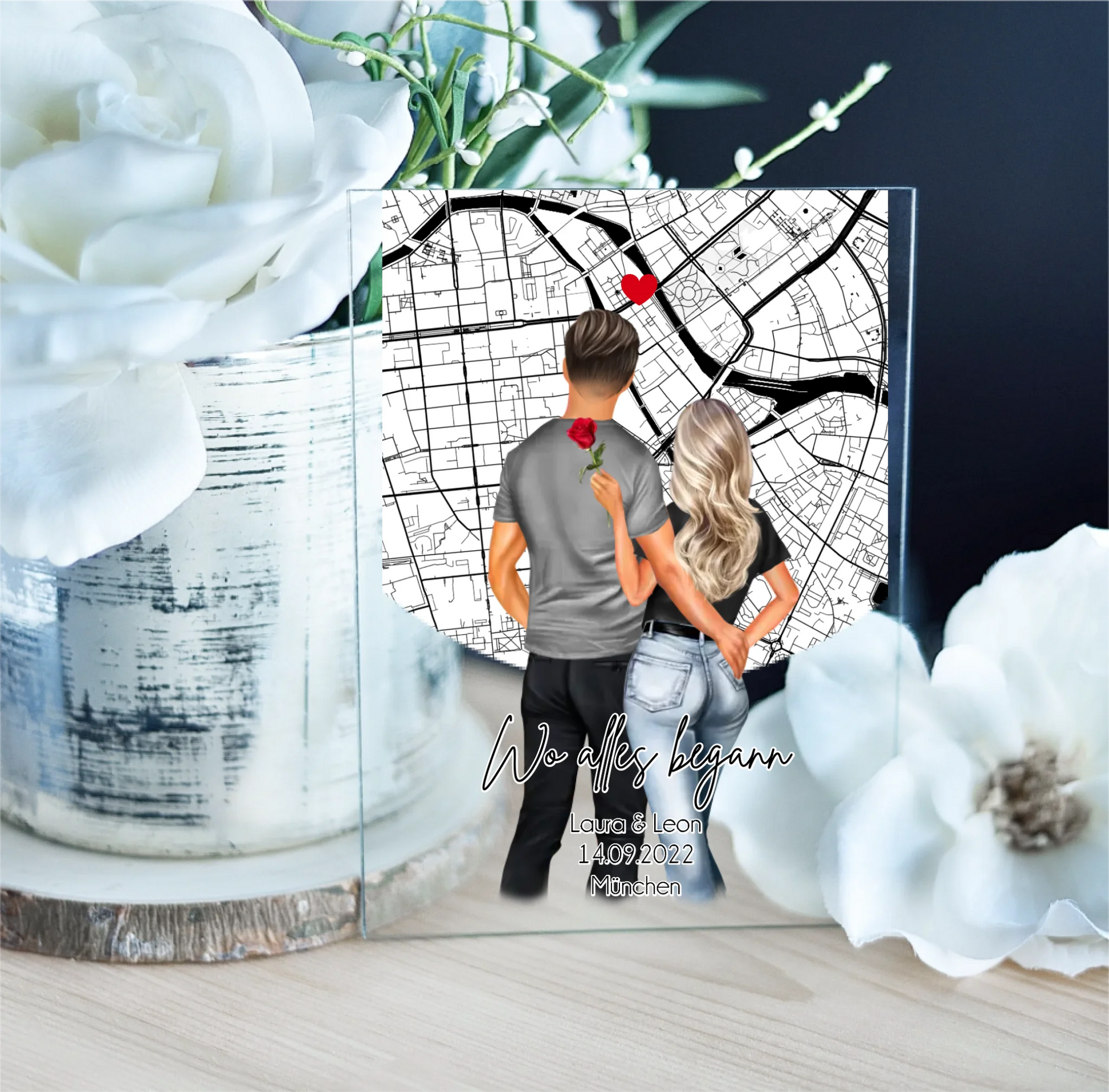 Stadtkarte/Sternenkarte - Paar - Acrylschild mit Holzstandfuß