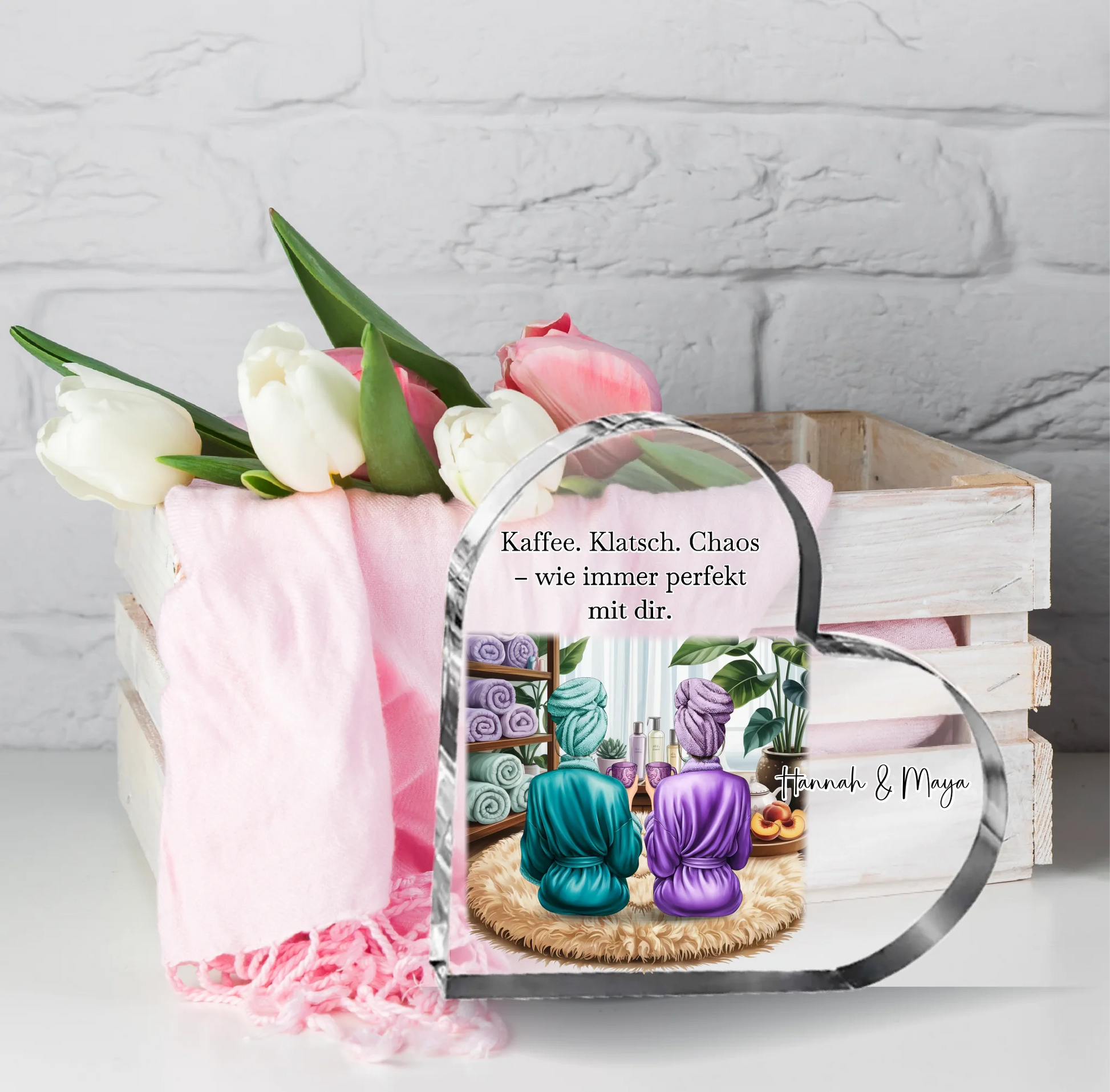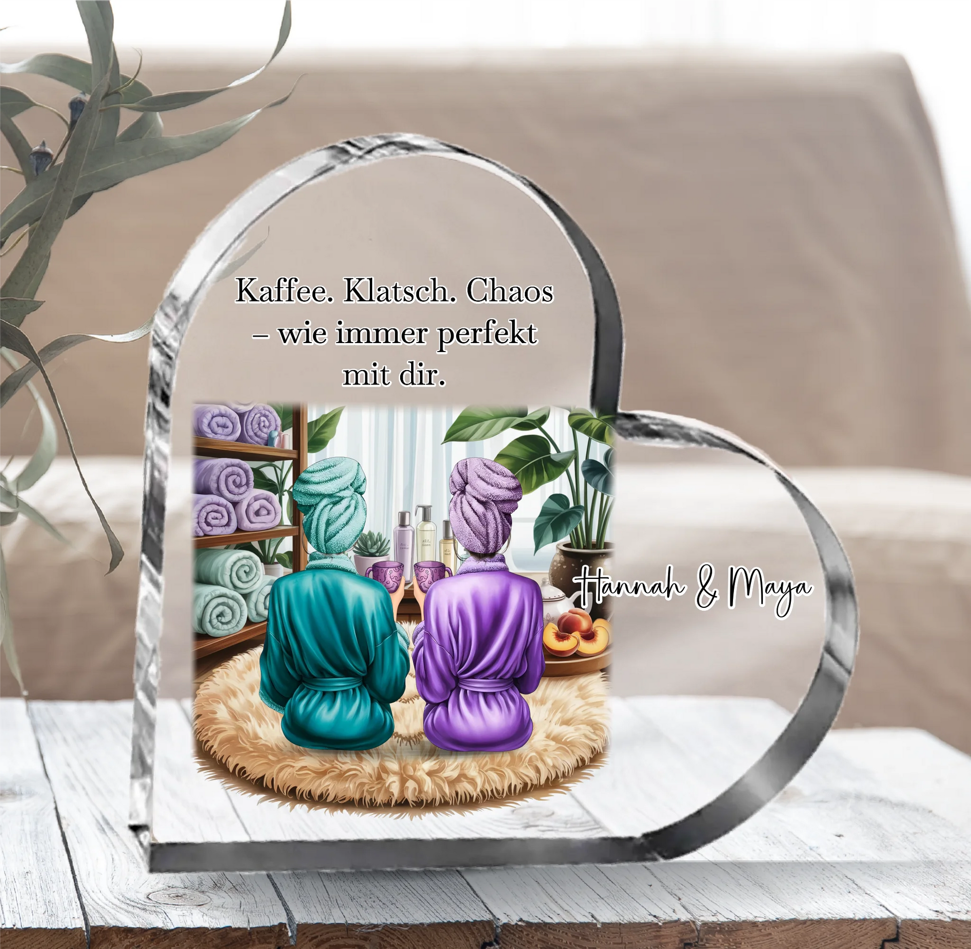 Wellness Freundinnen Herz Glasaufsteller