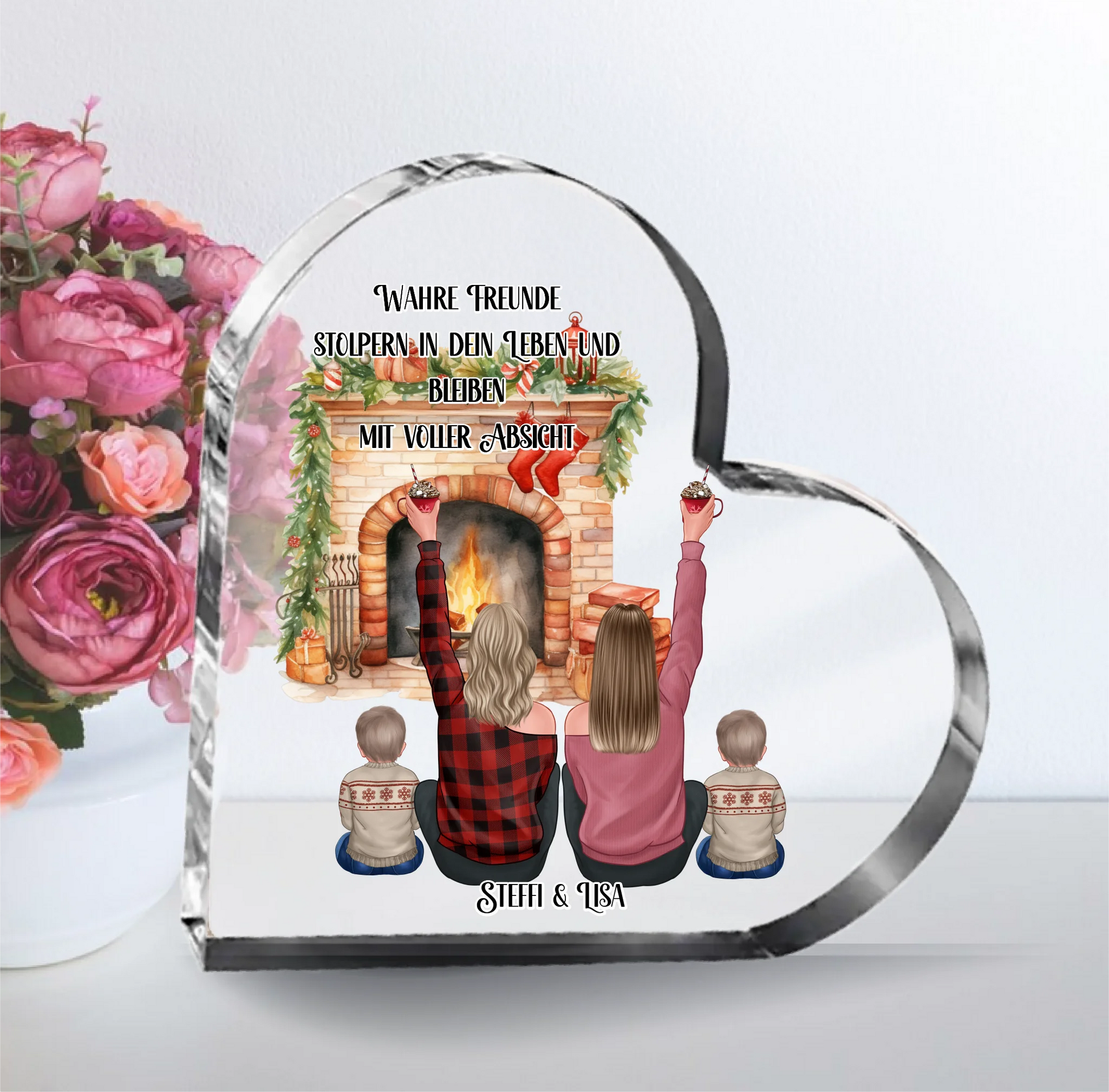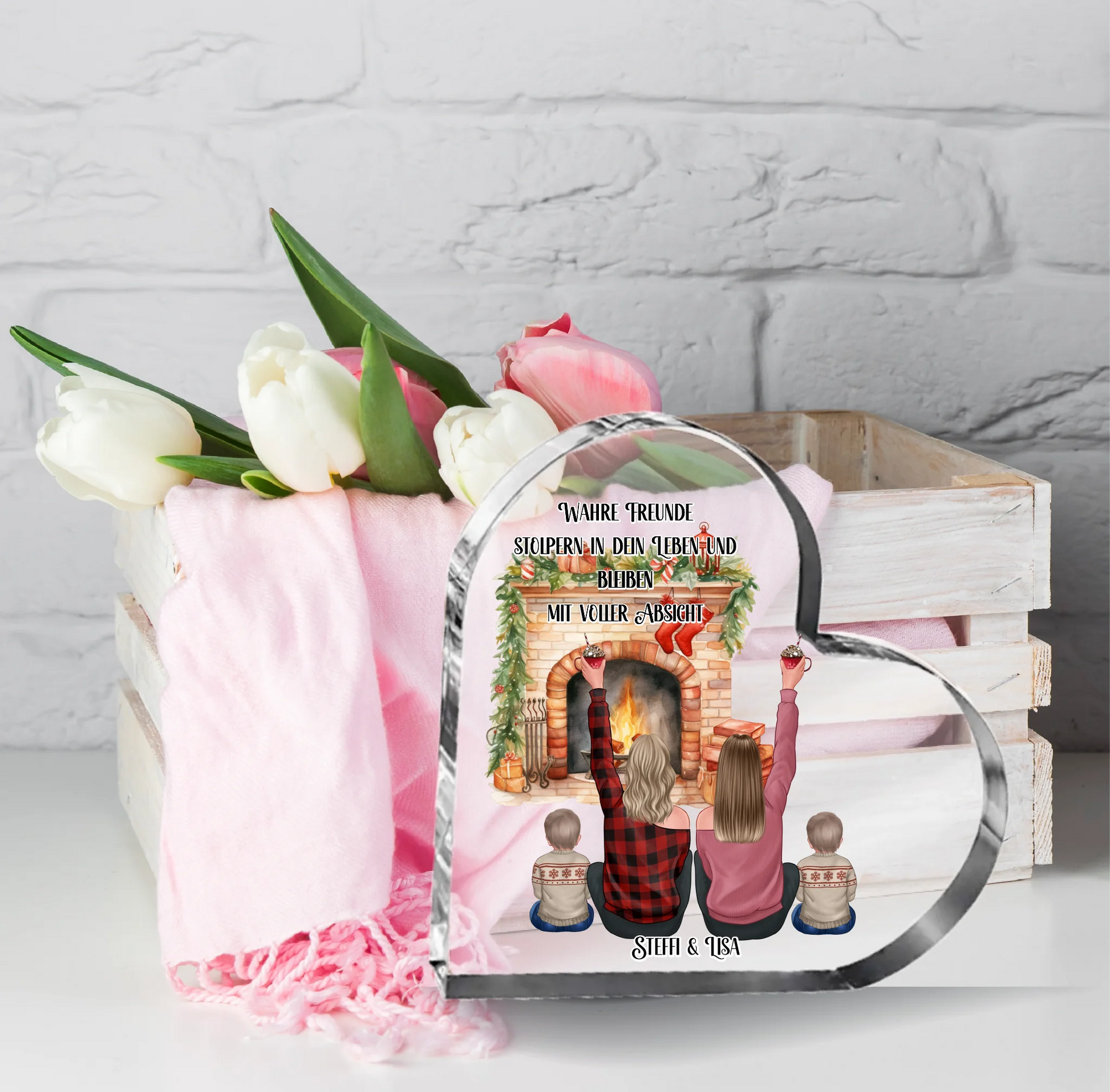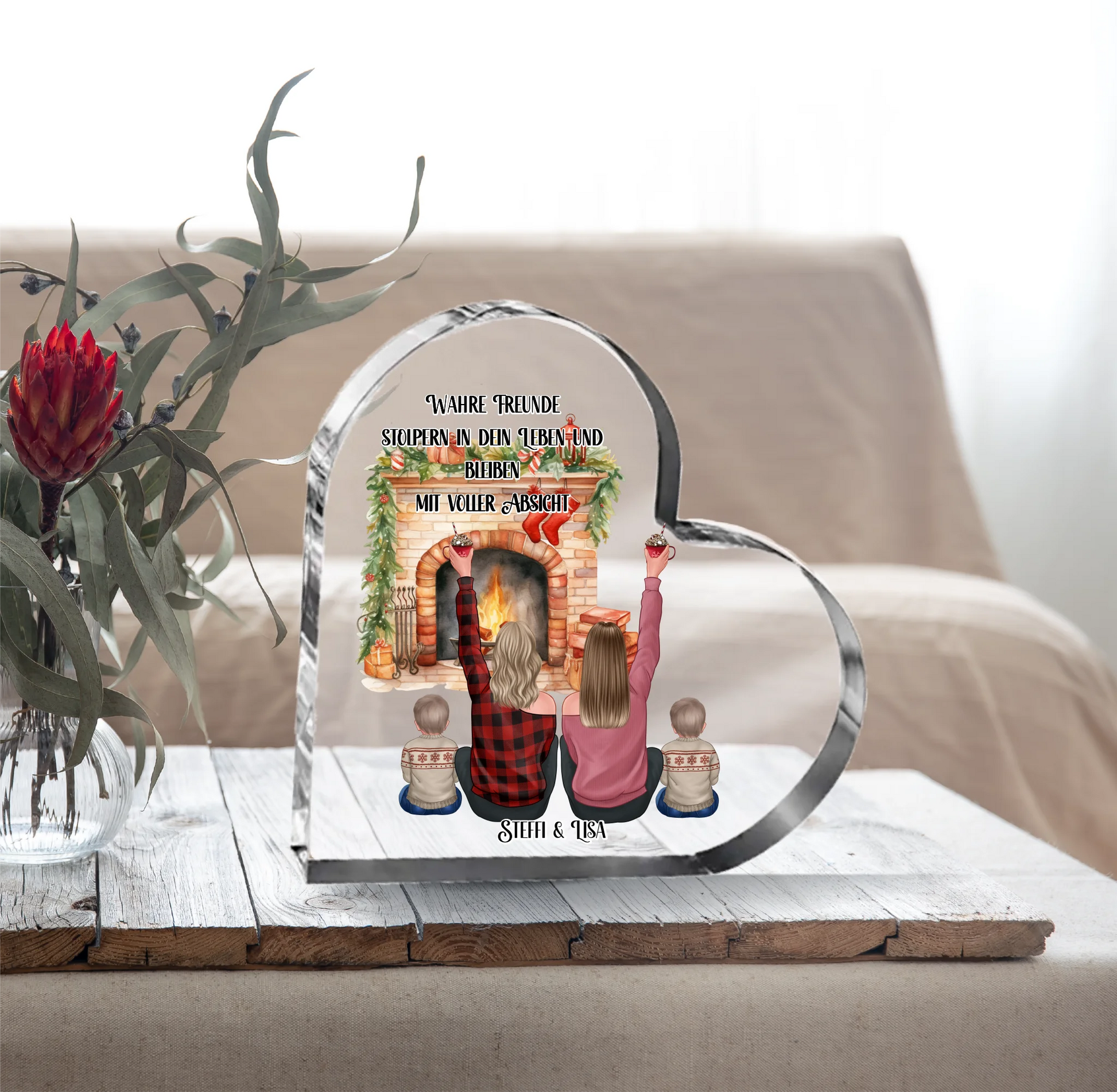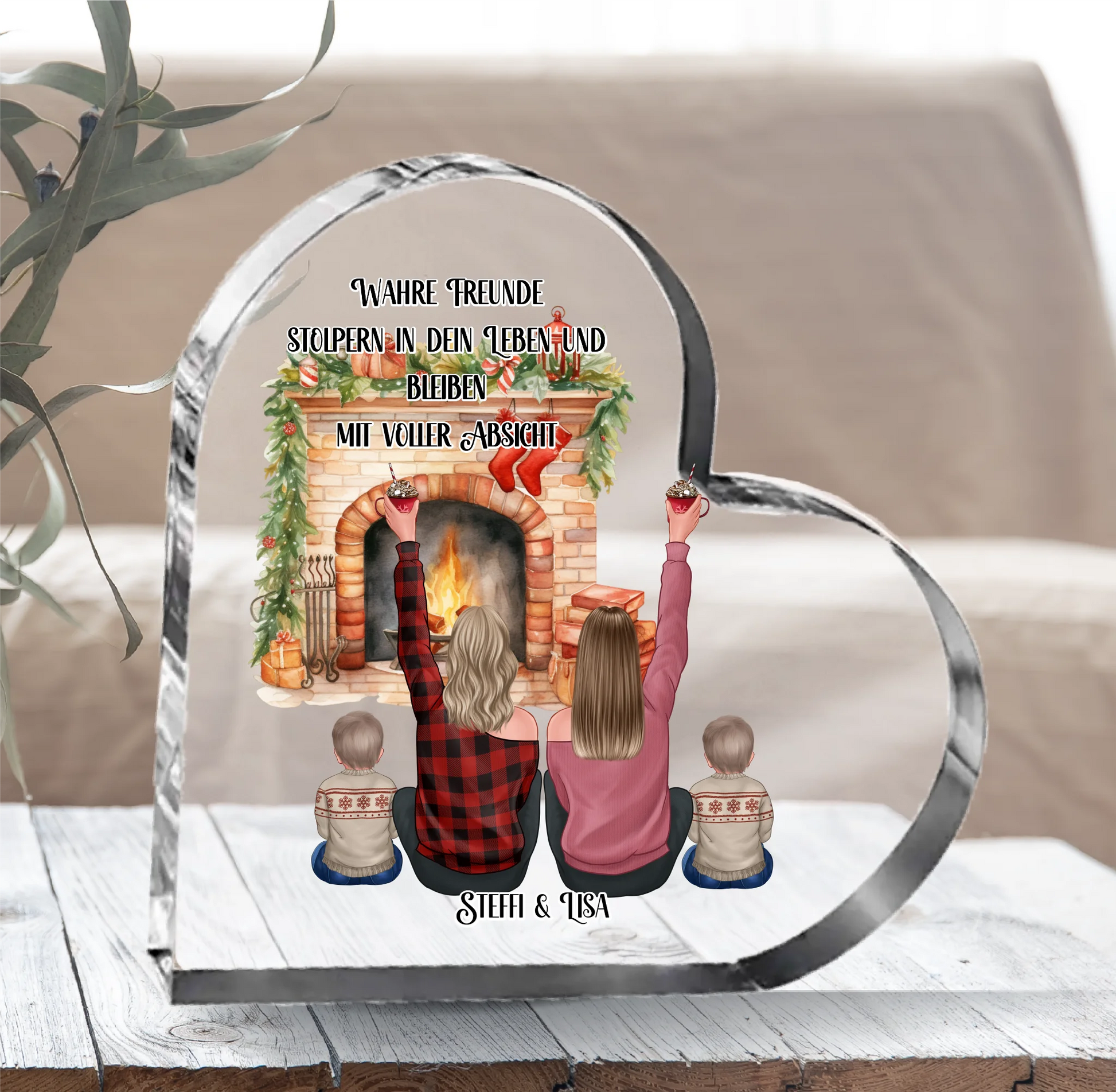 Winter Freundinnen mit Kinder Herz Glasaufsteller