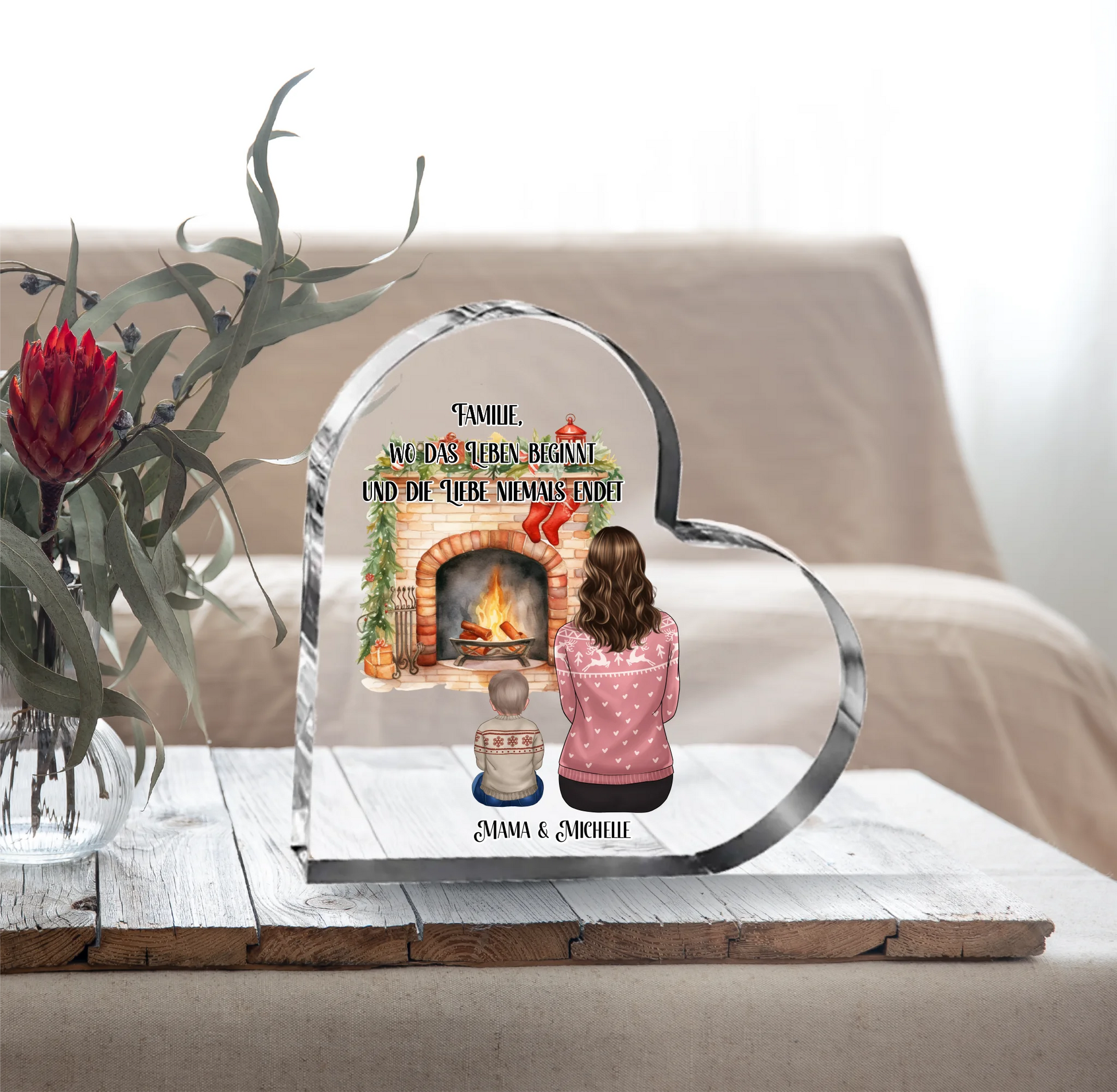 Winter Mama mit 1-3 Kindern Herz Glasaufsteller