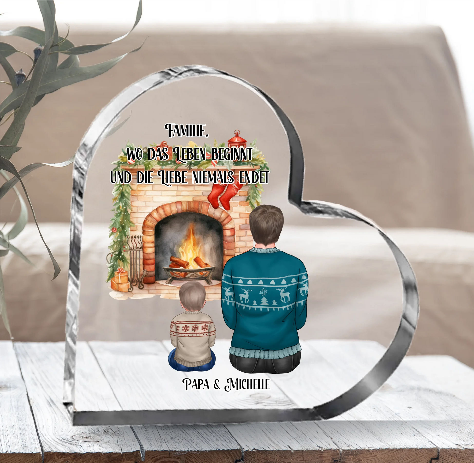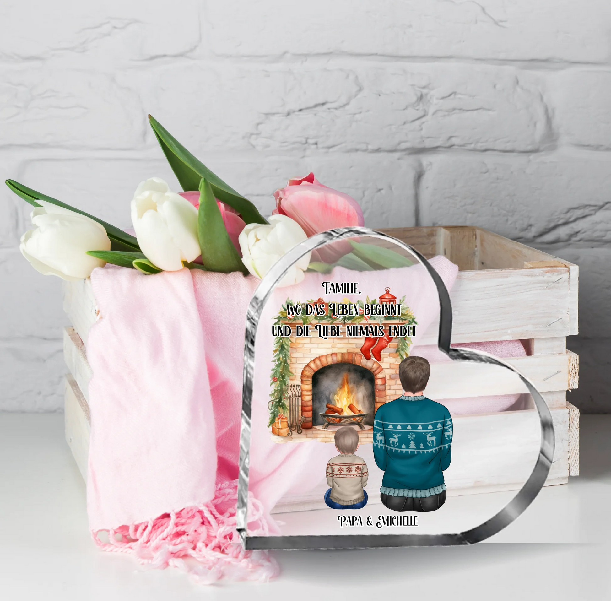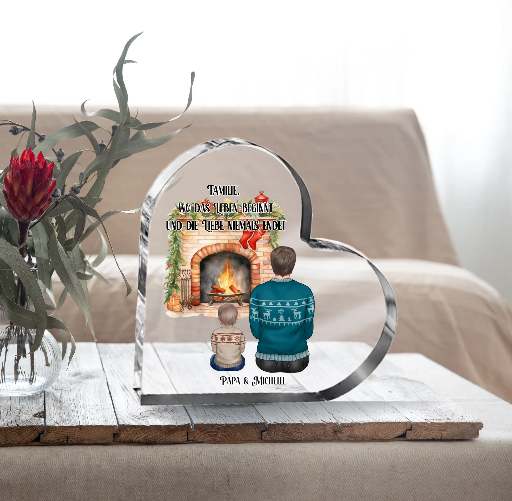 Winter Papa mit 1-3 Kindern Herz Glasaufsteller